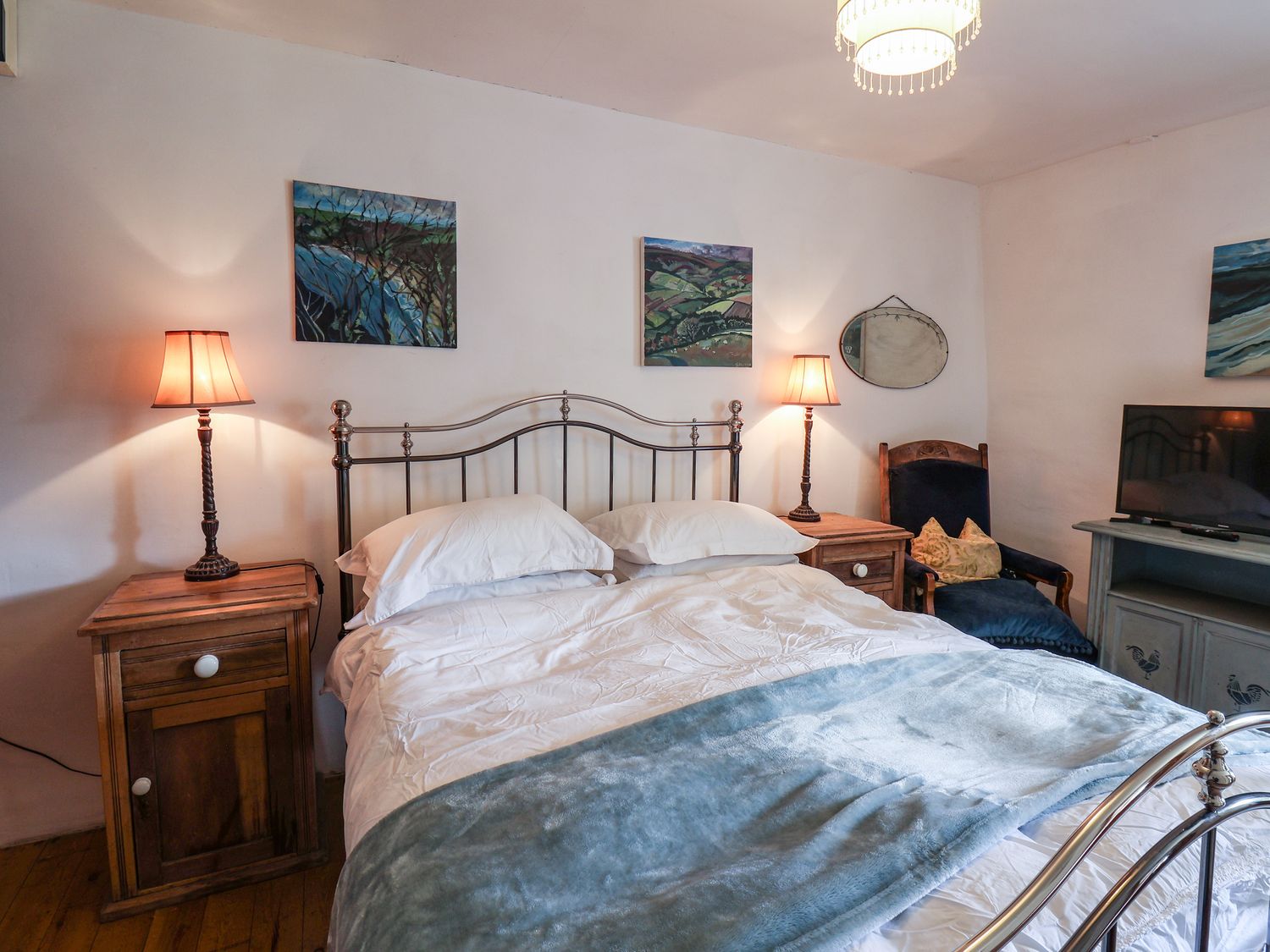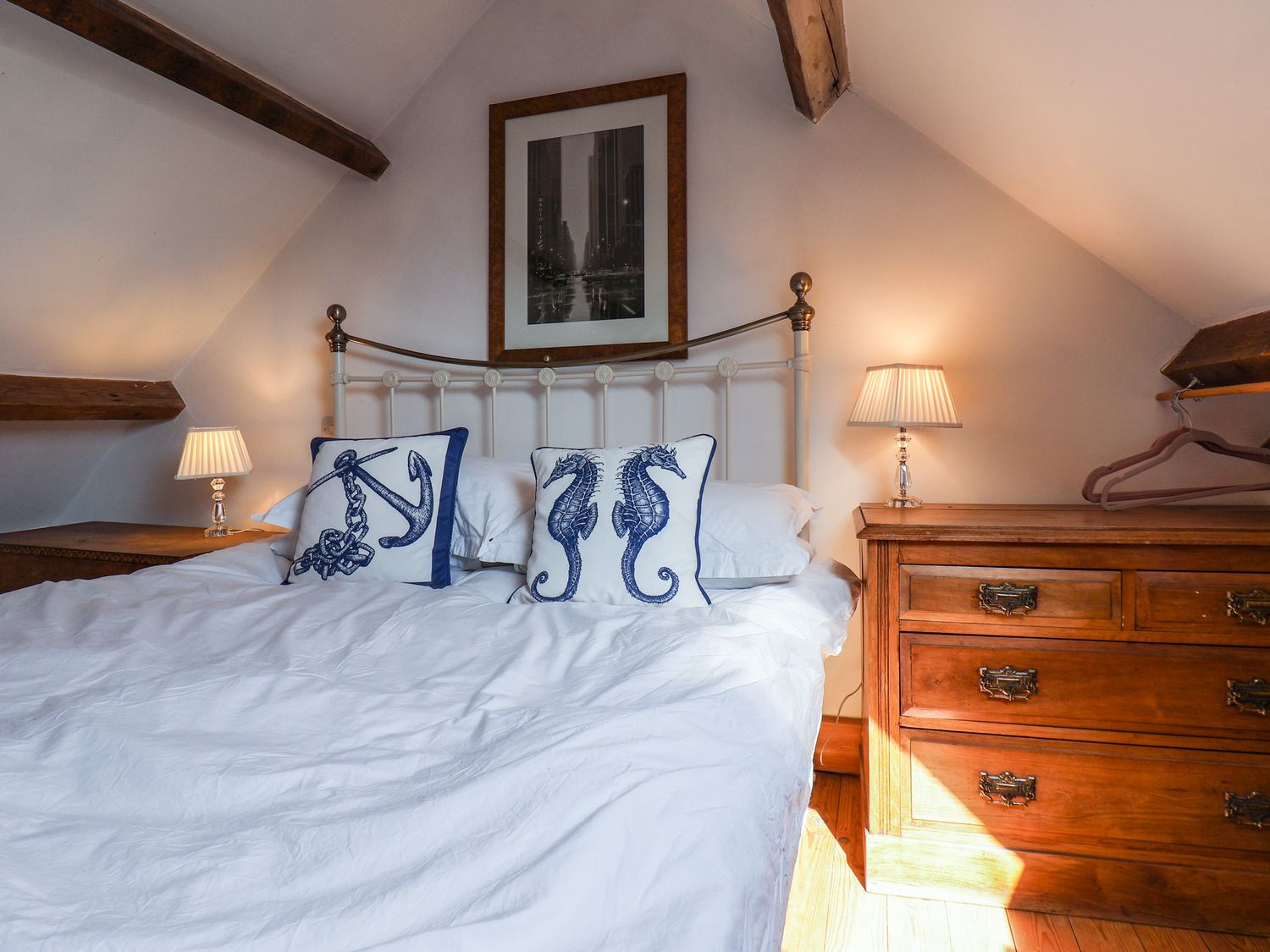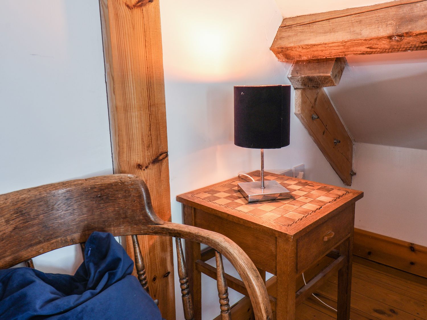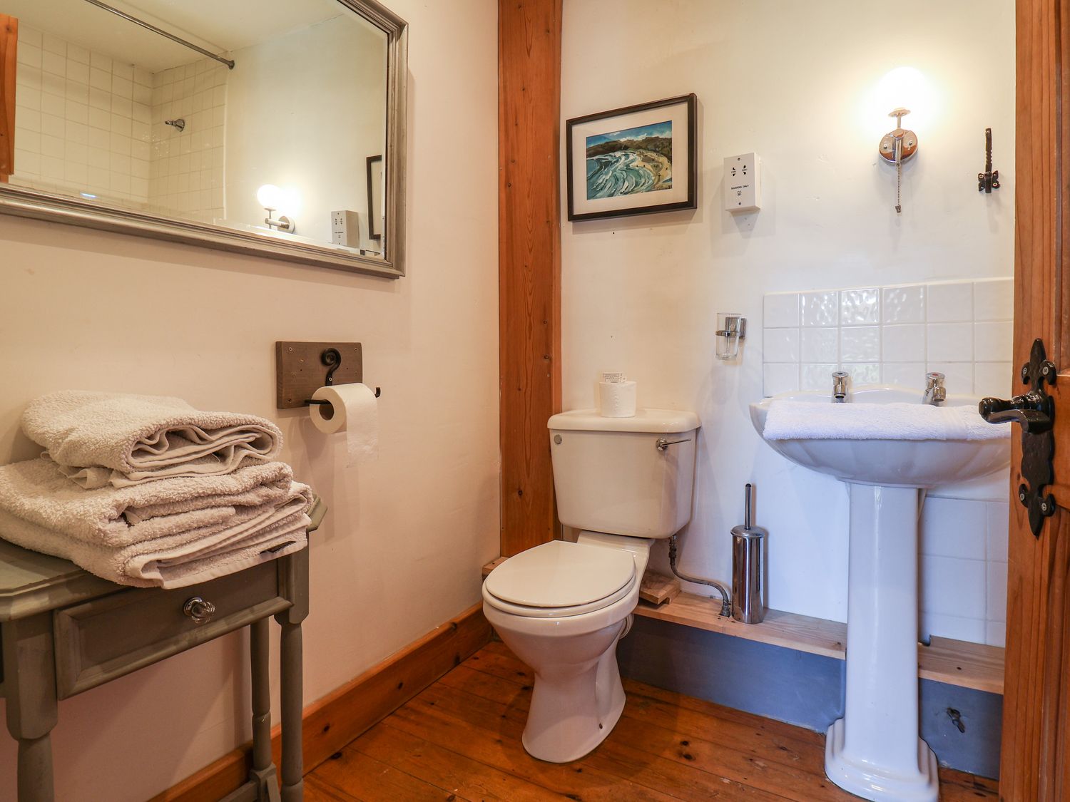 "Two bedrooms: 1 x first floor king-size, 1 x ground floor king-size with Smart TV. Ground floor bathroom with bath, shower over, basin and WC. Kitchen with dining area with views over stable yard. First floor sitting room with exposed timbers and magnificent views over open countryside."