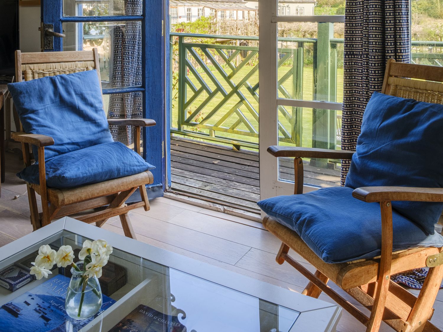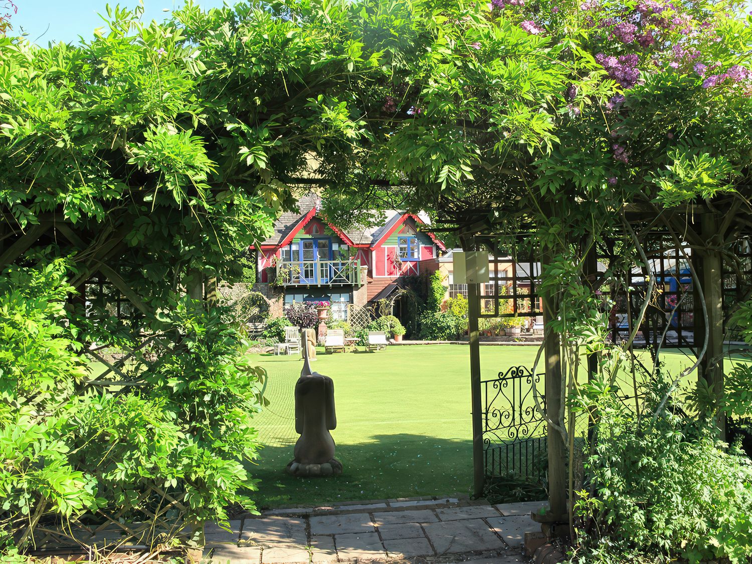 "The living areas in this reverse-level home consist of a first-floor kitchen/diner with an electric oven and hob, microwave, fridge/freezer, dishwasher and balcony, and a first-floor sitting room with TV, woodburning stove and balcony with furniture. There is a ground-floor king-size bedroom, serviced by an en-suite. There is off-road parking for two cars and EV charging available. One well-behaved dog welcomed at a supplement, but sorry, no smoking. WiFi, fuel, power, bed linen and towels are all included in the price. Highchair, travel cot, and stairgate available. The Folly is an enchanting abode for a romantic getaway to Devon. Note: Guests have access to a communal games room, housing table tennis and a foosball table, a grass tennis court, and an indoor heating swimming pool, gym and sauna. Note: Pets must be kept off beds and sofas. Note: Guests have access to communal laundry facilities near the games room. "