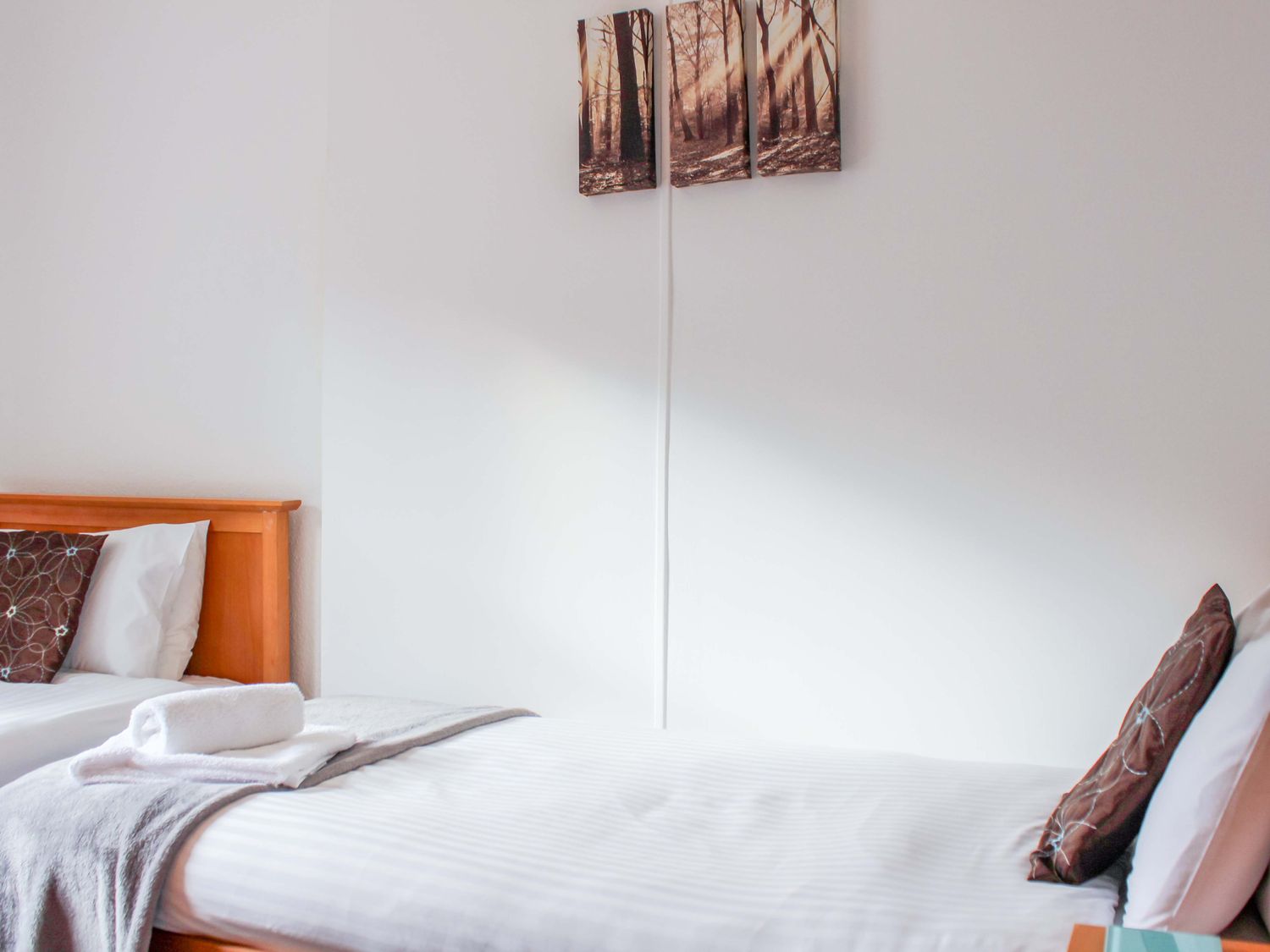 "Top floor apartment. Two bedrooms: 1 x king-size, 1 x twin. Bathroom with bath, shower over, basin and WC. Kitchen. Living/dining room"