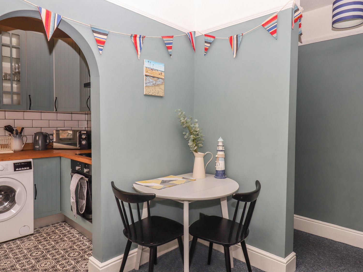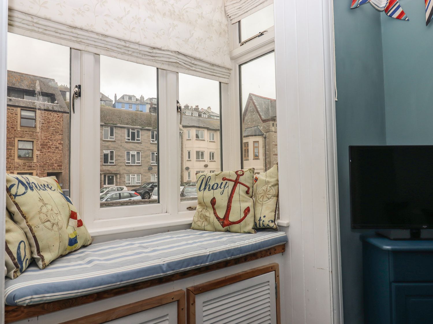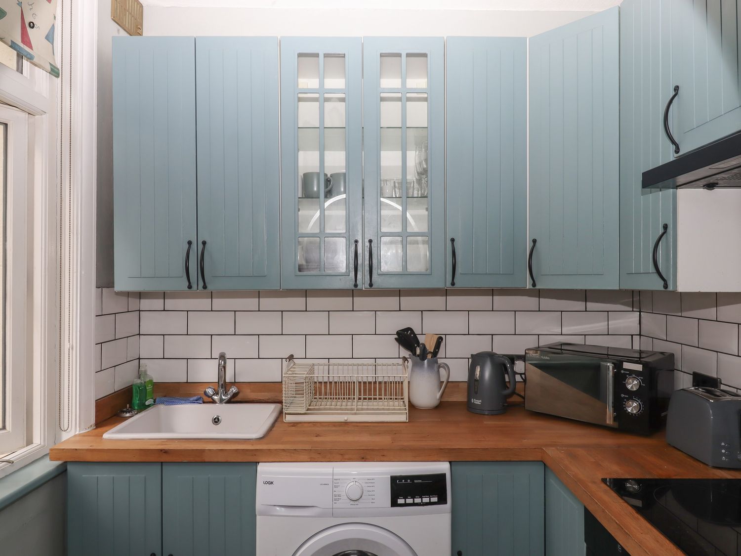 "Home by the Harbour, a second-floor apartment consists of a kitchen with electric oven, induction hob, microwave, fridge, washing machine, toaster, and kettle, a living/dining room with sofa, window seat, dining seating for two, and smart TV, and a dressing room. The bedroom is a double. There is a shower room with shower over bath and basin and WC. WiFi, fuel, power, bed linen, and towels are included in the rent. Outside, there is a public car park. Sorry, no pets and no smoking. Enjoy your trip to the property Home by the Harbour. Note: Shared entrance with three other apartments. Note: Bath isn't available. Note: This property has a Good Housekeeping Bond of 150 GBP"