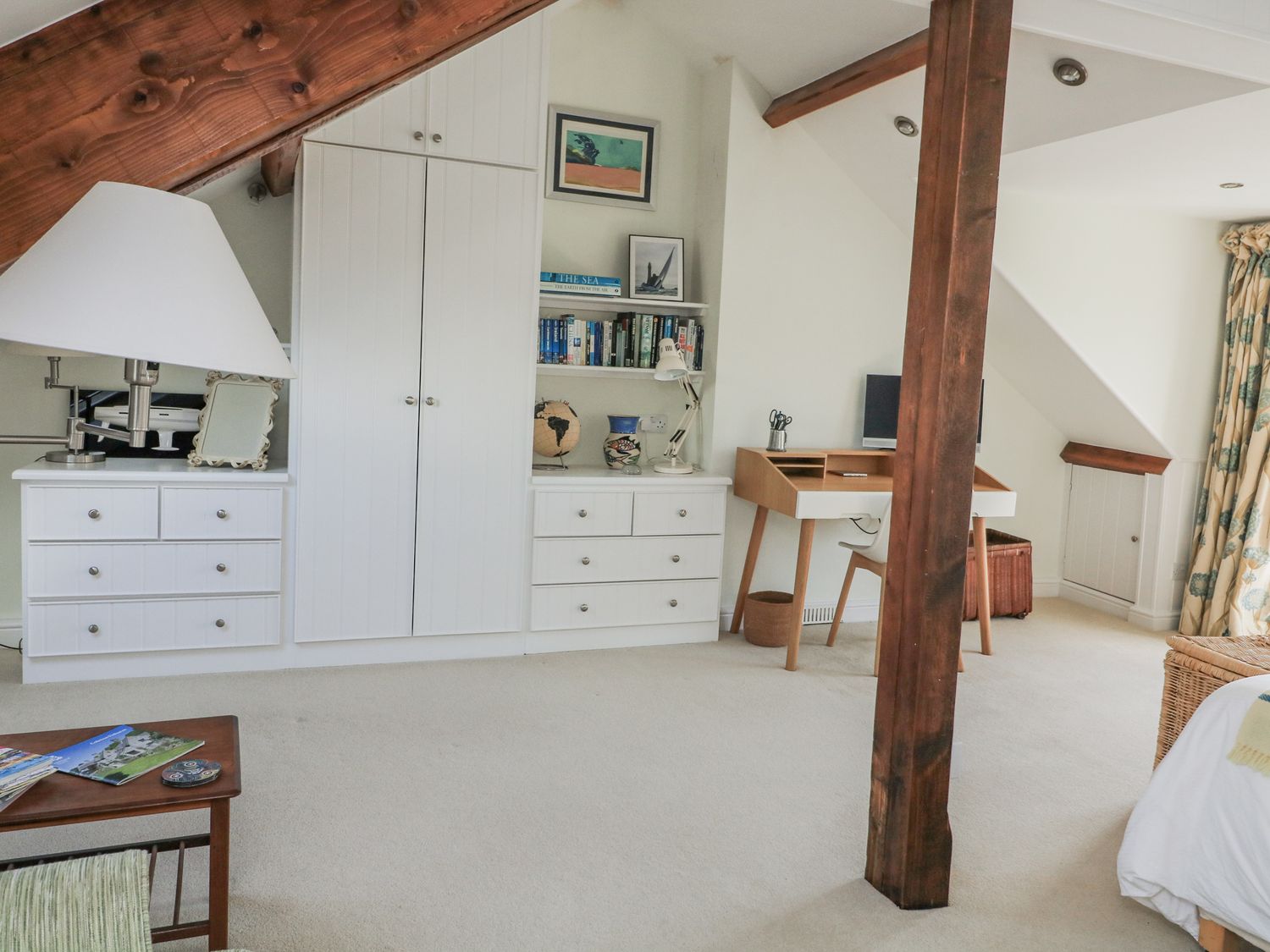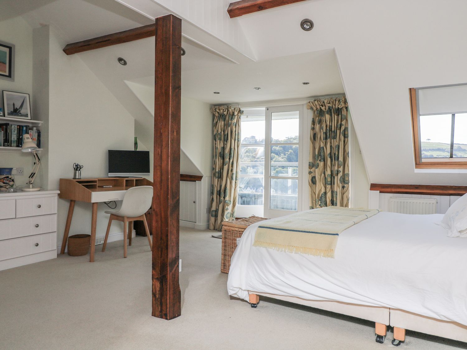 "Fastnet at Nonsuch House is a top-floor studio apartment with a double bed, kitchenette with combi microwave/oven, two-ring electric hob, toaster, kettle, dining area with seating for two guests, a sitting area with Smart TV and balcony. There is a bathroom with bath, handheld shower, basin and WC. Central heating throughout. Roadside parking available nearby. Sorry, no pets and no smoking. Shop 0.3 miles; pub 0.1 mile. WiFi, fuel, power, bed linen and towels inc. in rent. Fastnet at Nonsuch House is a well-located base for exploring Kingswear and the South Devon coast. Note: This property has a Good Housekeeping Bond of GBP 150. Note: There are steps up to the property"