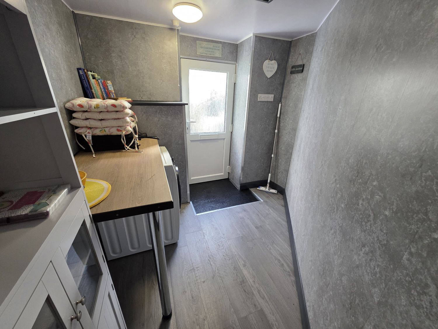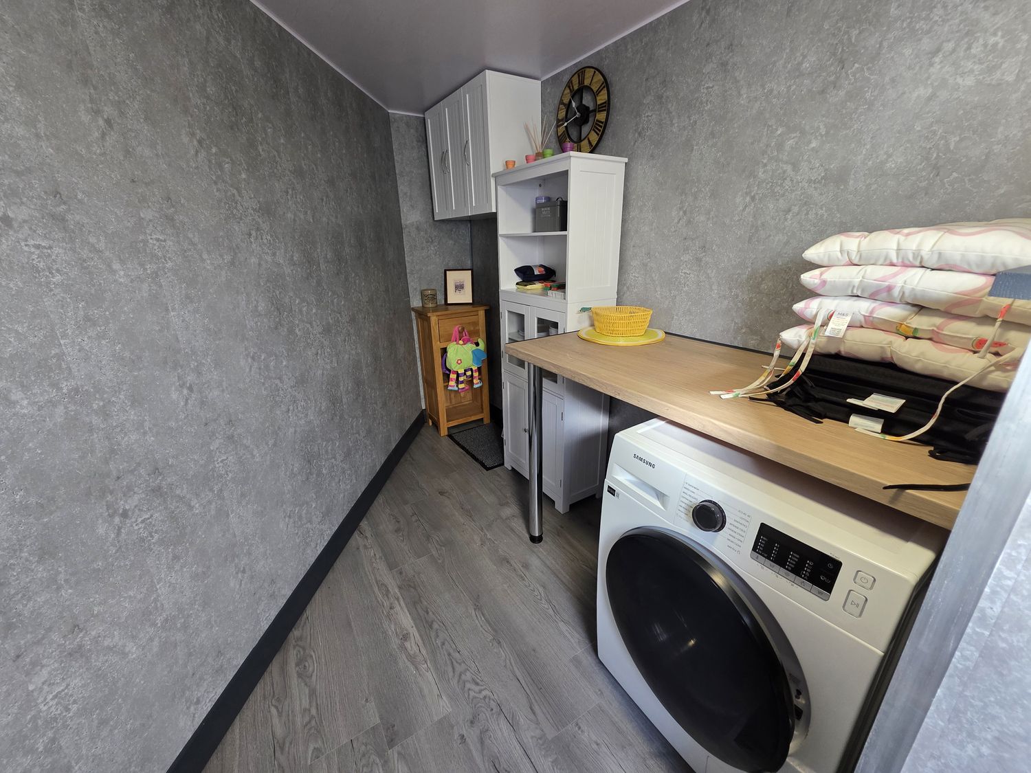 "Three-storey. Three bedrooms: 1 x second-floor super-king-size (zip/link, can be twin on request) with Smart TV, sofa bed, 1 x king-size with Smart TV, 1 x double. Shower room with walk-in shower, basin, heated towel rail, WC. External utility. Open-plan living space with kitchen, dining area, and sitting area with electric fire"