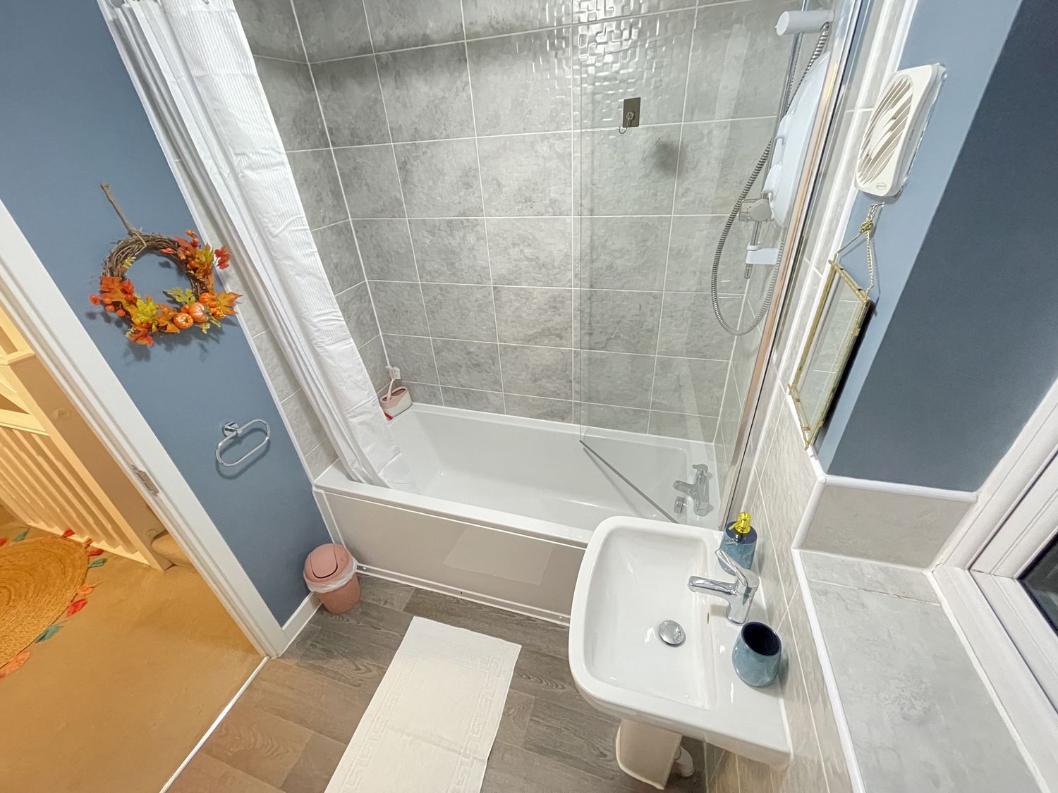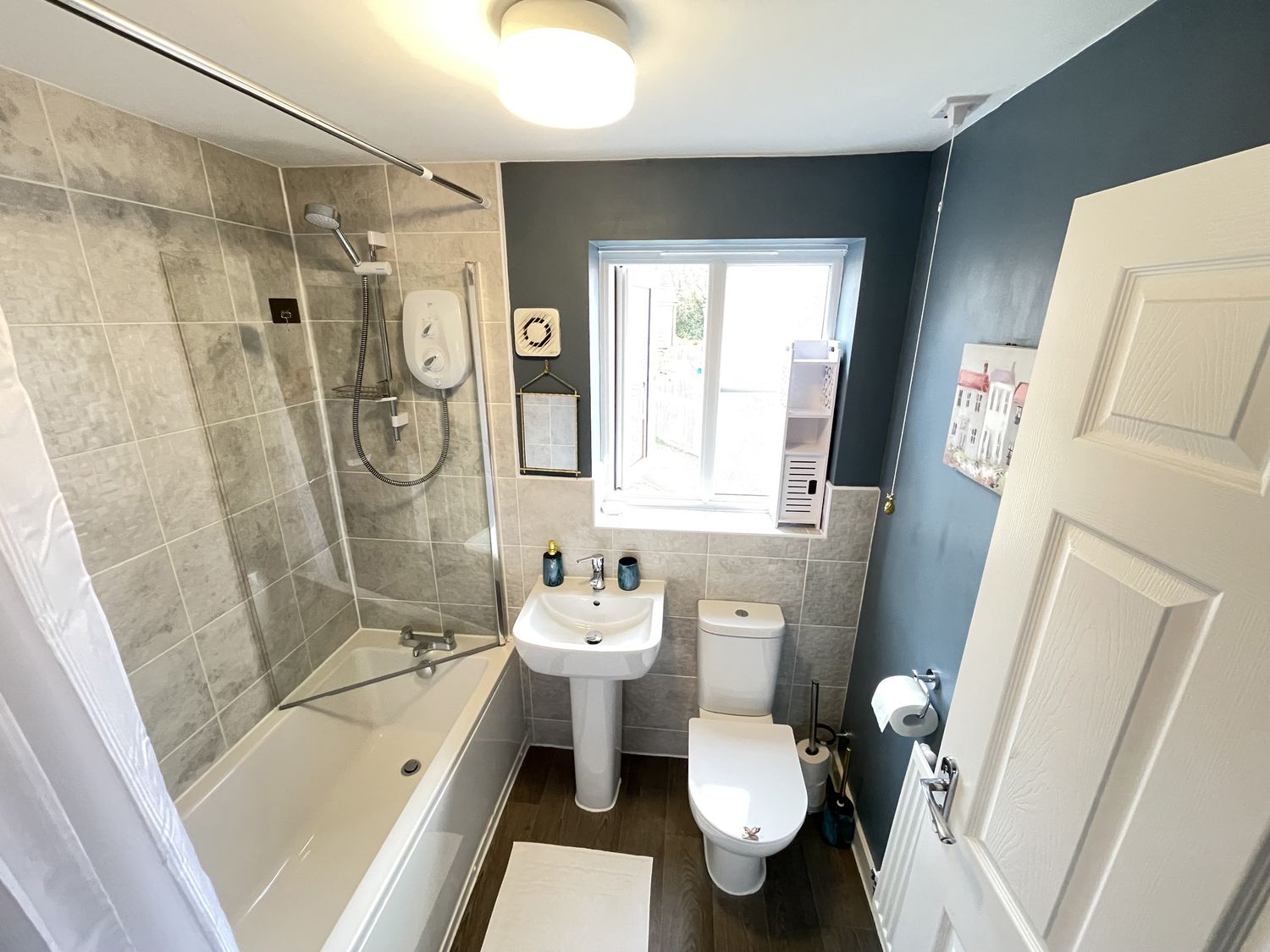 "Four bedrooms: 1 x double with en-suite walk-in shower, basin and WC, 1 x twin, 2 x single. Ground-floor bathroom with bath, shower over, basin, and WC.Cloakroom with basin and WC. Kitchen/diner. Sitting room"