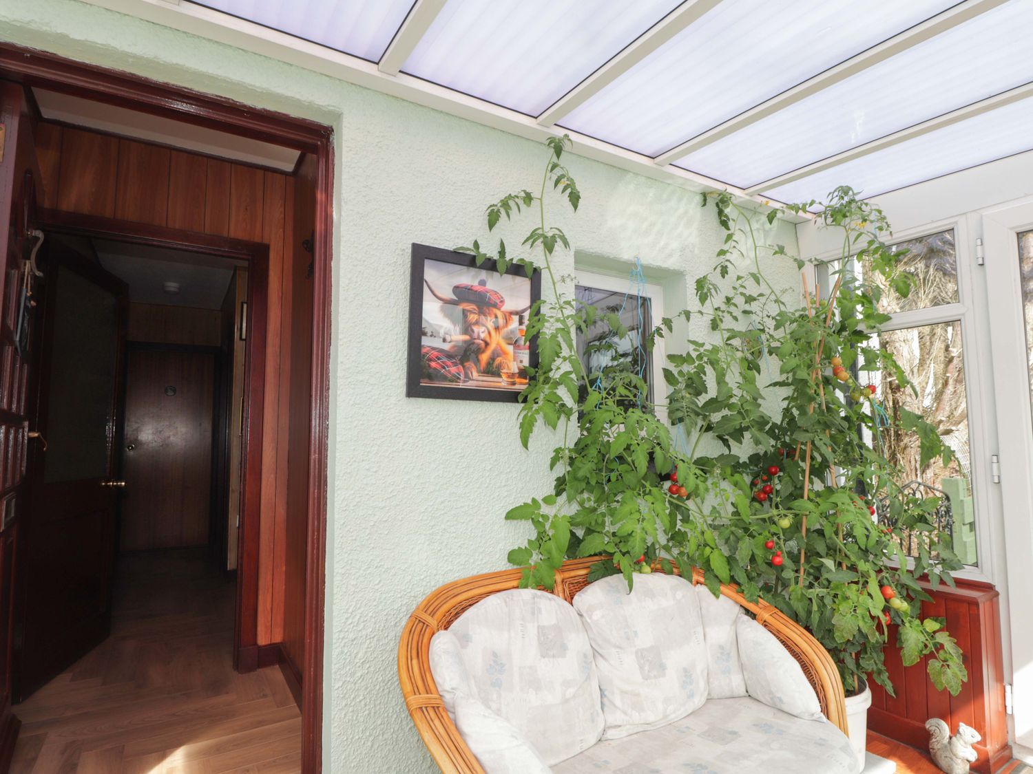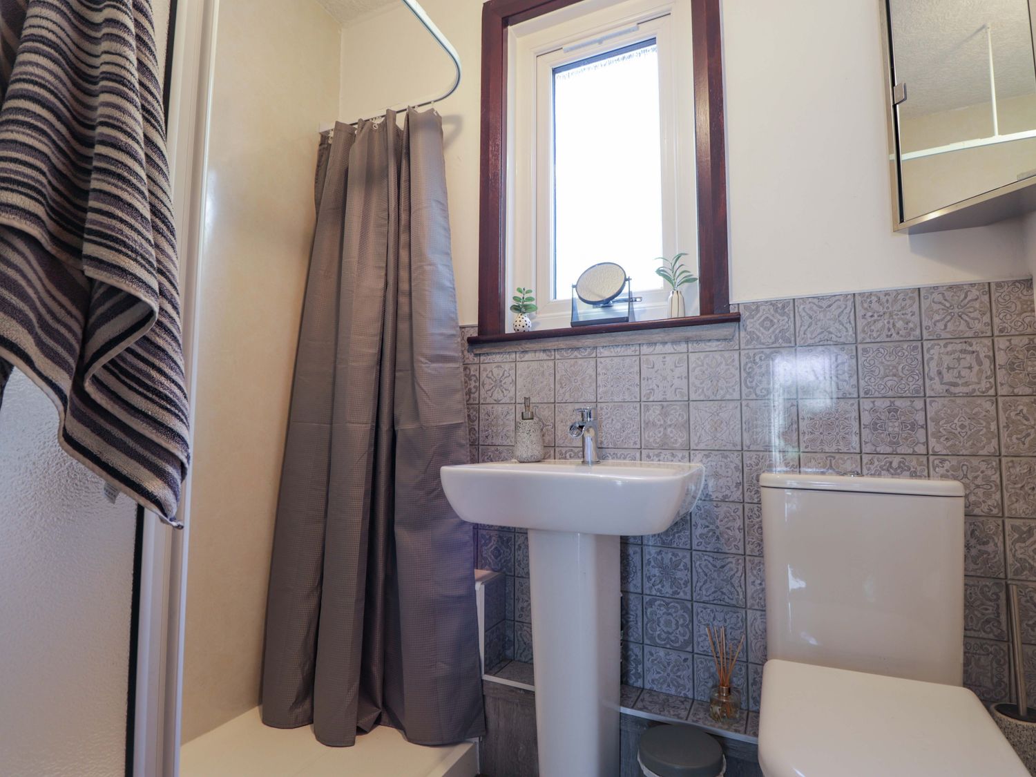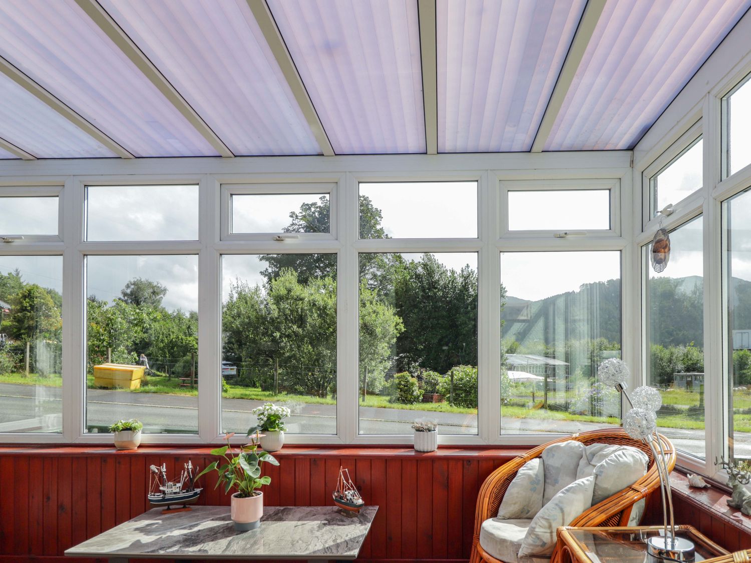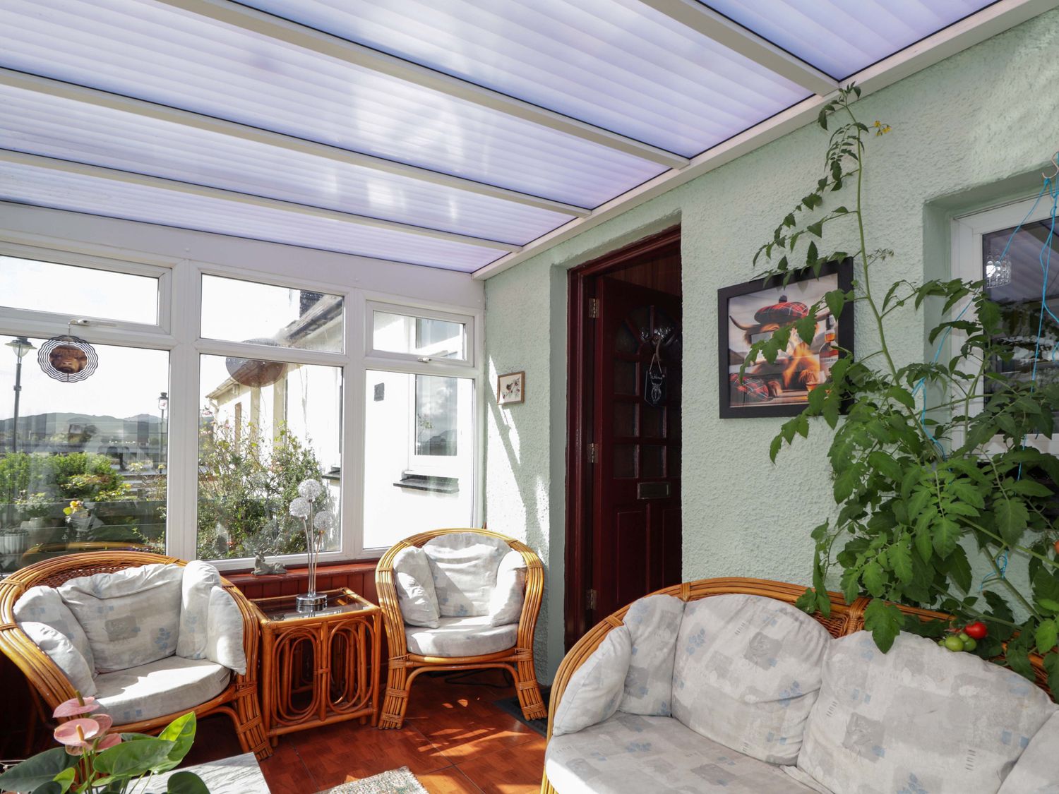 "Two bedrooms: 1 x double, 1 x twin. Ground-floor shower room with walk-in shower, basin and WC. Kitchen. Dining room. Sitting room with electric fire. Conservatory