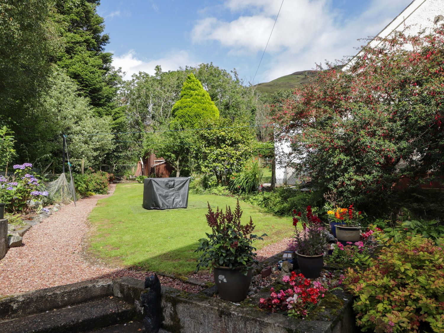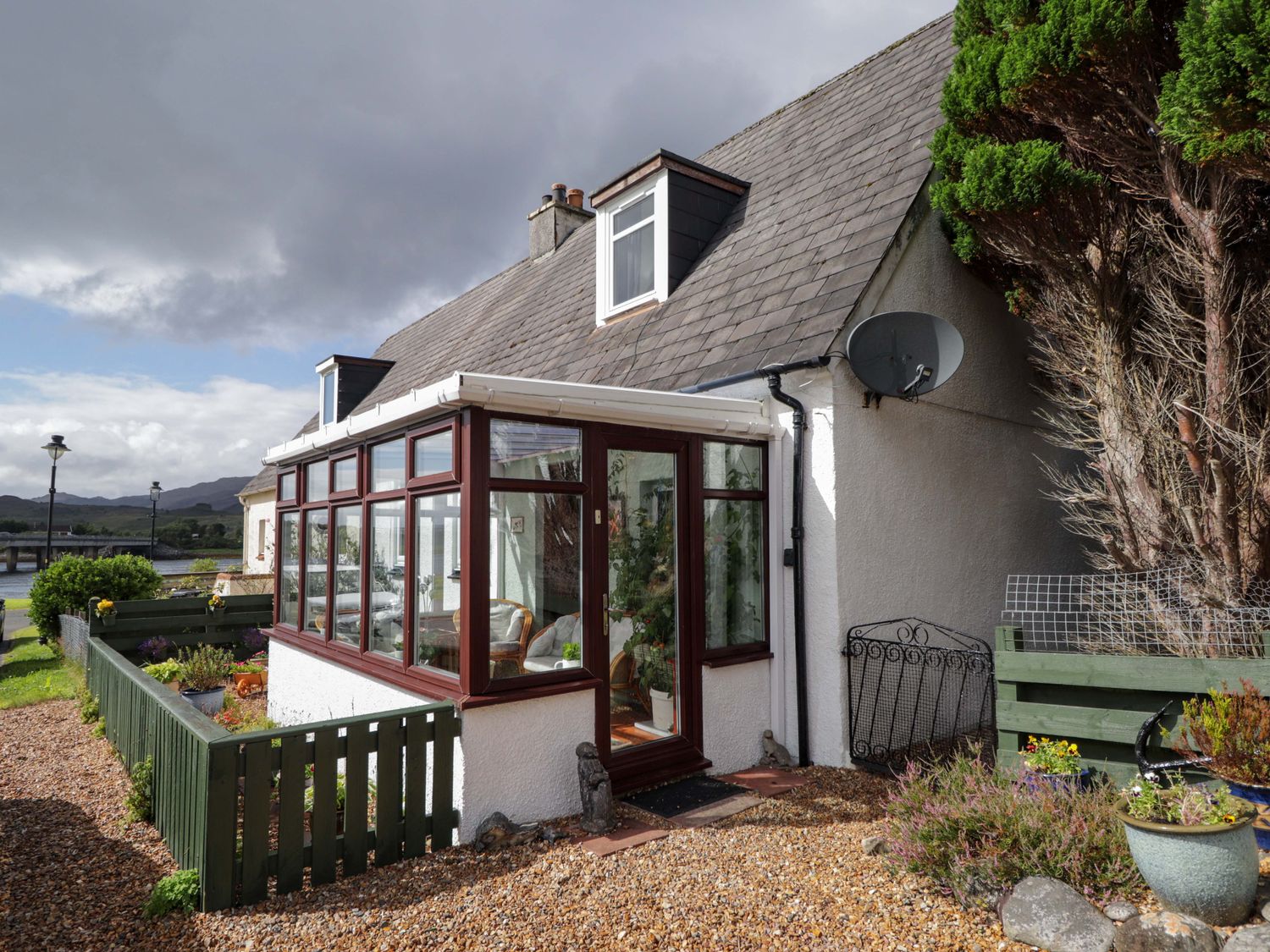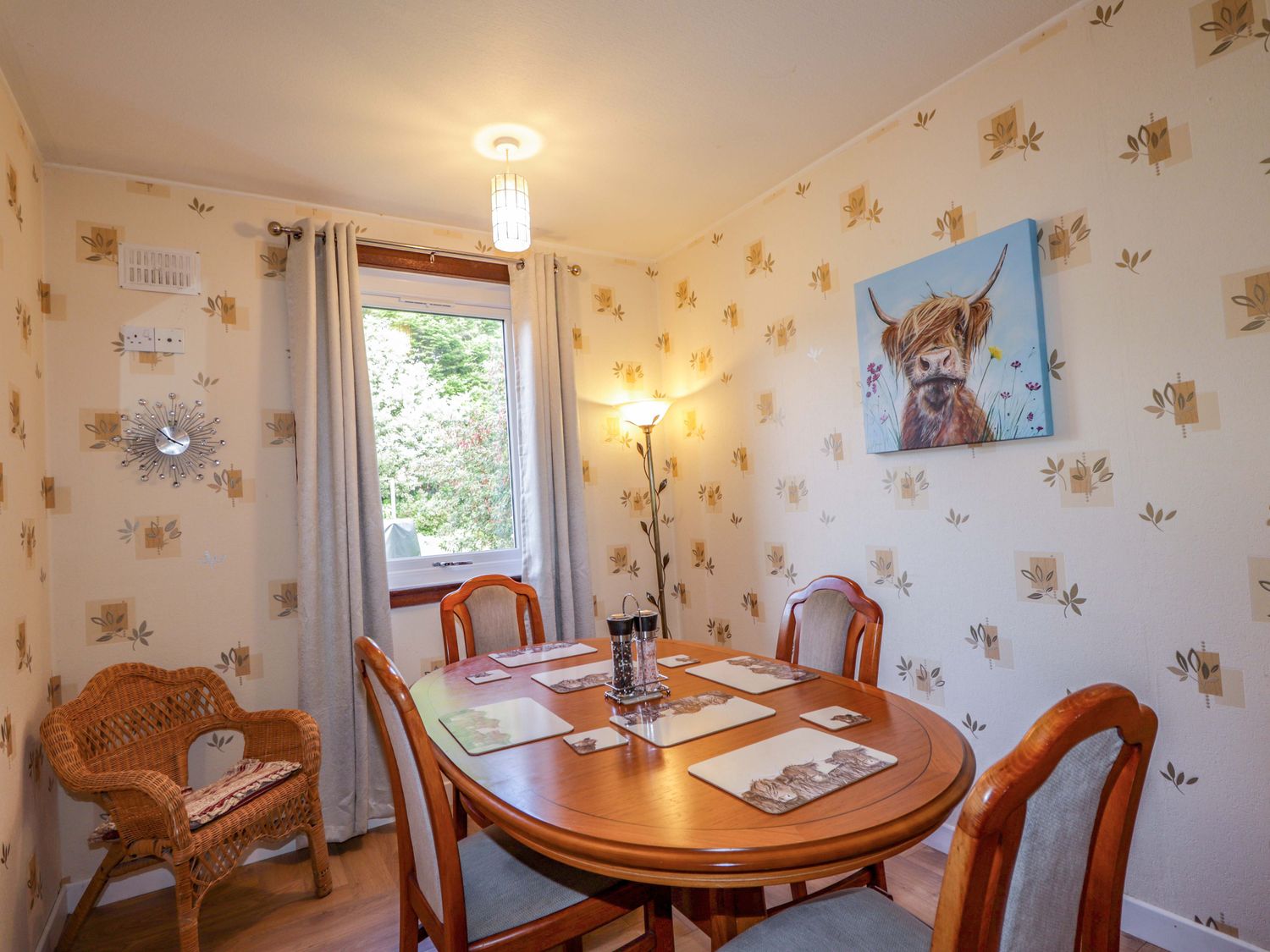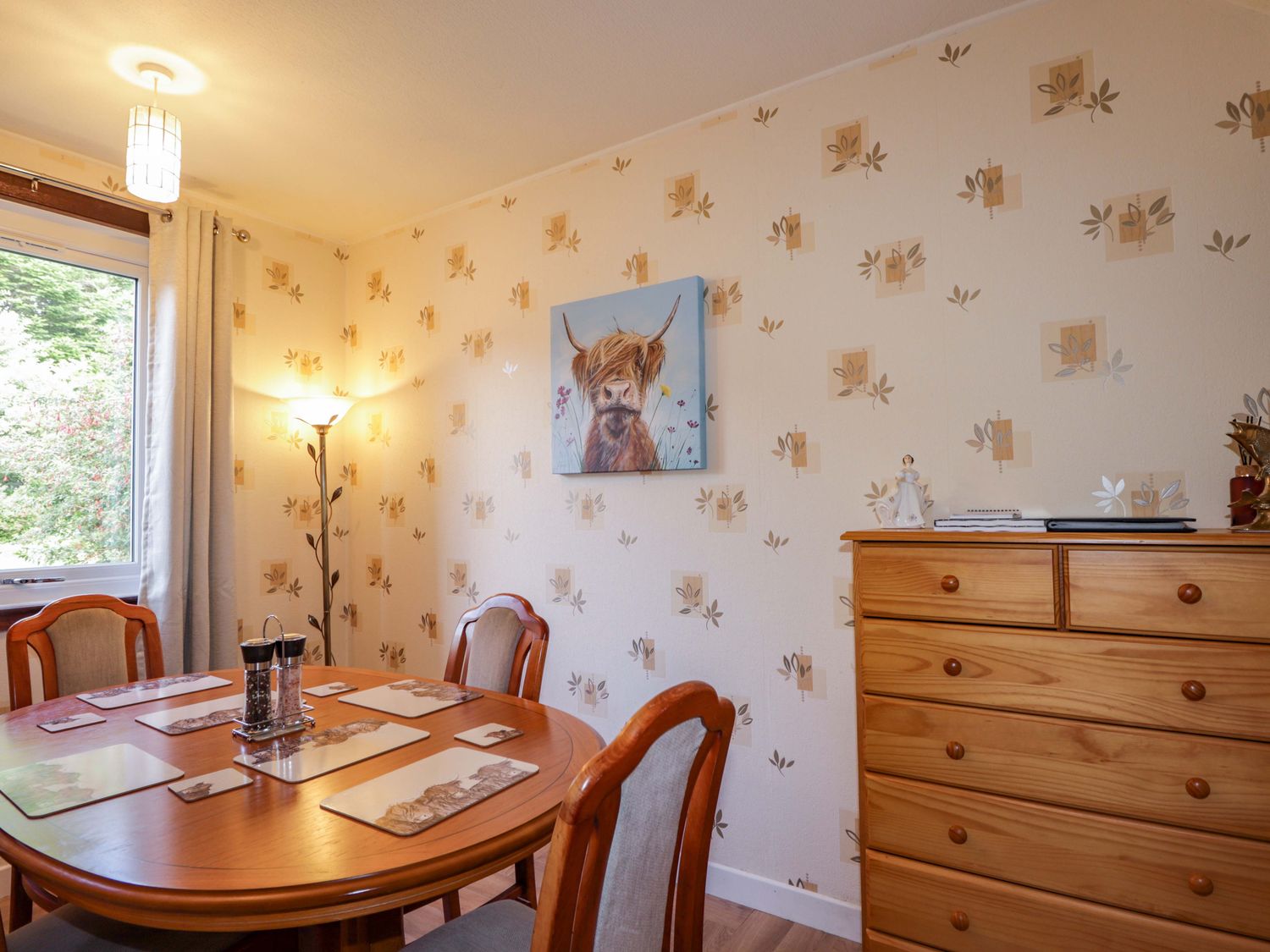 "The Highlander is a house consisting of a kitchen with electric oven/grill, ceramic hob, fridge/freezer, microwave, washing machine, and dishwasher, a dining room with seating for four people, a sitting room with Smart TV and electric fire, and a conservatory. The bedrooms consist of a king-size and twin bed serviced by a ground-floorshower room with a walk-in shower, basin, and WC. WiFi, fuel, power, bed linen, and towels are included in the rent. Cot and highchair available. Outside, there is an enclosed rear garden with lawn and furniture, and roadside parking on a first-come, first-served basis. Sorry, no pets and no smoking. Within 0.2 miles you will find a shop, within 0.2 miles a pub and within 0.1 miles a loch. Enjoy a memorable escape to the Highlands at The Highlander. Note: Front garden has gravel and potted plants, with views from outside of a castle in the distance. This property has a good housekeeping bond of GBP200. This property has a 3 night minimum stay. "