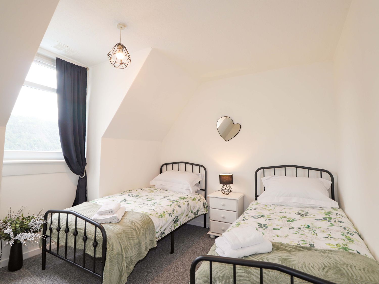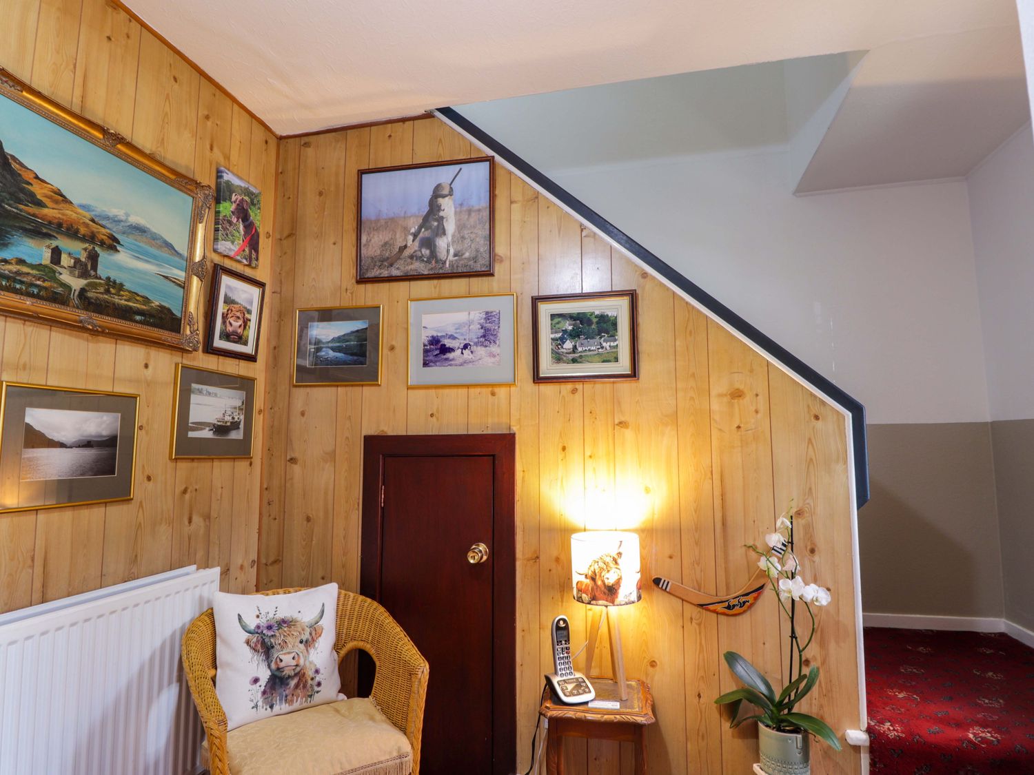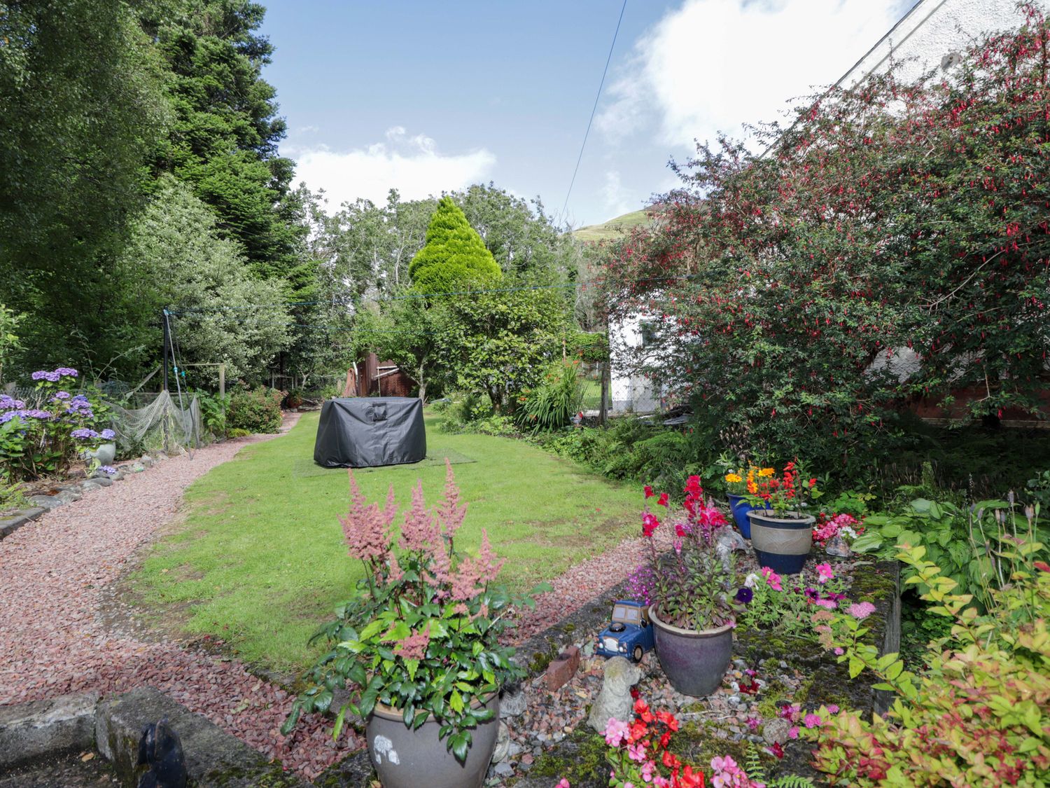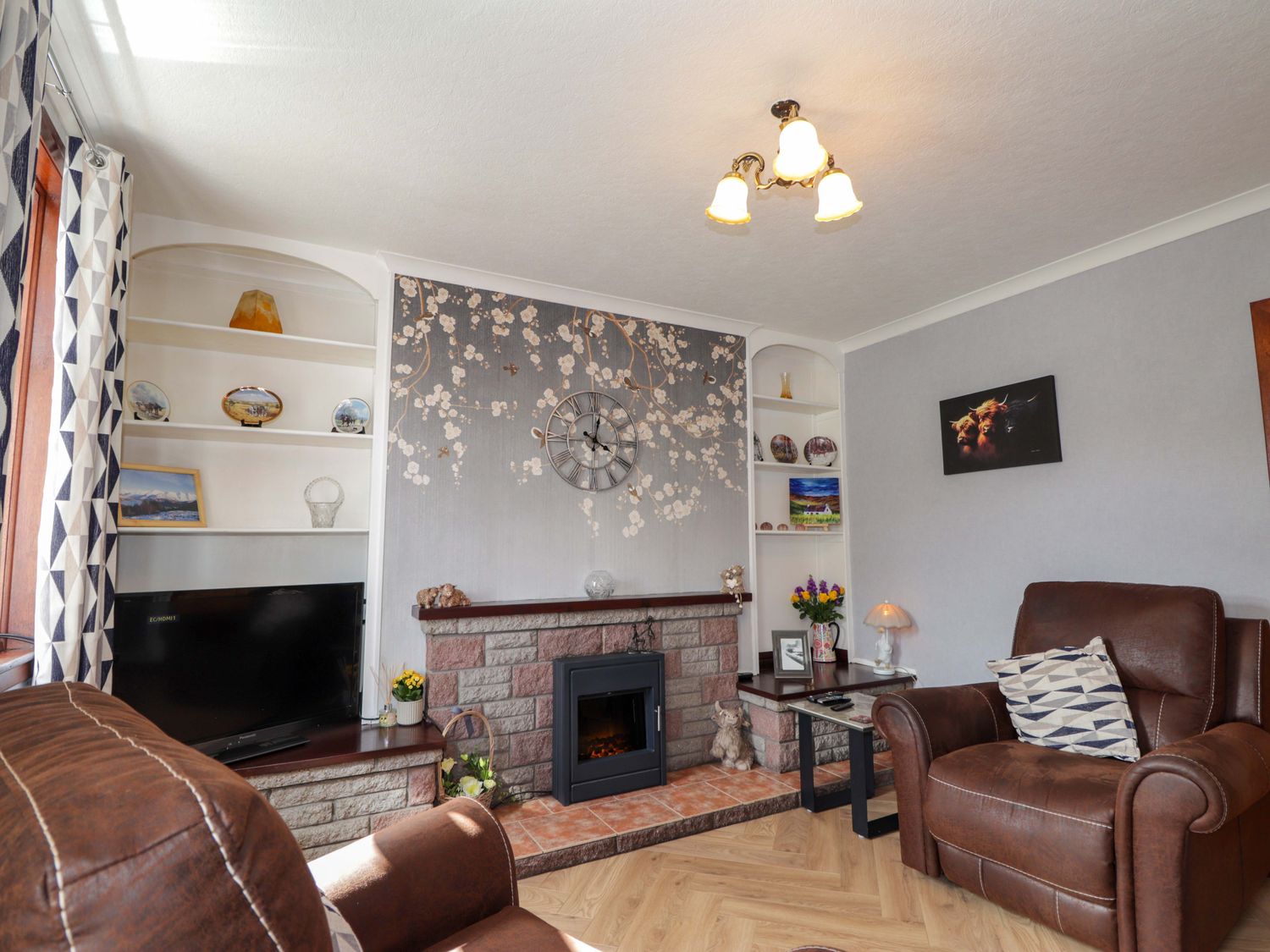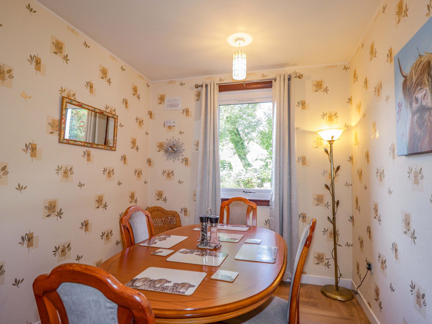 "The Highlander is a house consisting of a kitchen with electric oven/grill, ceramic hob, fridge/freezer, microwave, washing machine, and dishwasher, a dining room with seating for four people, a sitting room with Smart TV and electric fire, and a conservatory. The bedrooms consist of a king-size and twin bed serviced by a ground-floorshower room with a walk-in shower, basin, and WC. WiFi, fuel, power, bed linen, and towels are included in the rent. Cot and highchair available. Outside, there is an enclosed rear garden with lawn and furniture, and roadside parking on a first-come, first-served basis. Sorry, no pets and no smoking. Within 0.2 miles you will find a shop, within 0.2 miles a pub and within 0.1 miles a loch. Enjoy a memorable escape to the Highlands at The Highlander. Note: Front garden has gravel and potted plants, with views from outside of a castle in the distance. This property has a good housekeeping bond of GBP200. This property has a 3 night minimum stay. "