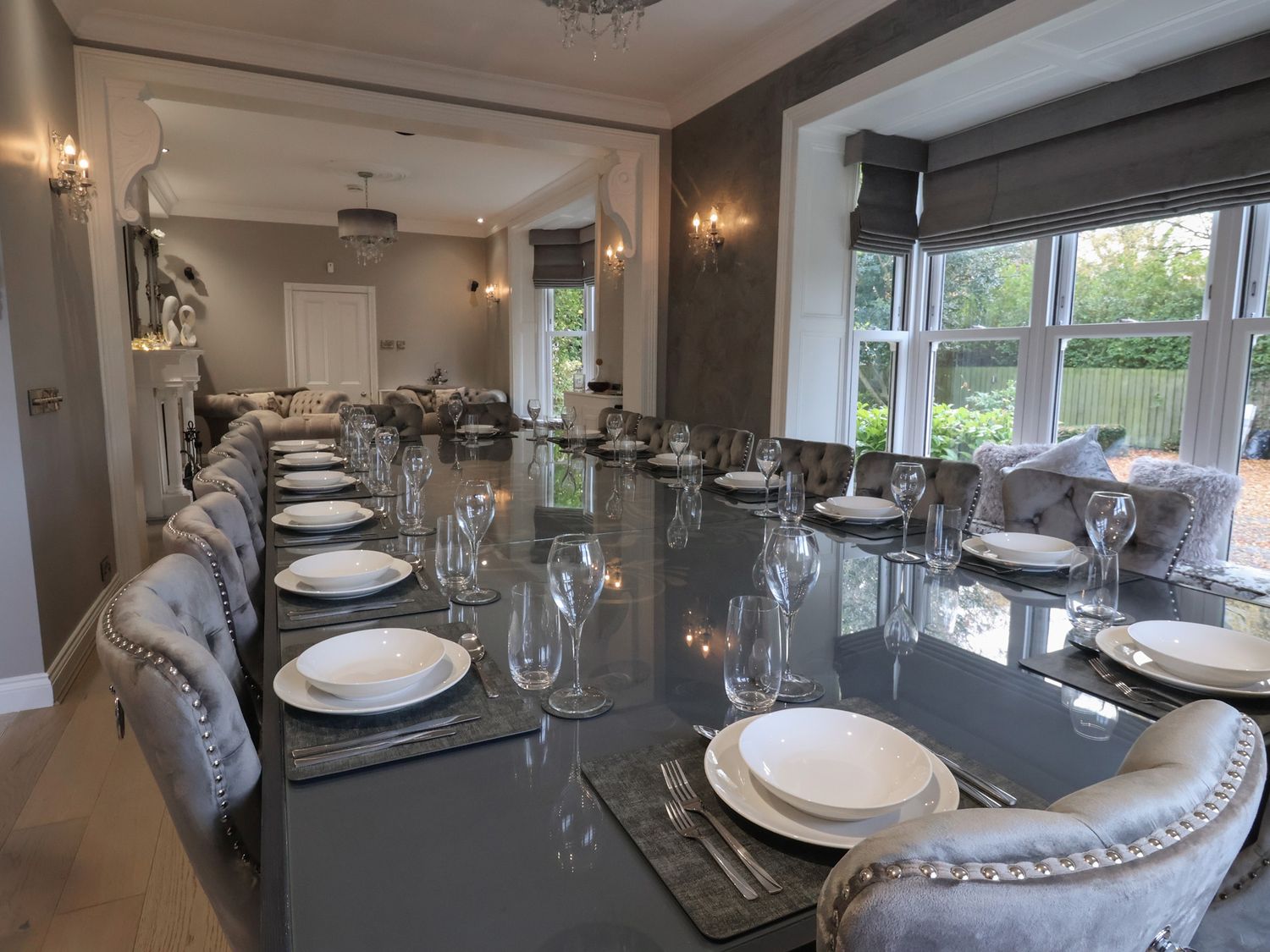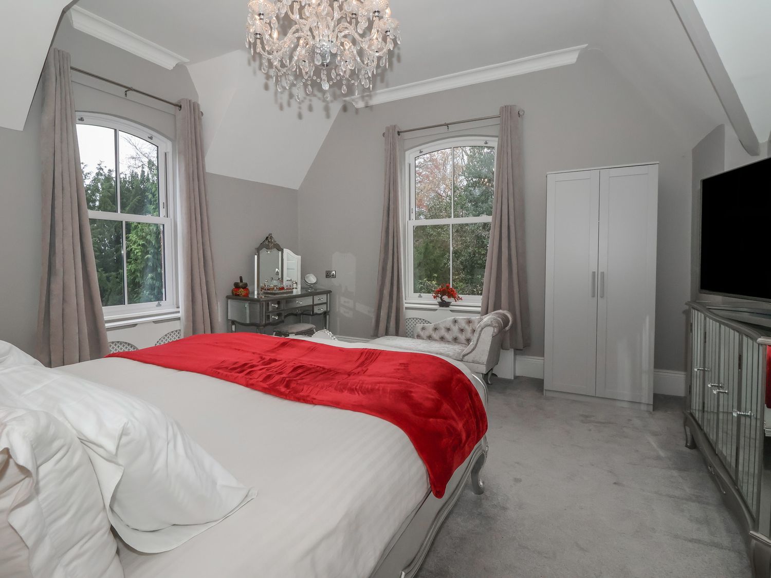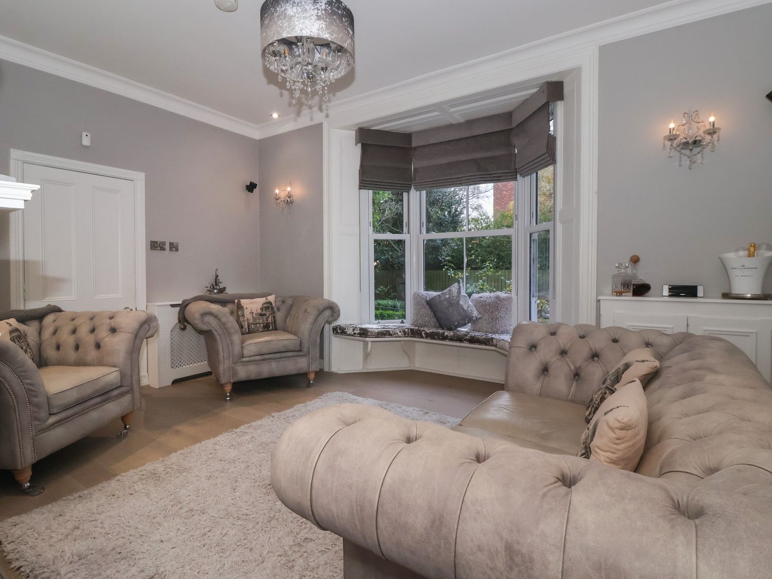 "Seven bedrooms: 1 x ground-floor king with walk-in shower & WC opposite, 1 x family double & king with en-suite and walk-in shower, 2 x king with en-suite walk-in shower, basin and WC, 1 x double, 2 x king-size. Bathroom with bath, basin, and WC. Ground-floor shower room with walk-in shower. Shower room with walk-in shower, basin, and WC. Cloakroom with basin and WC. Kitchen/diner. Utility. Living/dining room with log burner. Cinema room with full surround sound and LED lighting"