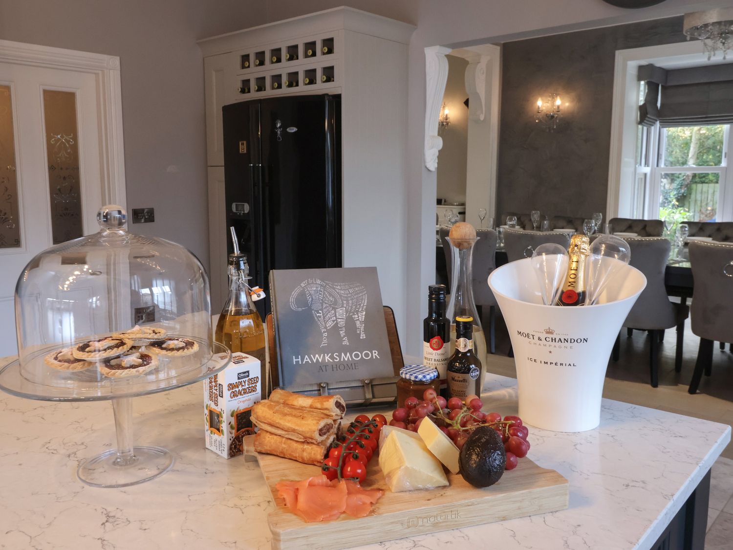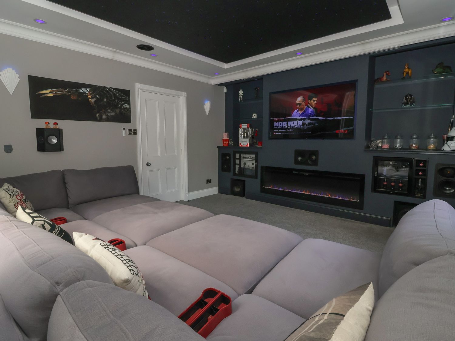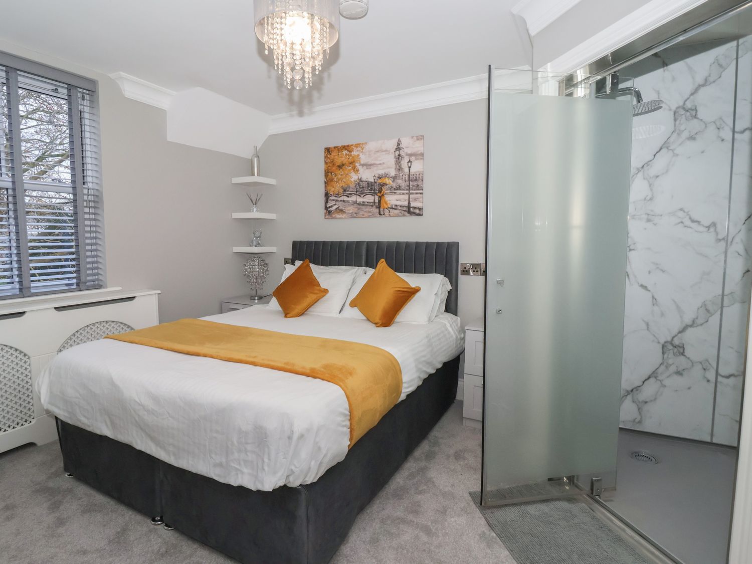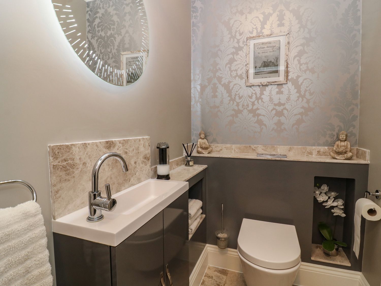 "Seven bedrooms: 1 x ground-floor king with walk-in shower & WC opposite, 1 x family double & king with en-suite and walk-in shower, 2 x king with en-suite walk-in shower, basin and WC, 1 x double, 2 x king-size. Bathroom with bath, basin, and WC. Ground-floor shower room with walk-in shower. Shower room with walk-in shower, basin, and WC. Cloakroom with basin and WC. Kitchen/diner. Utility. Living/dining room with log burner. Cinema room with full surround sound and LED lighting"