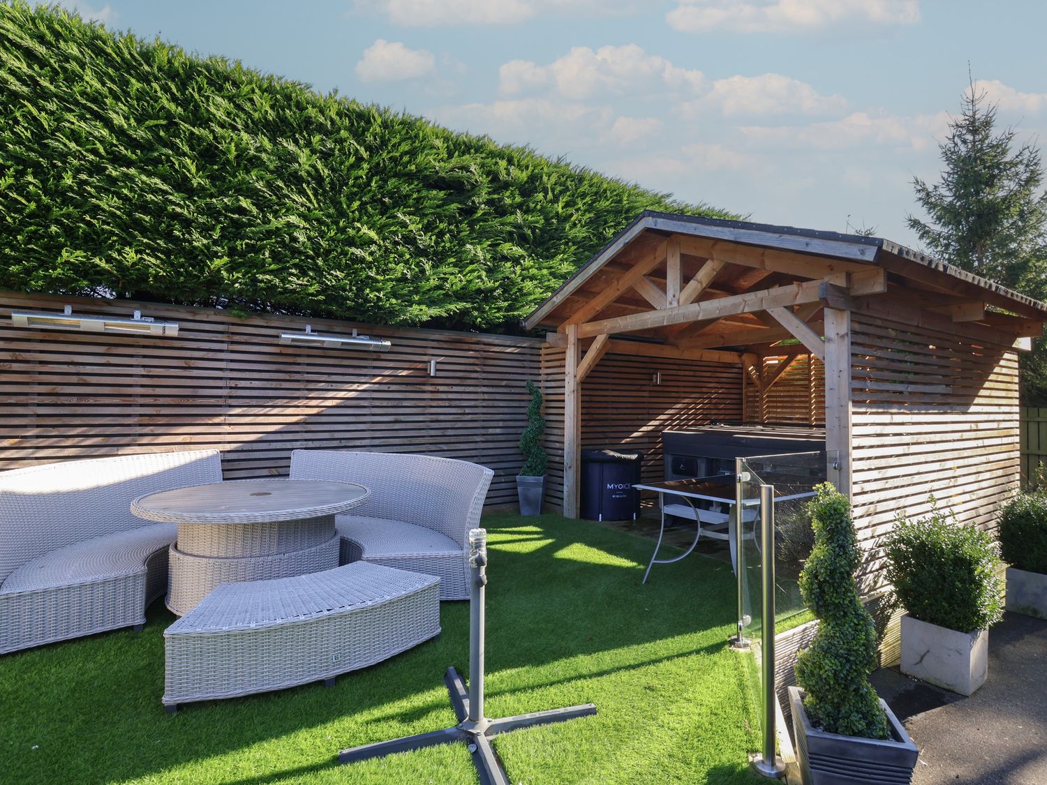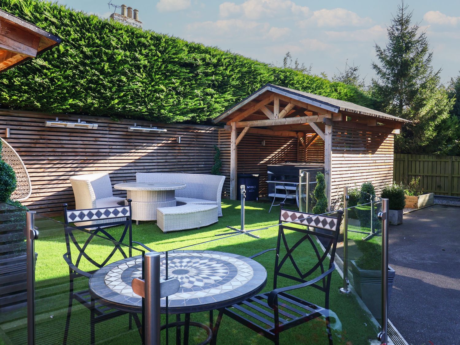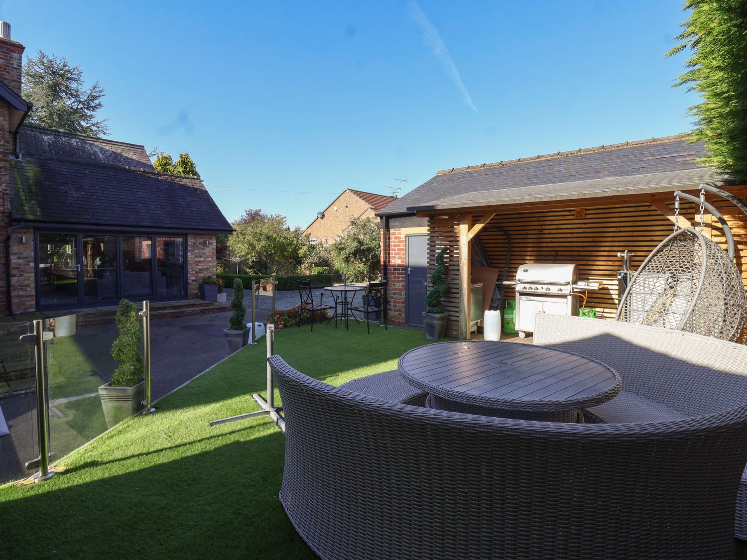 "Ten Gables is a house consisting of a kitchen/diner with a range cooker with oven and gas hobs, fridge/freezer, microwave, kettle, toaster, and a breakfast bar, a utility room with a washing machine, a living/dining room with an electric fire andd dining seating, and a cinema room with a TV and speakers, and an electric fire. The bedrooms consist of a ground-floor double, three doubles with en-suites showers, and three doubles serviced by a bathroom with a bath, basin, and WC, a ground-floor shower room with a walk-in shower, a second shower room with a walk-in shower, basin, and WC cloakroom with a basin and WC. WiFi, fuel, power, bed linen, and towels are included in the rent. Outside, there is a garden with a lawn, patio, furniture, barbecue, a hot tub, and ample off-road parking. Sorry, no pets and no smoking. Within 0.6 miles you will find a shop and within 0.5 miles a pub. Your journey to East Riding of Yorkshire is guaranteed to be one to remember with a stay at Ten Gables. There is a good housekeeping bond of 750 GBP"