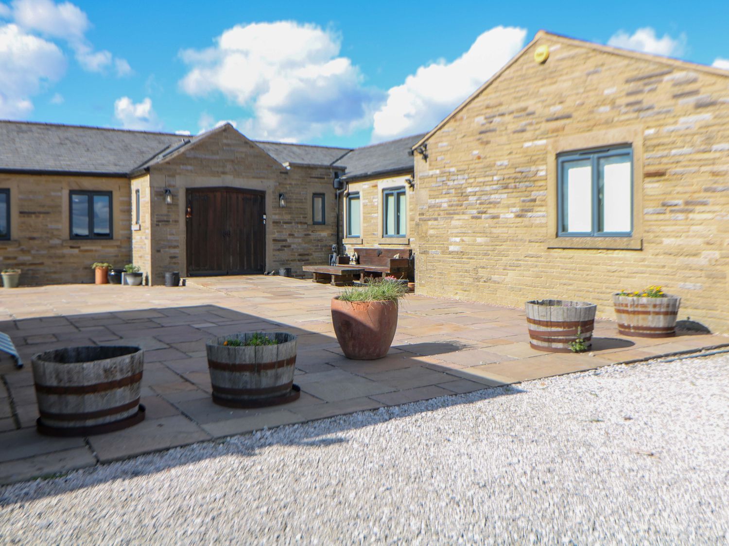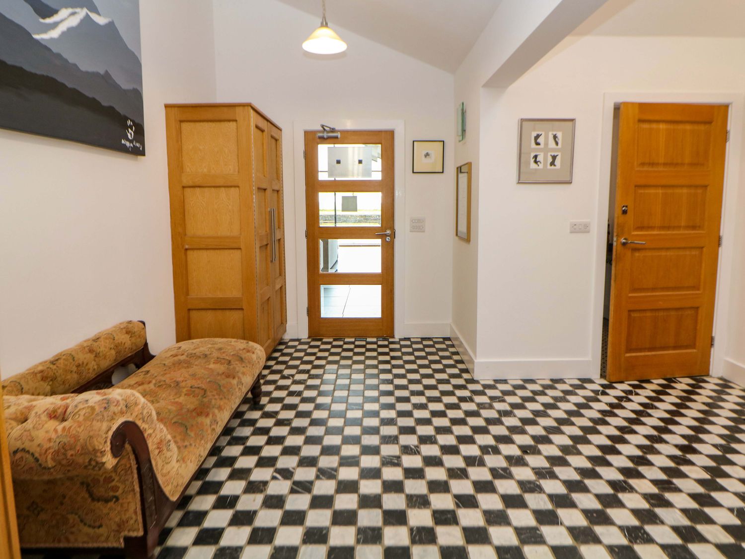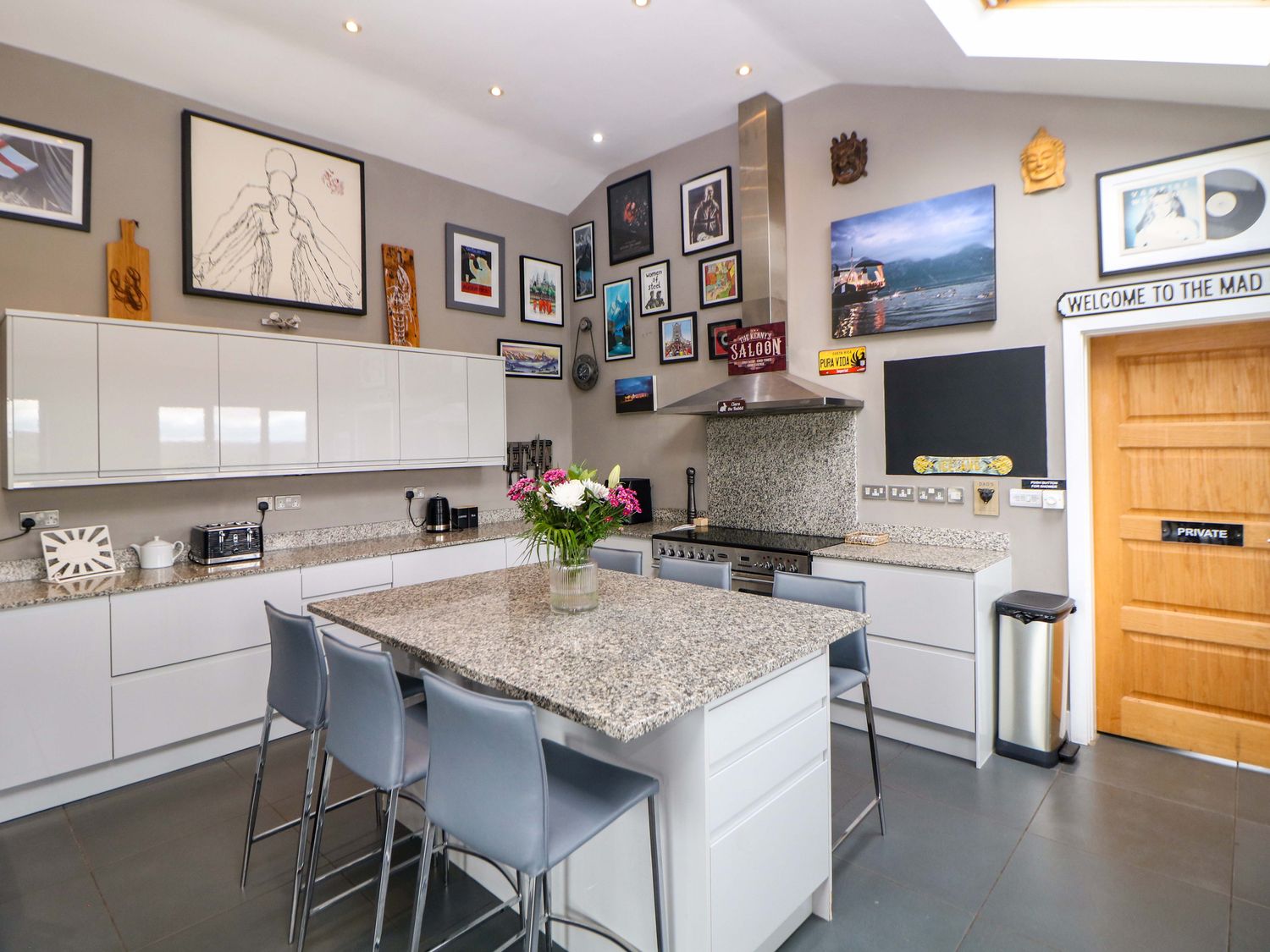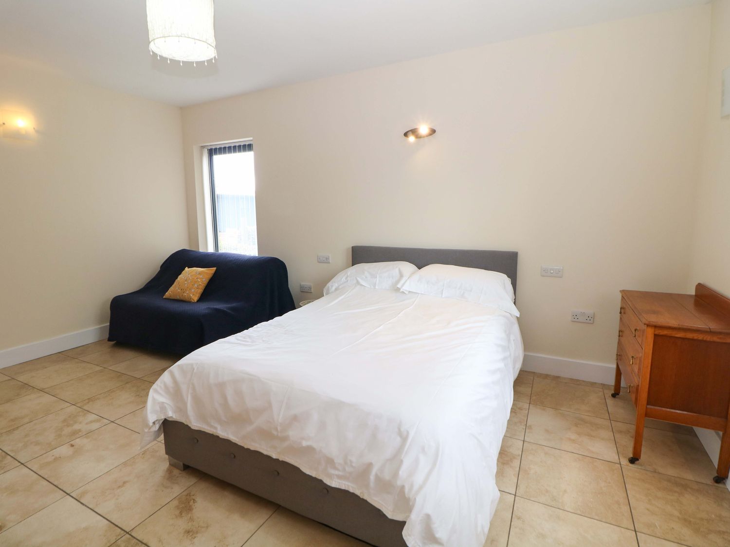 "Single-storey. Four bedrooms: 1 x king-size with TV, 1 x single sofa bed, TV with jack and Jill basin and wc, 1 x double with Jack and Jill WC, 1 x double bed, 1 x small double sofa bed with en-suite walk-in shower, basin and WC, 1 x family room with 1 x double, 2 x single with additional single sofa bed. Cloakroom with basin and WC. Bathroom with freestanding bath, walk-in shower, basin and WC. Open-plan living space with kitchen, dining and sitting area with woodburning stove"