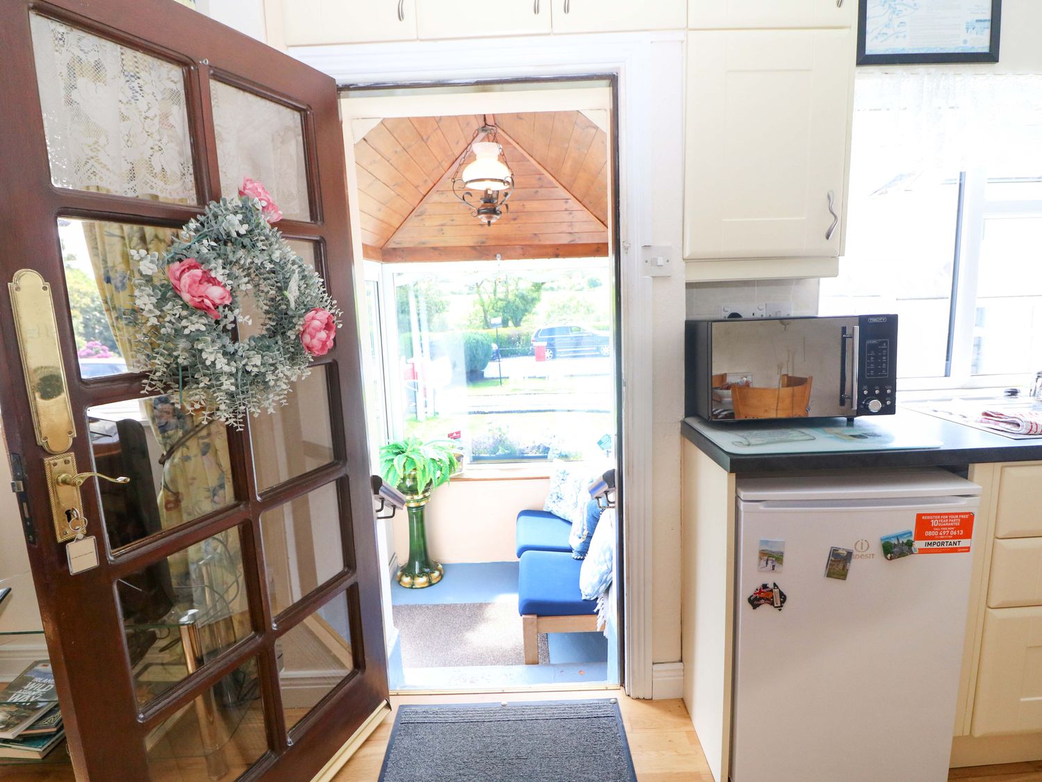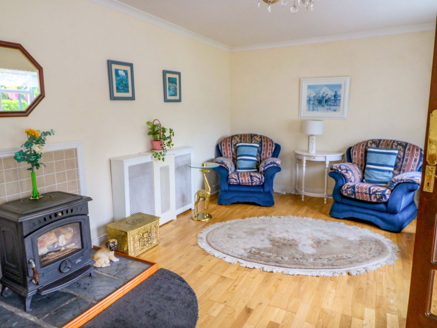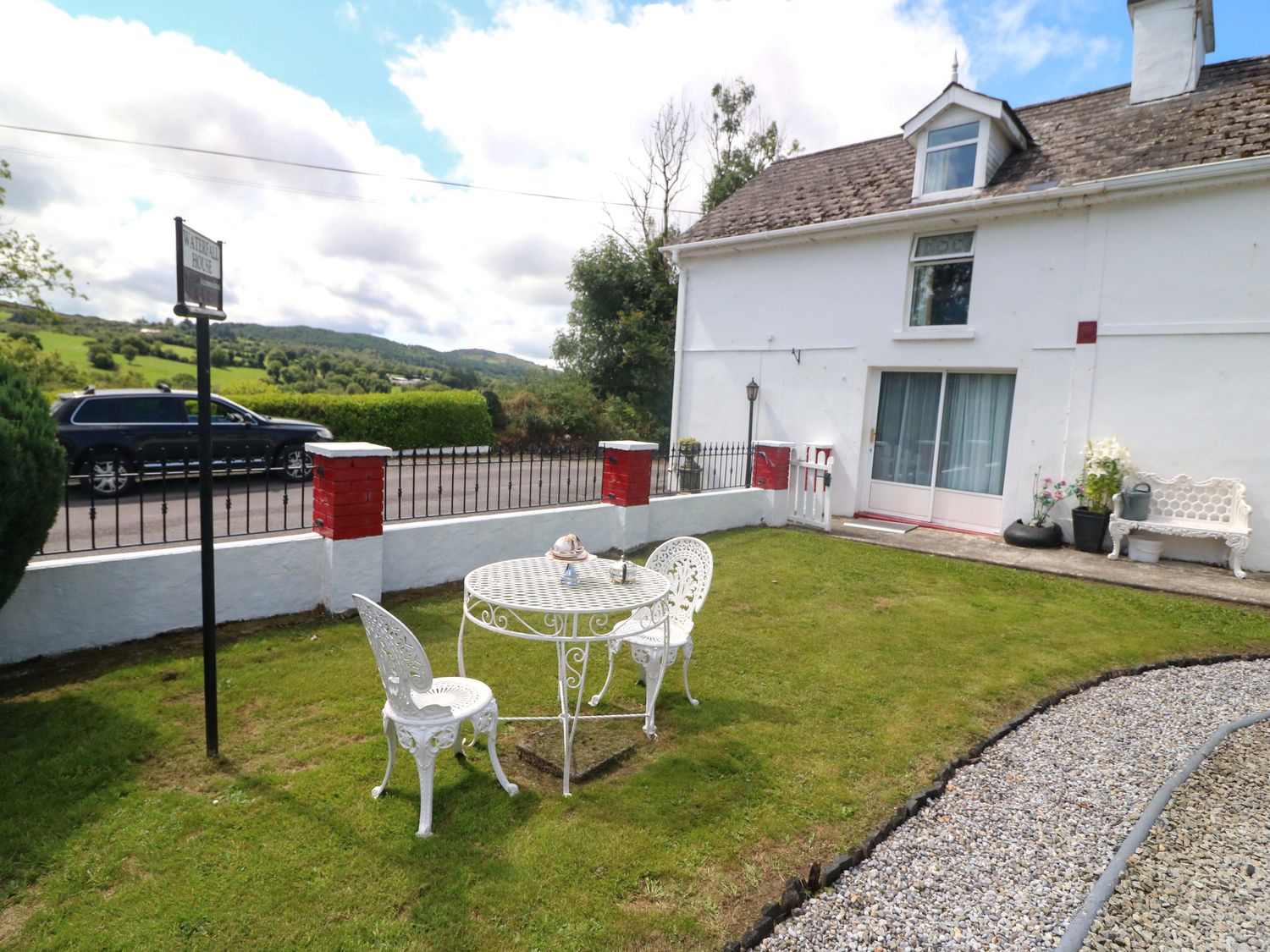 "This end-terrace cottage has an open-plan living space with a kitchen, dining area for four guests, and a sitting area with a TV, DVD player, and woodburning stove. Amenities include an electric oven and hob, microwave, fridge, and a shared washing machine located in an external laundry room. There is one double bedroom with a TV and en-suite bathroom. Outside, there is a shared front garden with furniture, and off-road parking. Within 2.9 miles, there is a shop, and within 3.5 miles, a pub. One well-behaved pet is welcome. Please note, this is a non-smoking property. WiFi, fuel, power, starter pack for woodburning stove, bed linen and towels are all included in the price. Note: This property does not accept children. Note: 3 steps up to the living area. Your next romantic holiday in Ireland awaits at Waterfall House."