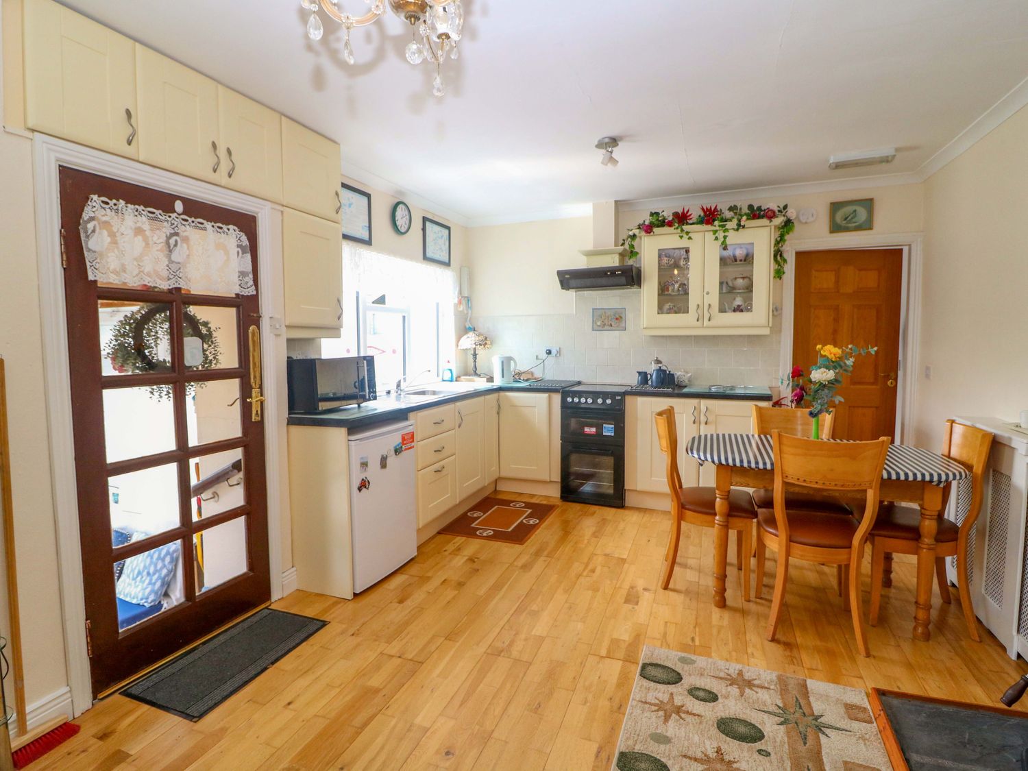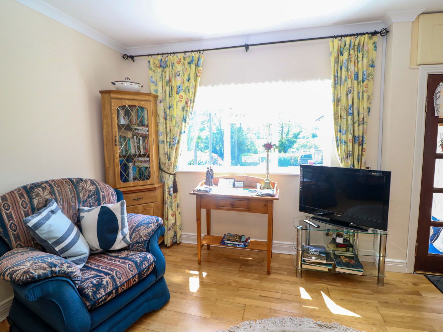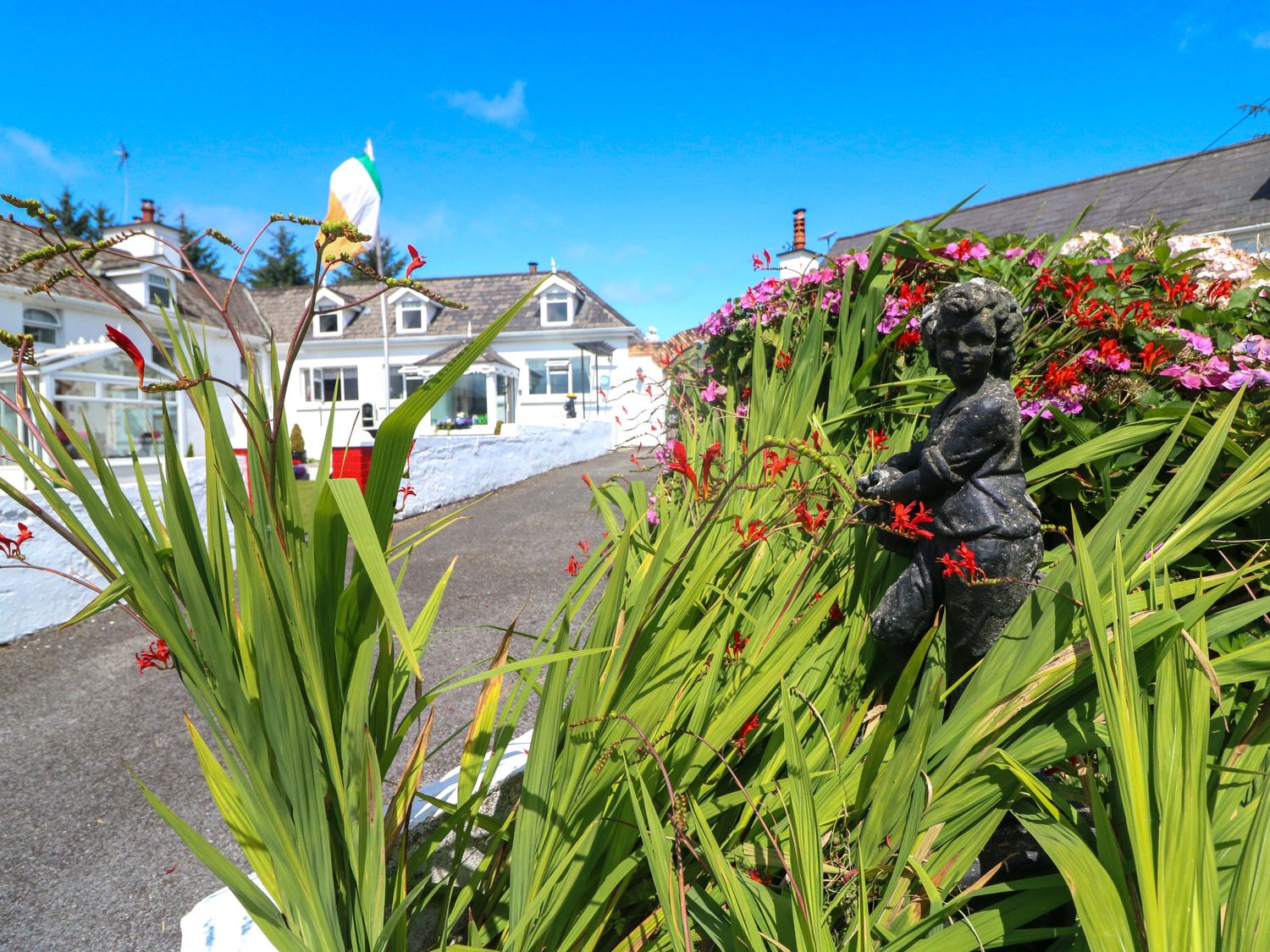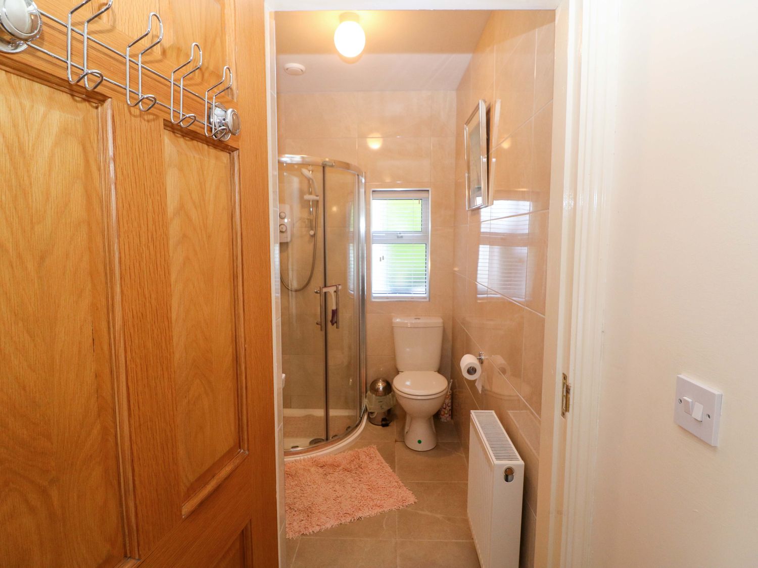 "This end-terrace cottage has an open-plan living space with a kitchen, dining area for four guests, and a sitting area with a TV, DVD player, and woodburning stove. Amenities include an electric oven and hob, microwave, fridge, and a shared washing machine located in an external laundry room. There is one double bedroom with a TV and en-suite bathroom. Outside, there is a shared front garden with furniture, and off-road parking. Within 2.9 miles, there is a shop, and within 3.5 miles, a pub. One well-behaved pet is welcome. Please note, this is a non-smoking property. WiFi, fuel, power, starter pack for woodburning stove, bed linen and towels are all included in the price. Note: This property does not accept children. Note: 3 steps up to the living area. Your next romantic holiday in Ireland awaits at Waterfall House."