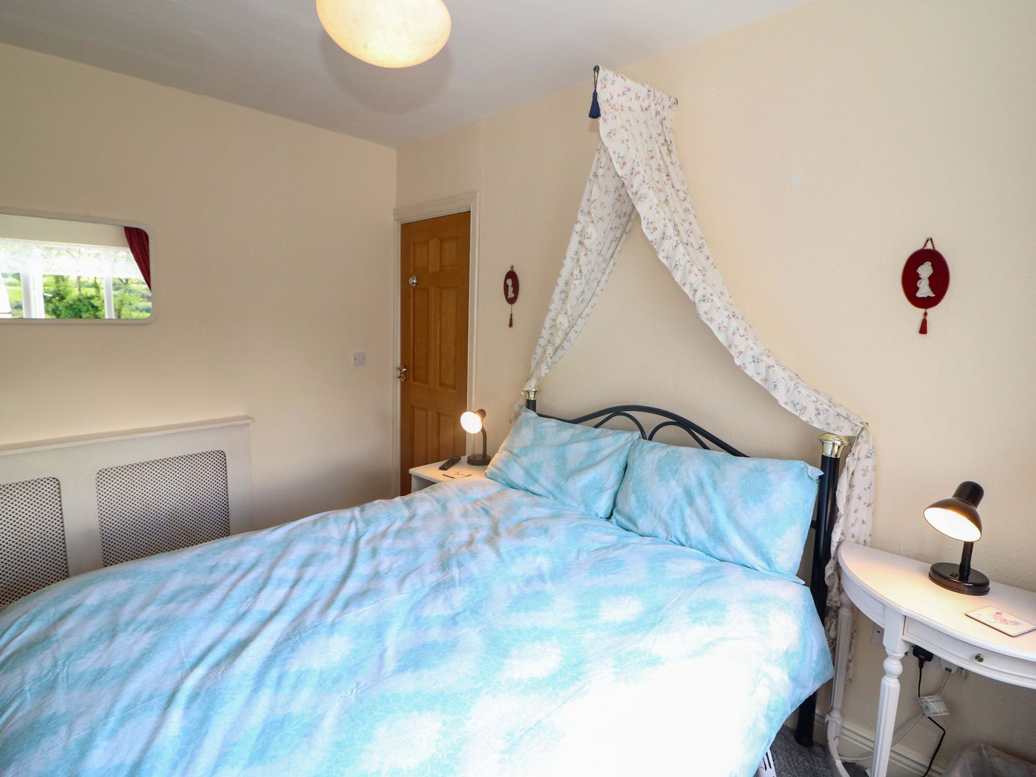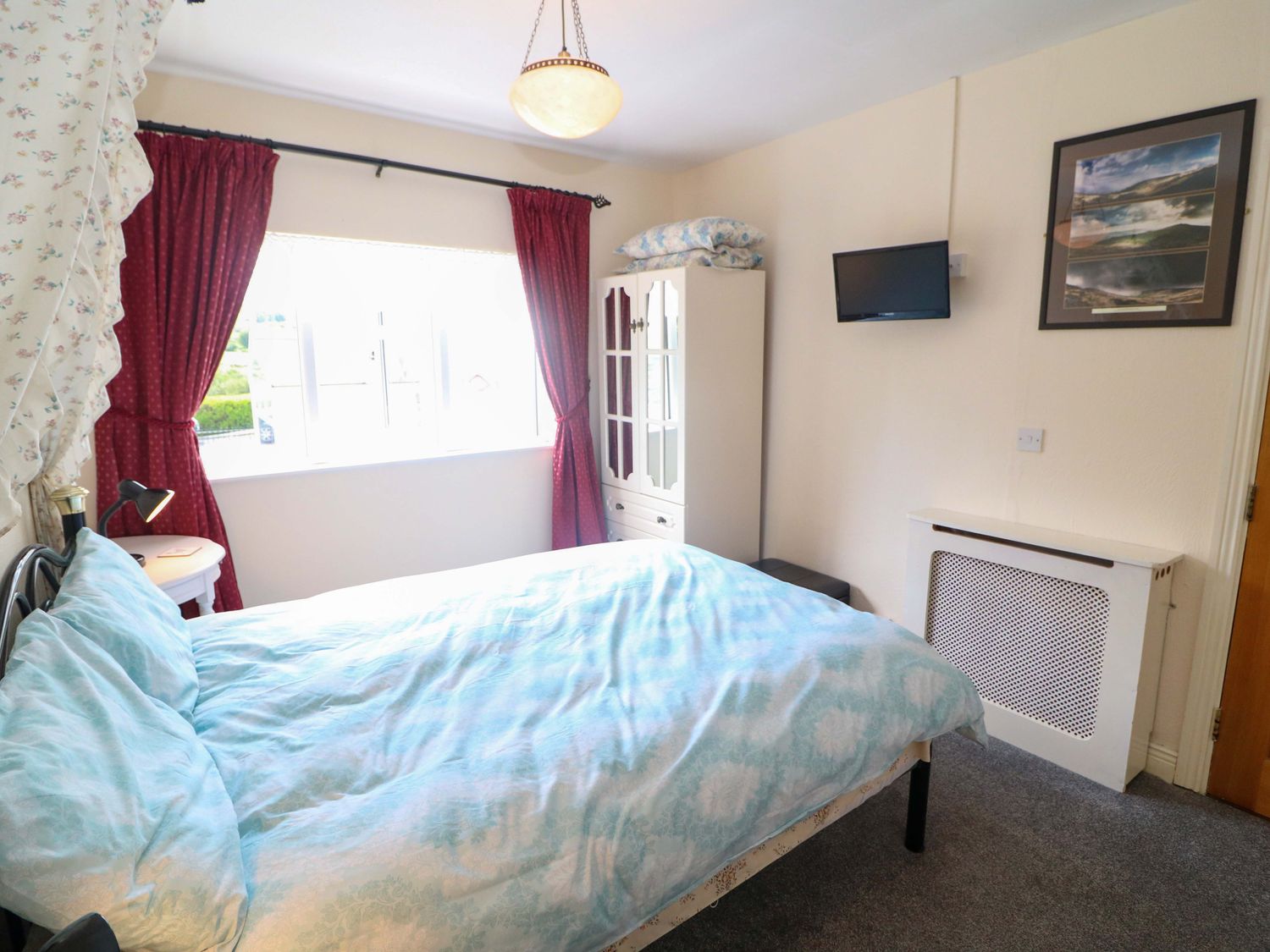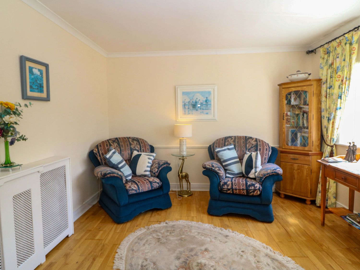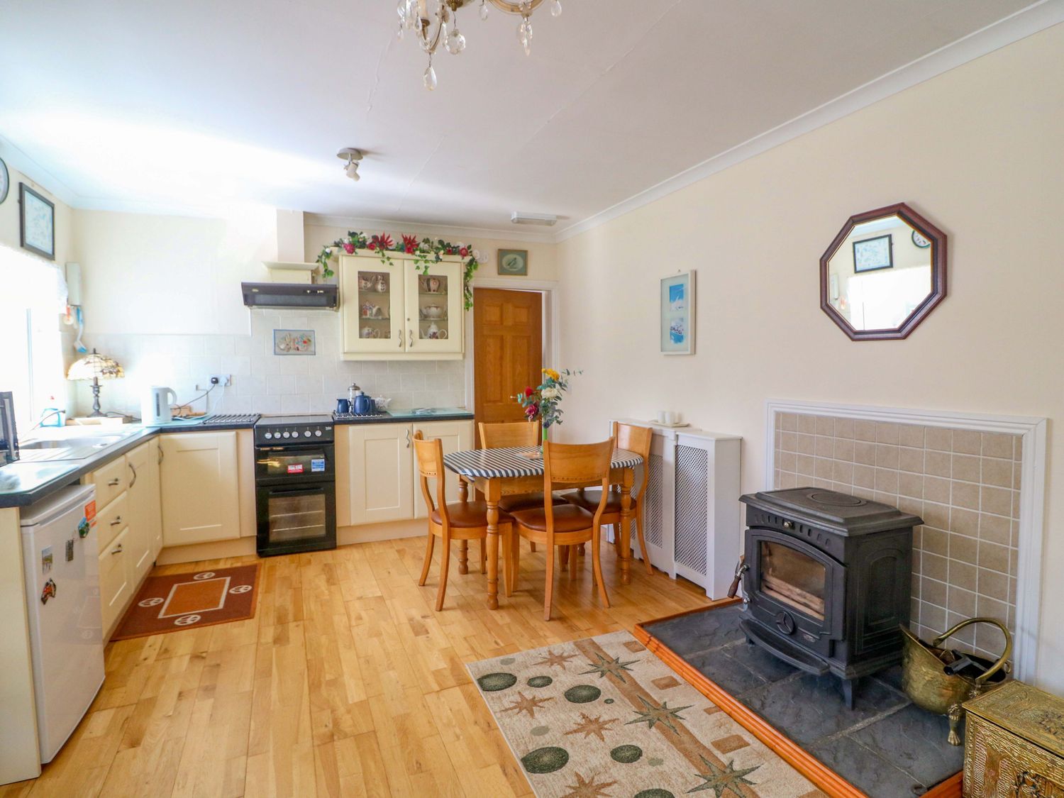 "Single-storey. One double bedroom with TV and en-suite bath, shower over, basin and WC. Open-plan living space with kitchen, dining area and sitting area with woodburning stove"