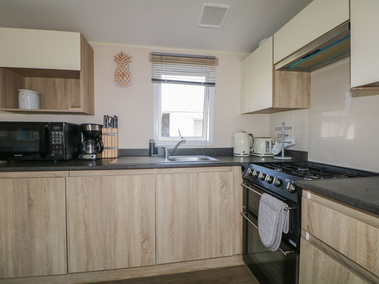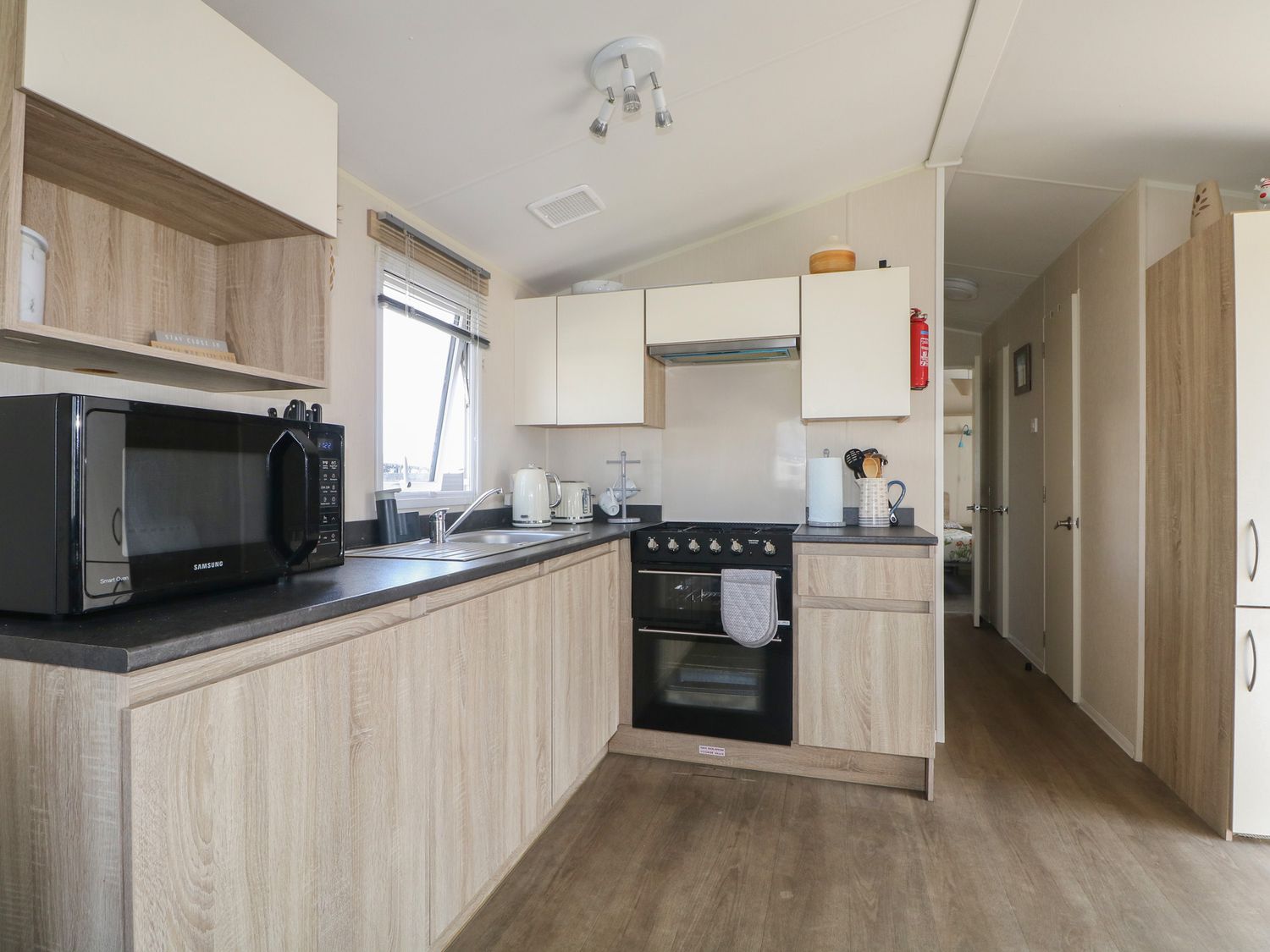 "Tower View Number 34, consists of a open-plan living space with kitchen with gas oven, grill and hob, combi microwave/oven, fridge/freezer, coffee filter, kettle, and toaster, a dining area with seating and sitting area with Smart TV and gas fire. The bedrooms consist of a double, and two twins serviced by a shower room with walk-in shower and basin and cloakroom with basin and WC. Outside there is a non enclosed side garden with lawn, patio, furniture, barbecue, off-road parking for 1 car and a swimming pool and restaurant onsite. Within 0.7 miles, you will find a shop, within 0.6, a pub, and within 0.8 miles a beach. Please note that this is a non-smoking property and no pets allowed. WiFi, fuel, power, bed linen and towels are all included in the price. Tower View Number 34, a lovely base for your coastal escape. Note: There are two steps up to the property. Note: There is a sofa bed for flexible sleeping arrangements only. Note: There are day passes available for purchase for the swimming pool."