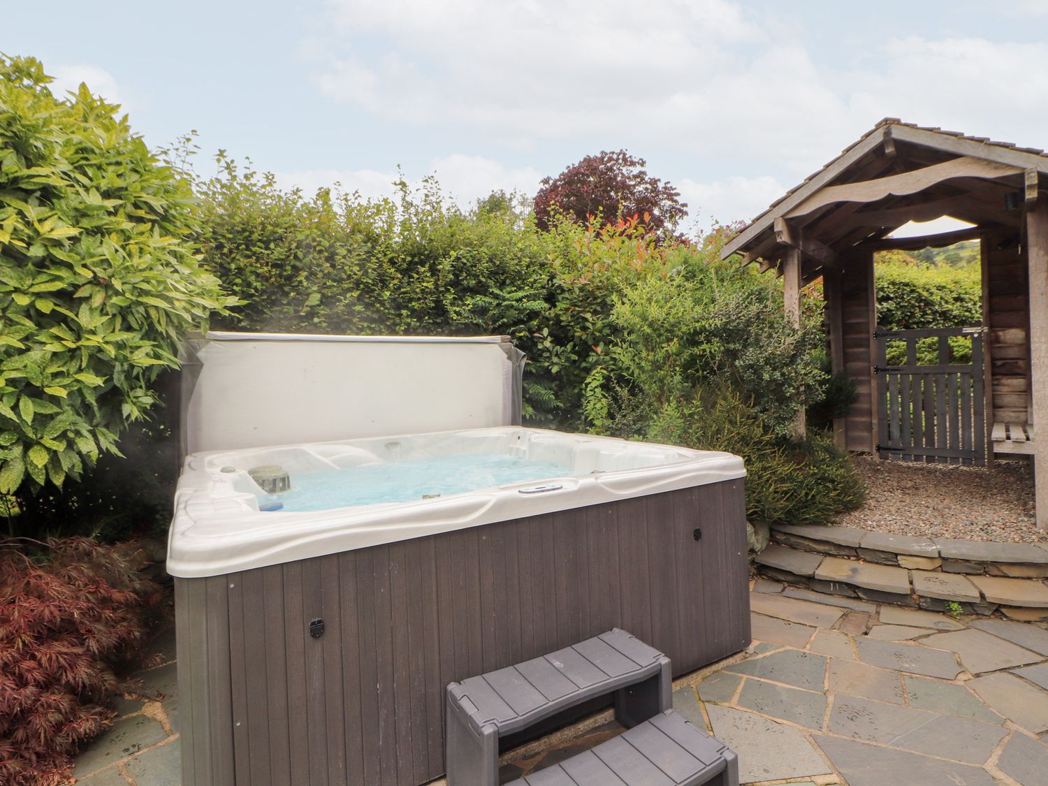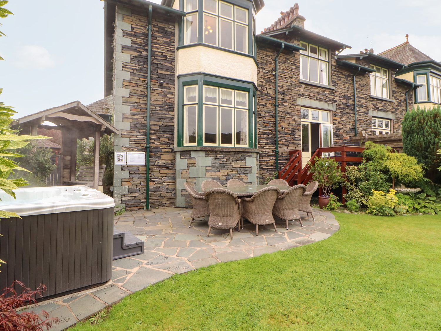 Utility room. Downstairs WC. House bathroom. Garden with hot tub. Private parking. No pets allowed."