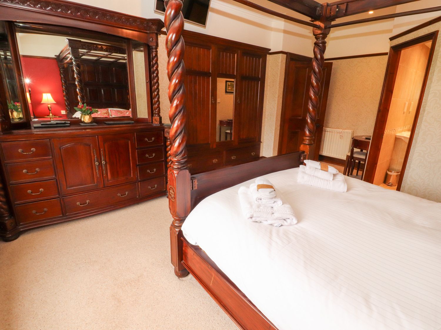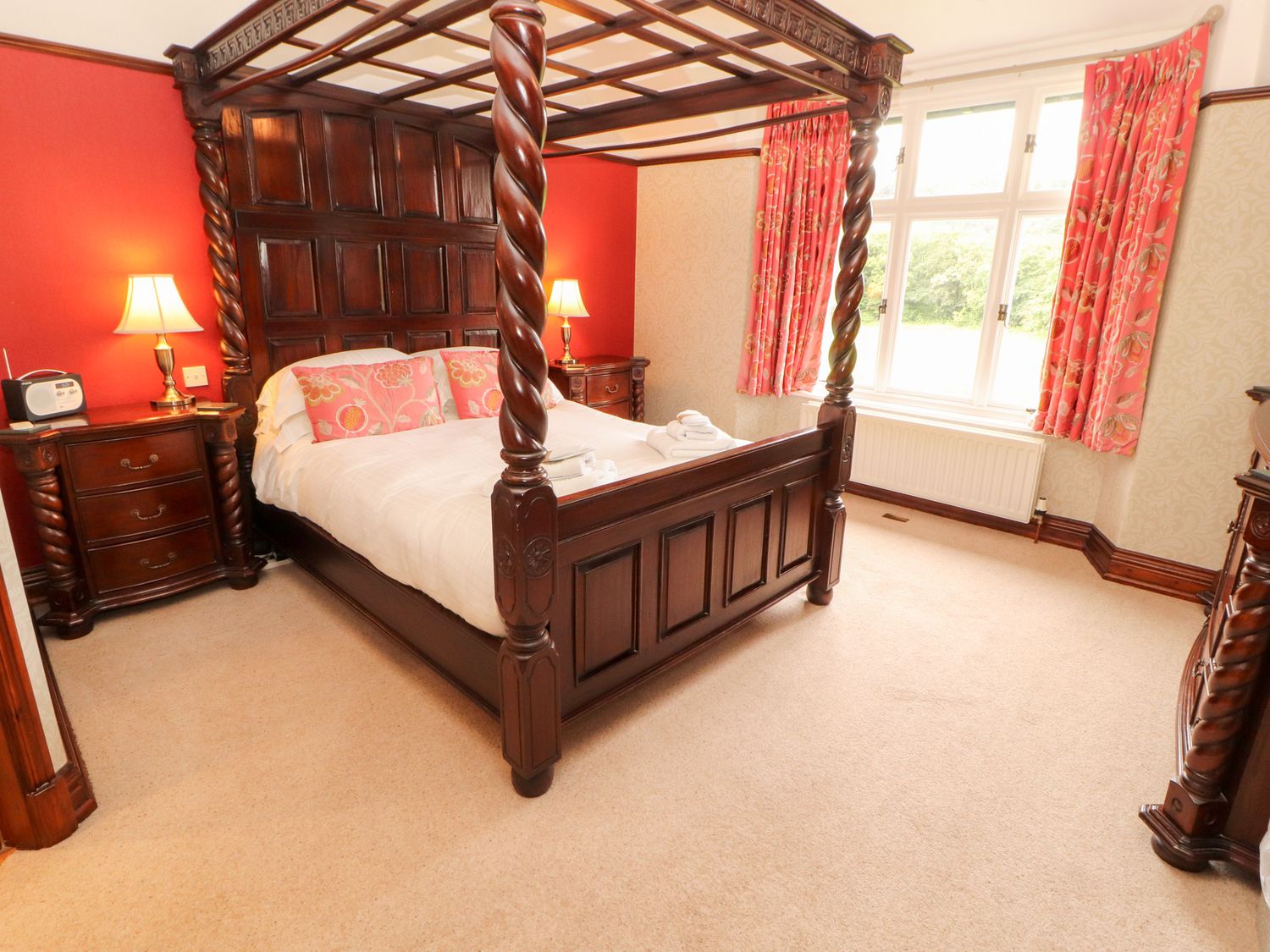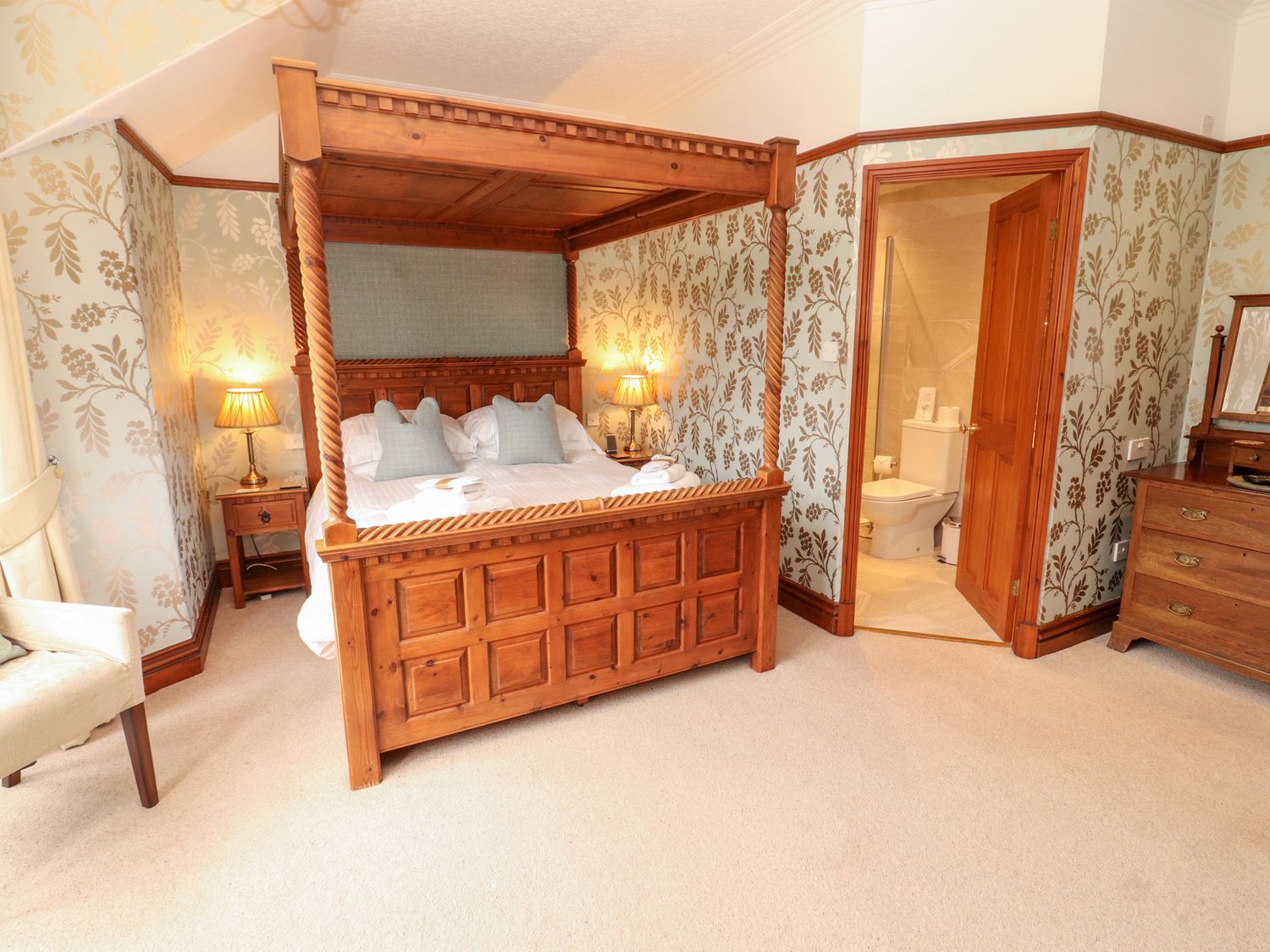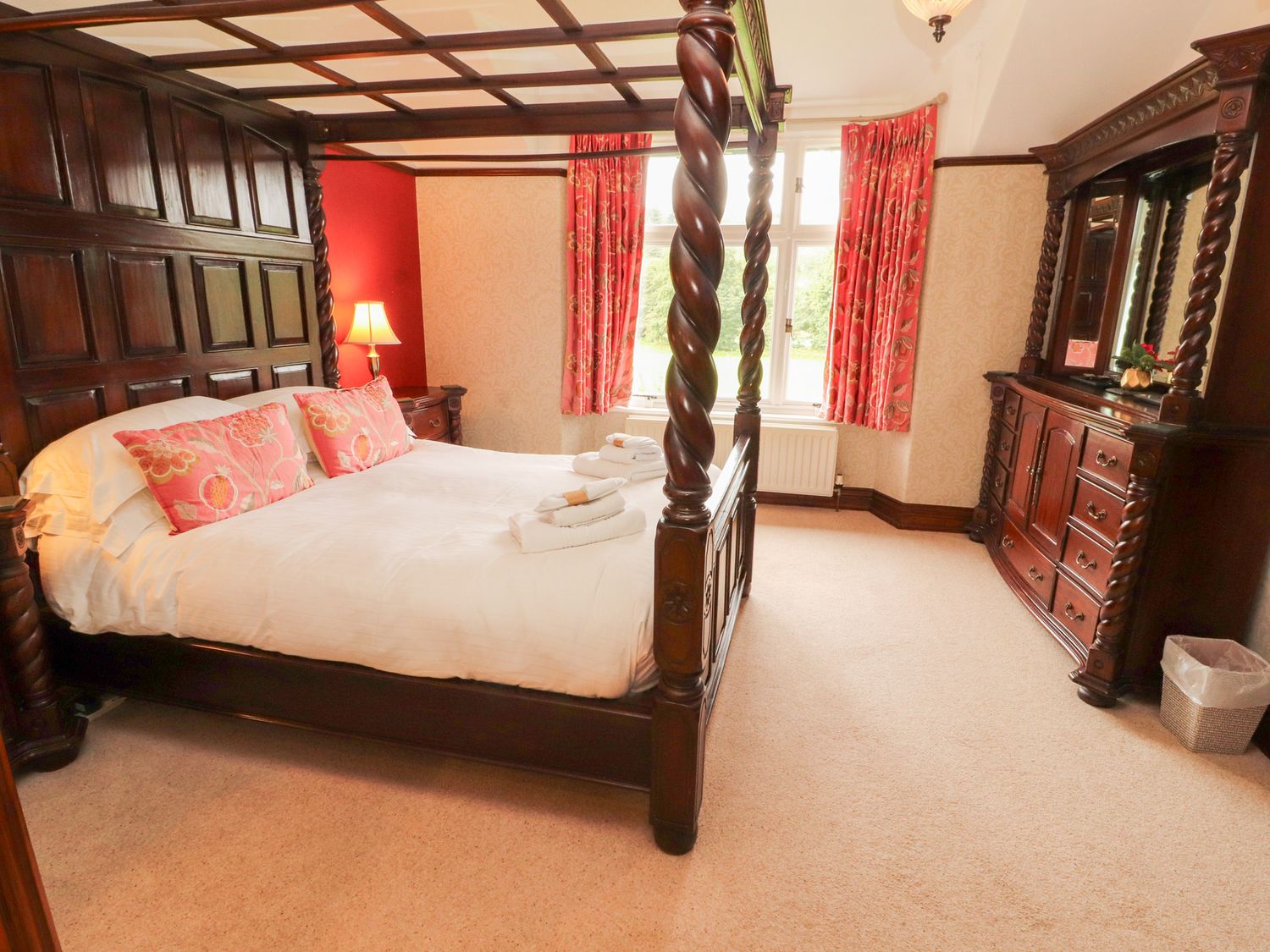 "Please note: This property can only facilitate a Friday Changeover. Five bedrooms : 2 x four-poster, king-size with en-suite, 1 x super-king-size (zip/link can be twin on request) with en-suite, 1 x double, 1 x twin.Beautiful entrance hall. Drawing room. Second reception room (snug). Dining room. Fitted kitchen.