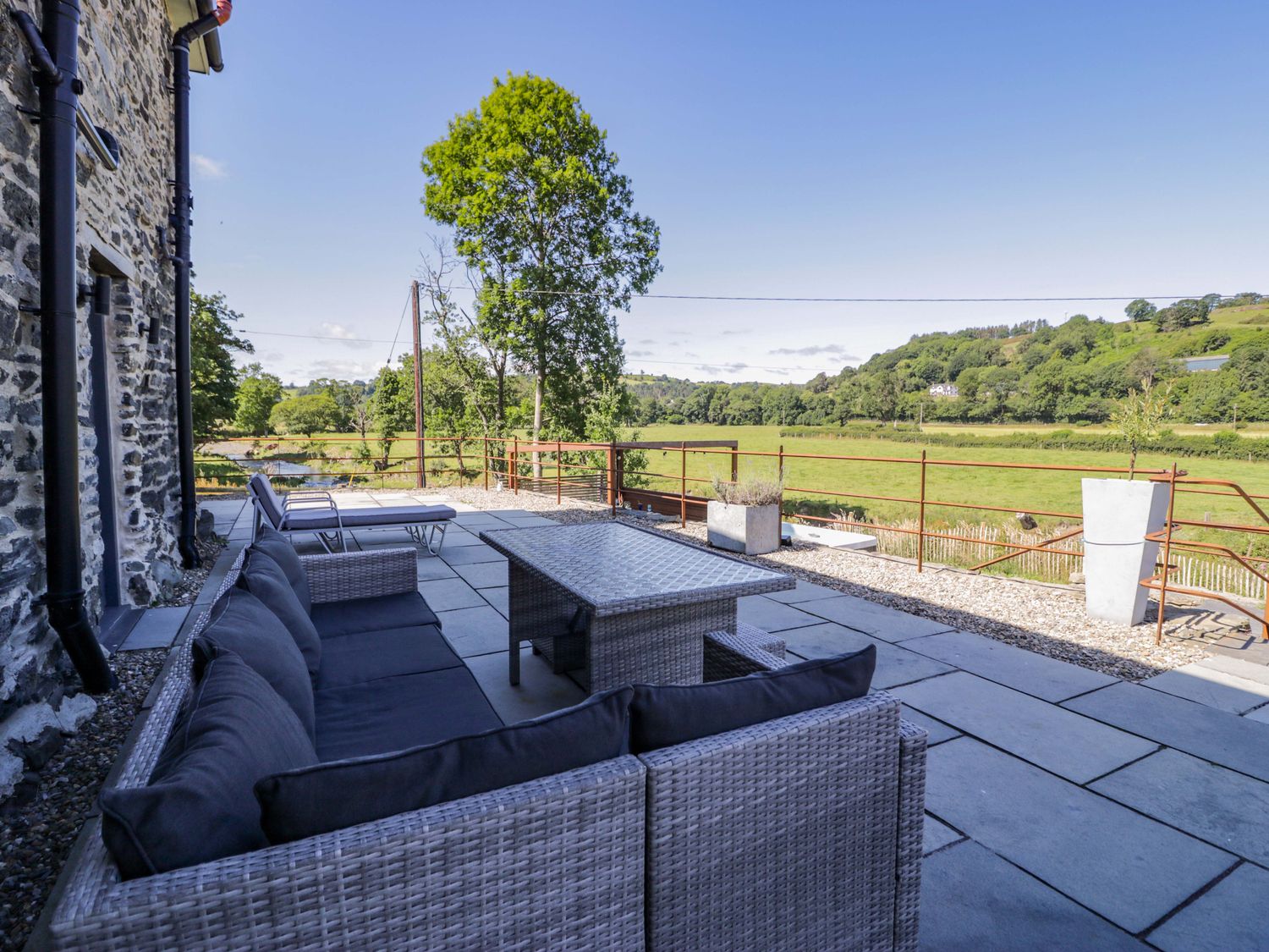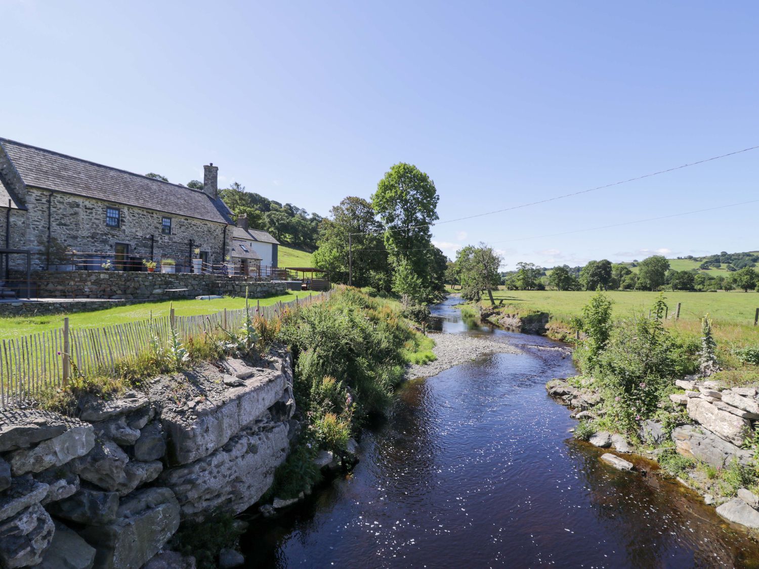 "Over three floors, this five-bedroom property has a ground-floor super-king-size zip/link, a king-size and a double with en-suite shower rooms, and a second-floor double and a second-floor twin, along with a bathroom, an open-plan living space with kitchen, dining area and sitting area with a woodburning stove, a utility and a first-floor sitting room with an electric fire. Appliances include an electric Range-style cooker with oven and hob, microwave, fridge/freezer, washing machine, tumble dryer, dishwasher, wine cooler, and hairdryer, and for entertainment there is a Smart TV and WiFi. Outside, there is ample off-road parking and a garden with a patio, furniture, pergola and hot tub. Fuel, power, a starter pack for stove, bed linen and towels are all included in the rent. Sorry, this is a pet-free, smoke-free property. You can find a shop and pub 2.3 within miles. Please note that there is a river running alongside the garden, an open-tread staircase, and the second-floor double bedroom has a low bed. Make memories at Plas Glan Yr Afon."