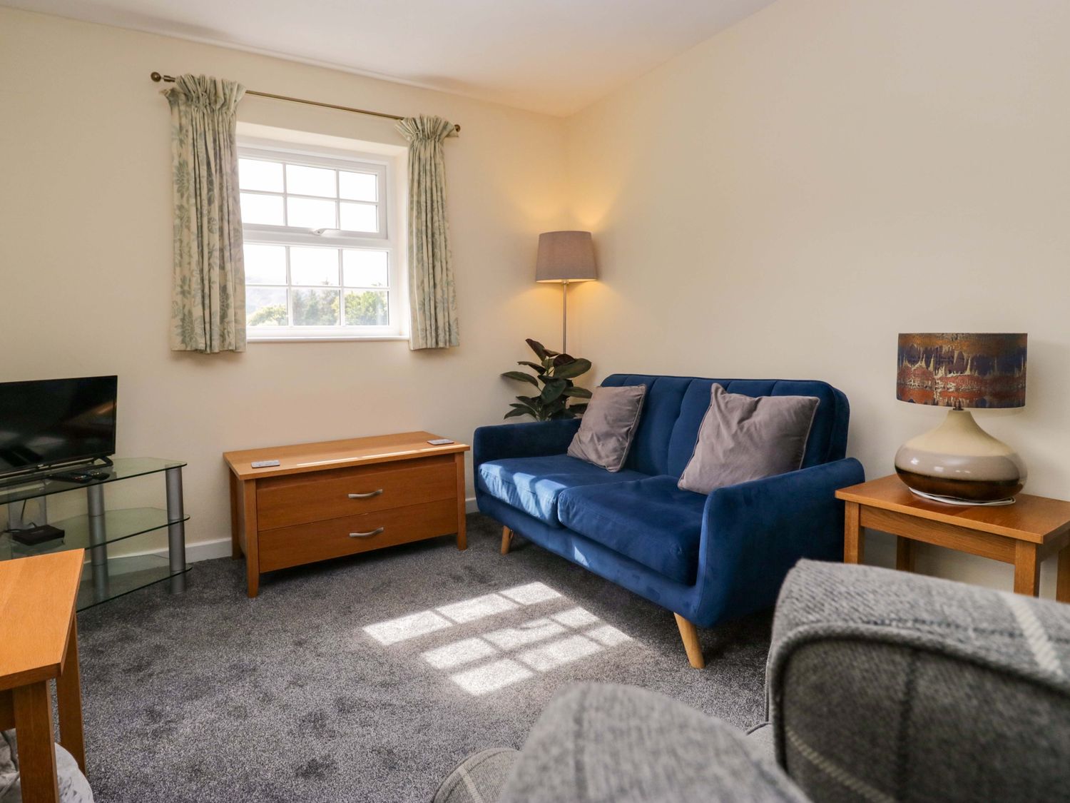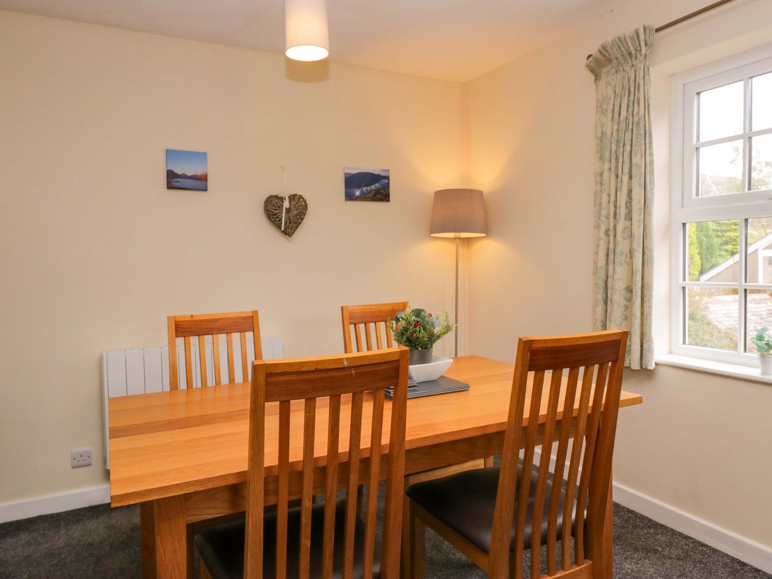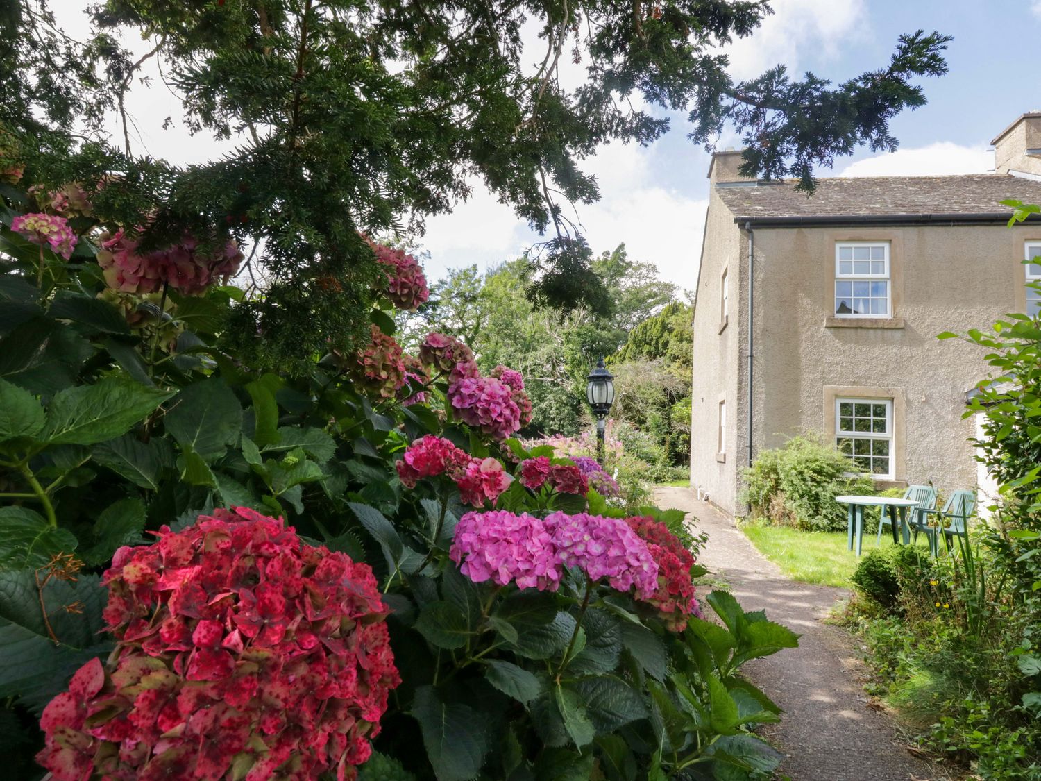 "Buckbarrow, a first-floor apartment, consists of a kitchen/diner with electric oven, electric hob, microwave, fridge (with ice box), dishwasher, kettle, toaster, and dining table for four, and a sitting room with Smart TV, sofa, and armchairs. The bedrooms consist of a double and twin. There is a shower room with walk-in shower, basin, and heated towel rail, and WC. WiFi, fuel, power, bed linen, and towels are included in the rent. Outside, there is an enclosed rear garden with patio, lawn, and furniture, and off-road parking for two cars. One well-behaved pet is welcome. Sorry, no smoking. Whatever the weather, a wonderful stay awaits at Buckbarrow. Note: Steps leading up to the property, please take care."