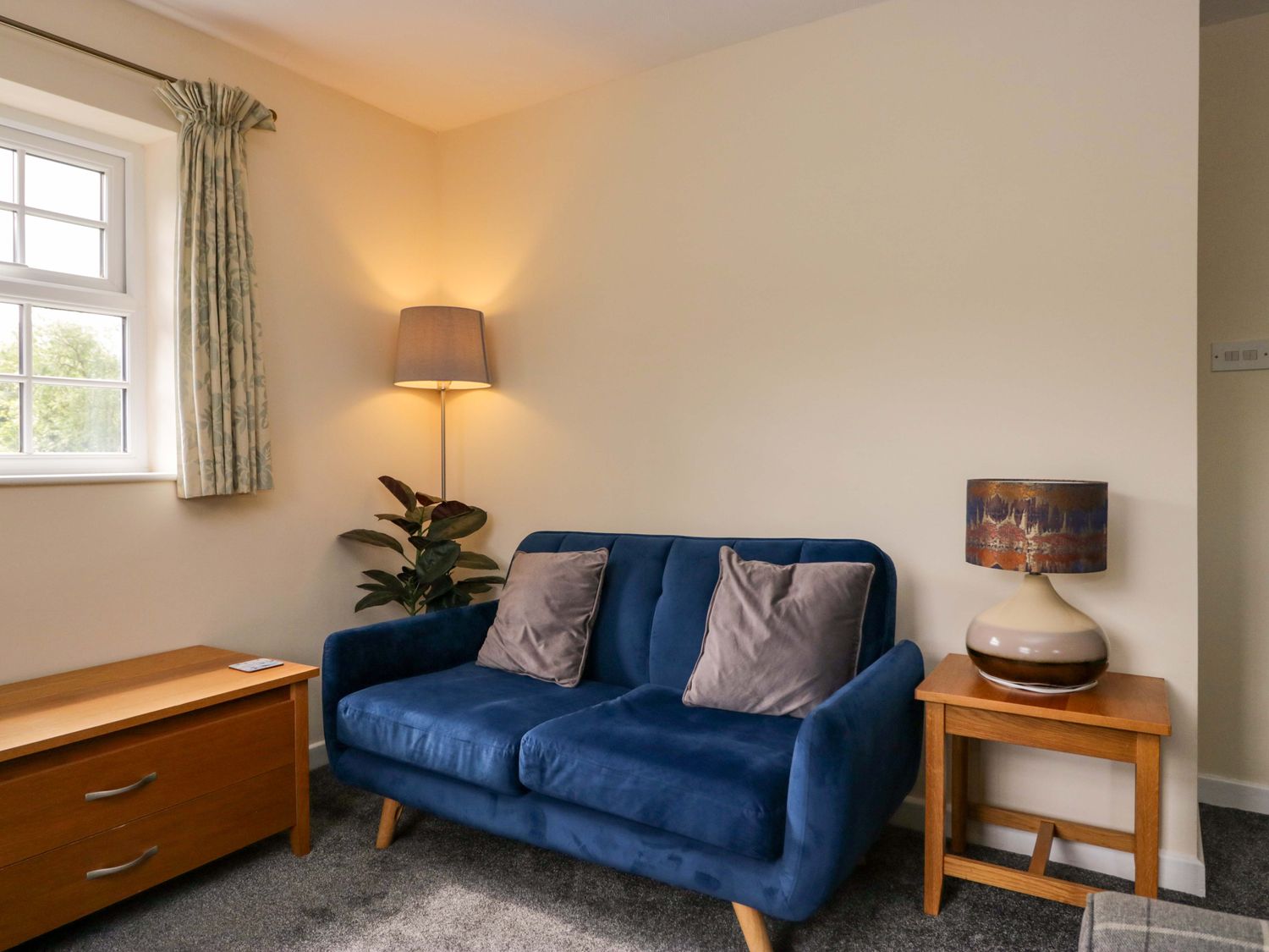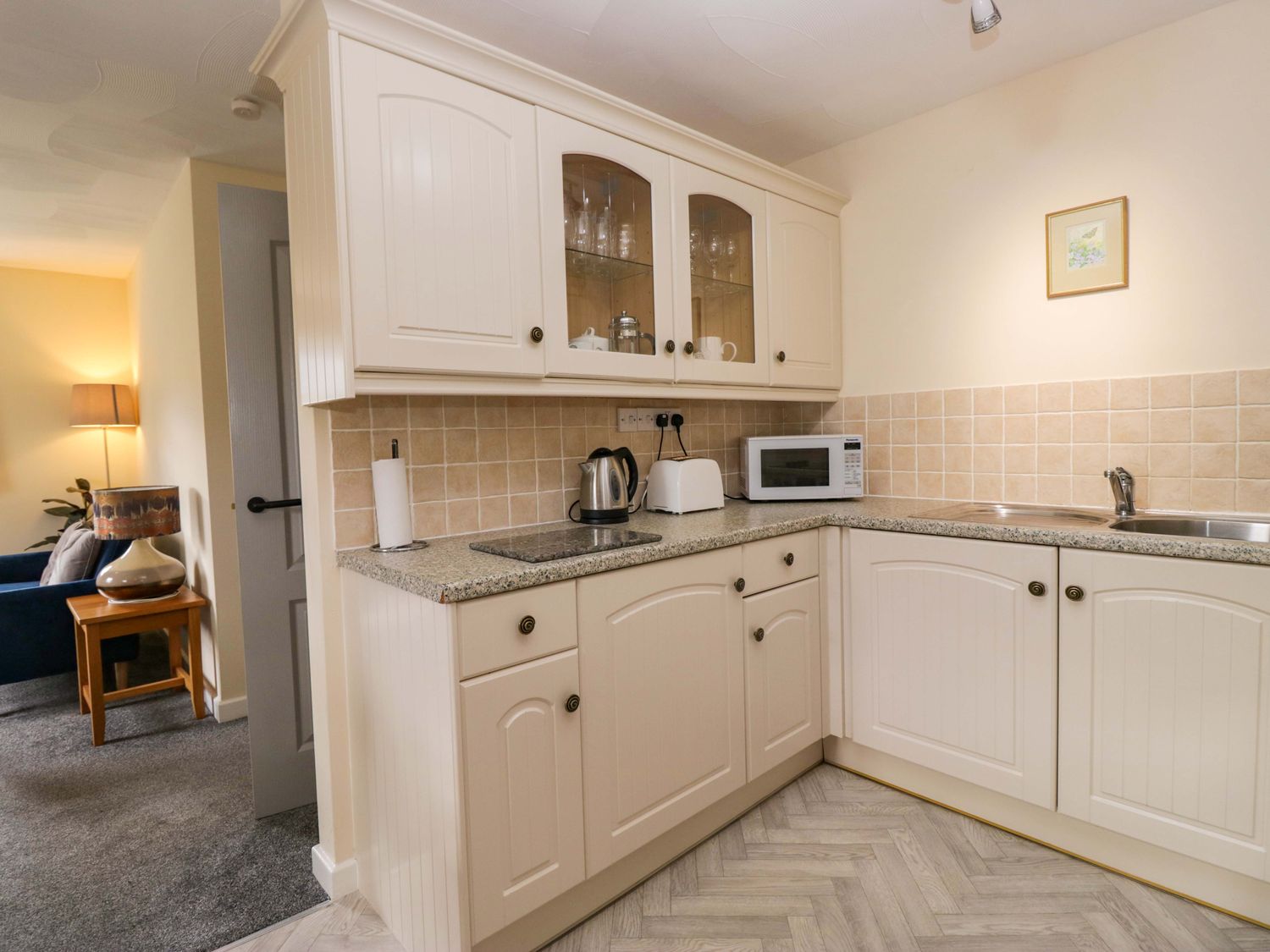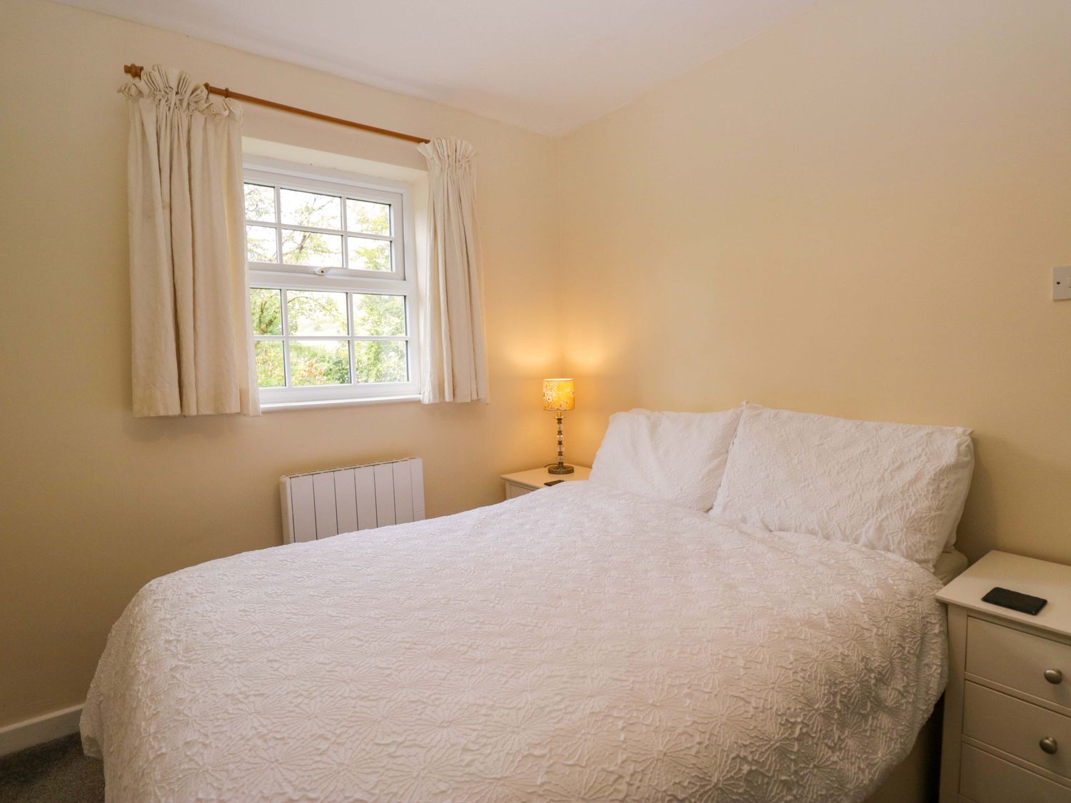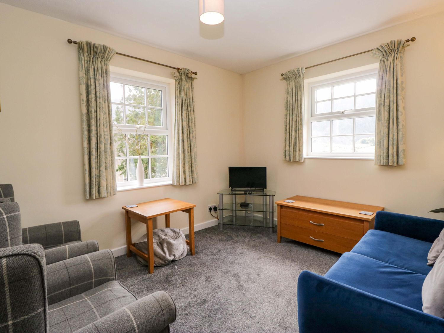 "Buckbarrow, a first-floor apartment, consists of a kitchen/diner with electric oven, electric hob, microwave, fridge (with ice box), dishwasher, kettle, toaster, and dining table for four, and a sitting room with Smart TV, sofa, and armchairs. The bedrooms consist of a double and twin. There is a shower room with walk-in shower, basin, and heated towel rail, and WC. WiFi, fuel, power, bed linen, and towels are included in the rent. Outside, there is an enclosed rear garden with patio, lawn, and furniture, and off-road parking for two cars. One well-behaved pet is welcome. Sorry, no smoking. Whatever the weather, a wonderful stay awaits at Buckbarrow. Note: Steps leading up to the property, please take care."