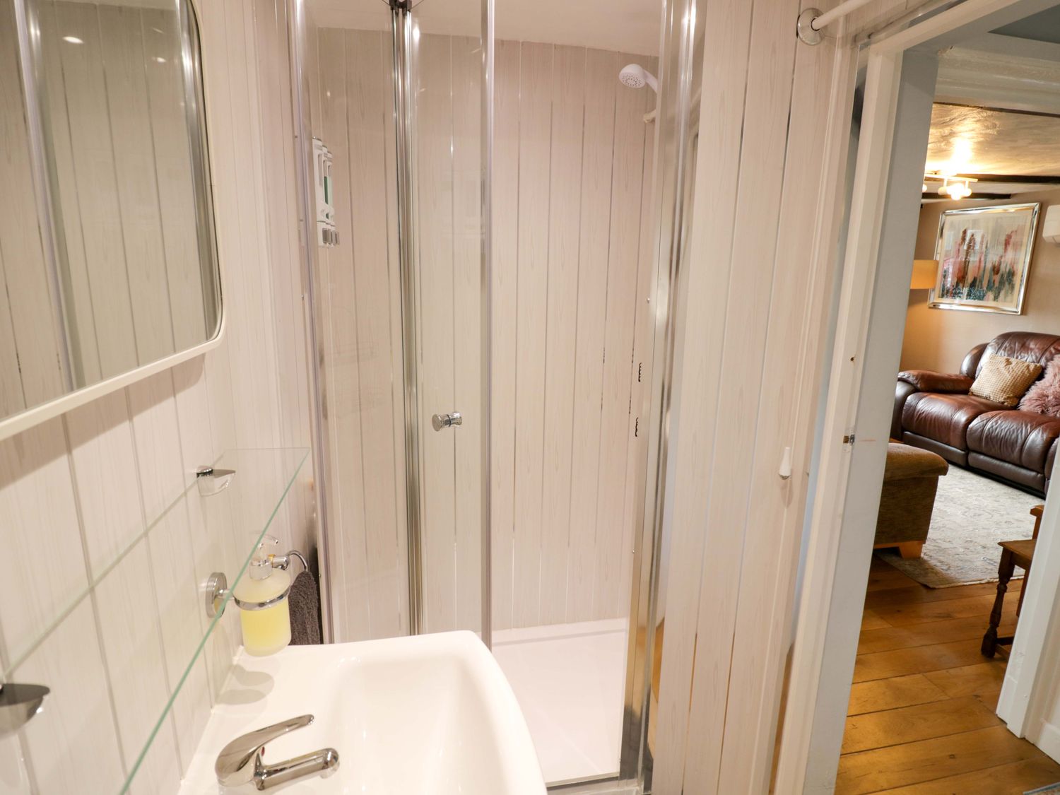 "Cosy Cottage in Harvington consists of an open-plan living space with a kitchen housing an electric oven and hob, microwave, air fryer, fridge, washing machine, tumble dryer, coffee maker, kettle and toaster, a dining area, and a sitting area with Smart TV, radio, a selection of books and WiFi. The bedrooms all feature air conditioning and comprise a king-size, a double with en-suite walk-in shower, basin and WC, a twin, and a single with trundle, along with a ground-floor shower room with walk-in shower, basin and WC, and a bathroom with bath, shower over, basin and WC. Outside, there is off-road parking for 2 cars. Within 0.2 miles, you will find a shop, within 0.1 mile, a pub, within 0.5 miles, a river, and within 0.8 miles, a lake. WiFi, fuel, power, bed linen and towels are all included in the price. Two well-behaved dogs are welcome, however smoking is not permitted. Enjoy a wonderful getaway at Cosy Cottage in Harvington. Note: When the trundle bed is pulled out, it fills the bedroom. Note: The stairs are steep and have a low ceiling in part, please take care. Note: There is a good housekeeping bond of 450GBP"