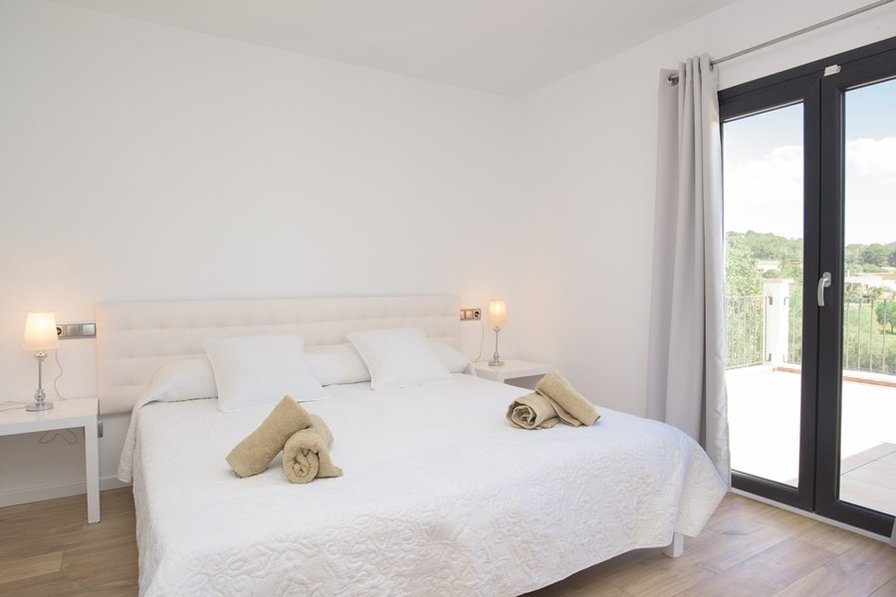 Country house completely renovated with a nice style, located a few minutes' drive to the small village of Calonge and ofCala Dor, the nice family village plenty of shops and restaurants and its nice Marina. The house is around 10 km from the nice fisherman village Porto Colom. From the entrance there is direct access to an open bright space with the living room, with a dining living area, the modern kitchen is completely equipped with Ceramic glass cooktop, Microwave, Toaster, Dishwasher, electric oven, Fridge/freezer, Kettle, Electric coffee machine. From the living area there is access to the three bedrooms each with open en suite shower room. One has a double bed and the other two bedrooms have two twin beds together. Each bedroom has an en suite shower room. The villa also has a washing machine and an iron board. The pool area is downstairs, in the pool area has a brick built barbecue and a table with chairs to enjoy family or friends meals. There are also sun beds on the pool area The pool is kidney shaped and has a size is 9 x 4 meters. This house is ideal for families and groups o friends. Prices do not include the eco tax