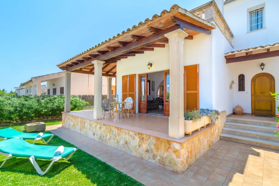 The outdoor areas offer welcoming corners to have a maximum relax during the stay. On a 70m2-sized terrace you can sunbathe or read your favorite book on the sunbeds, freshen up in the outdoor shower or prepare a BBQ for your family or friends. Also, there are two porches with lawned areas. There is a parking space for one car. The interior is light and spacious and contains a 35m2-sized living-dining room with a fire-place, a fully-equipped kitchen with all necessary appliances, 3 bedrooms and 2 bathrooms. All three bedrooms offer fans and wardrobes. The first one has a double bed and an ensuite-bathroom with a hair-dryer. The second bedroom offers also a double bed. The third one has 2 single beds. A cot and a high chair can be provided upon request. There is another bathroom with a store room where you find a washing machine, iron and an ironing board. Porto Colom is a nice seaside town with a traditional fishermen atmosphere. Nearby there are many coves that you can discover! In this area you can also practice golf, cycling or rent a canoe. In the centre of town you will find many services and variety of restaurants and bars. If you look for more leisure offer, you could get to Cala Millor (15 km), where there are safaris for the kids. In addition, just in front of the apartment there is the boat “Starfish” that you can take to explore the island. NOTE: Please, note, that we do not accept youth groups under 25 years for this apartment. We need to know the ages of all travellers to confirm the reservation. We might ask for copies of all passports, later on. NOTE: Pets are not welcome Events celebration is not permitted Please contact the advertiser for possible additional fees DISTANCES: Beach: 1 km - Cala Marçal, Portocolom Airport: 57.8 km - Son Sant Joan, Palma Golf: 4.8 km - Vall d'Or Golf, S'Horta Town center: 0.001 km - Portocolom Train station: 24 km - Manacor Bus station: 0.550 km - C/ Vapor de Santueri, Portocolom Ferry: 63.2 km - Port d'Alcúdia Hospital: 25 km - Hospital de Manacor Tourist license: The Ecotasa (tourist tax) must be paid cash on site when checking in. The amount varies between 0.55€/night and guest during the low season and 2.2€/night and guest during the high season. The tax is reduced by half from the 9th day of your stay. All guests have to pay the Ecotasa, except people under 16 years.