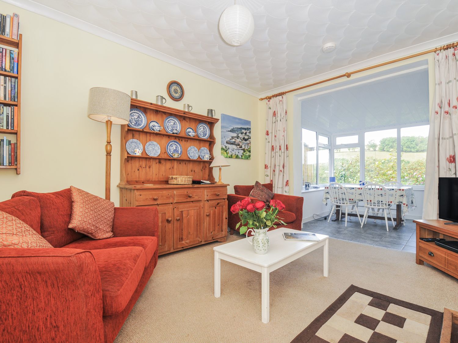 "Jordan Cottage, a single-storey cottage consists of a kitchen with electric oven and hob, microwave, fridge/freezer, dishwasher, kettle, and toaster, and a living/dining room with Smart TV and DVD player. The bedroom is a double. There is a bathroom with bath, shower over, basin, and WC, plus a washing machine. Outside, there is large, private garden with a non-enclosed lawn with furniture, and off-road parking with allocated space for one car. One well-behaved pet welcome. Sorry, no smoking. Shop 0.8 miles, pub 0.2 miles, river 0.1 miles, beach 1.2 miles. Enjoy a splendid retreat at Jordan Cottage. Note: There are wooden steps down to the property. Note: There's a step up to the bedroom and the sitting room from the kitchen"