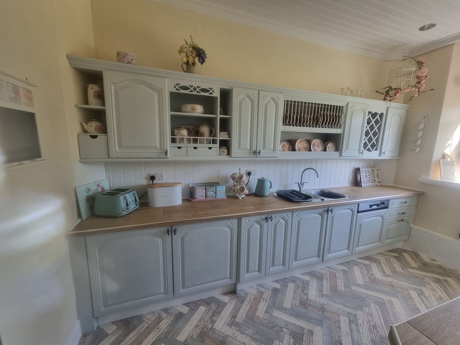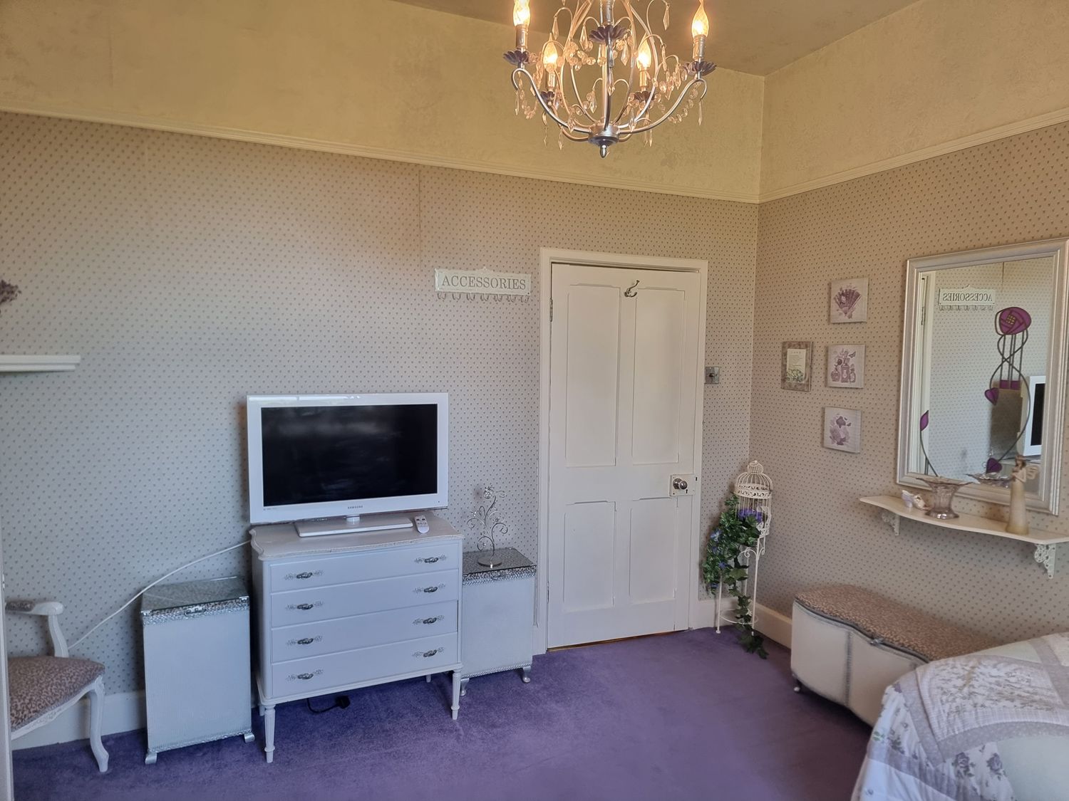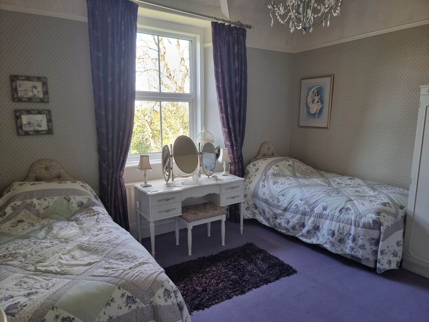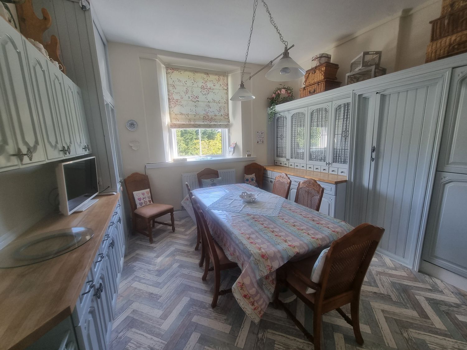 "Ashleigh House consists of a kitchen with oven, hob, microwave, fridge, dishwasher, kettle and toaster, a dining room, sitting room, and second-floor study. There are five bedrooms: one super-king-size with en-suite walk-in shower, basin and WC; three doubles with TV; and one twin with TV. The property also includes a bathroom with bath, basin and WC, and a shower room with walk-in shower, basin and WC. Outside, there is a wraparound lawn with furniture and off-road parking. WIFI, fuel, power, bed linen and towels are all included in the price. Travel cot available. Sorry, no smoking. Ashleigh House is a lovely base for exploring Anglesey. This property has a 550 GBP good house keeping bond."