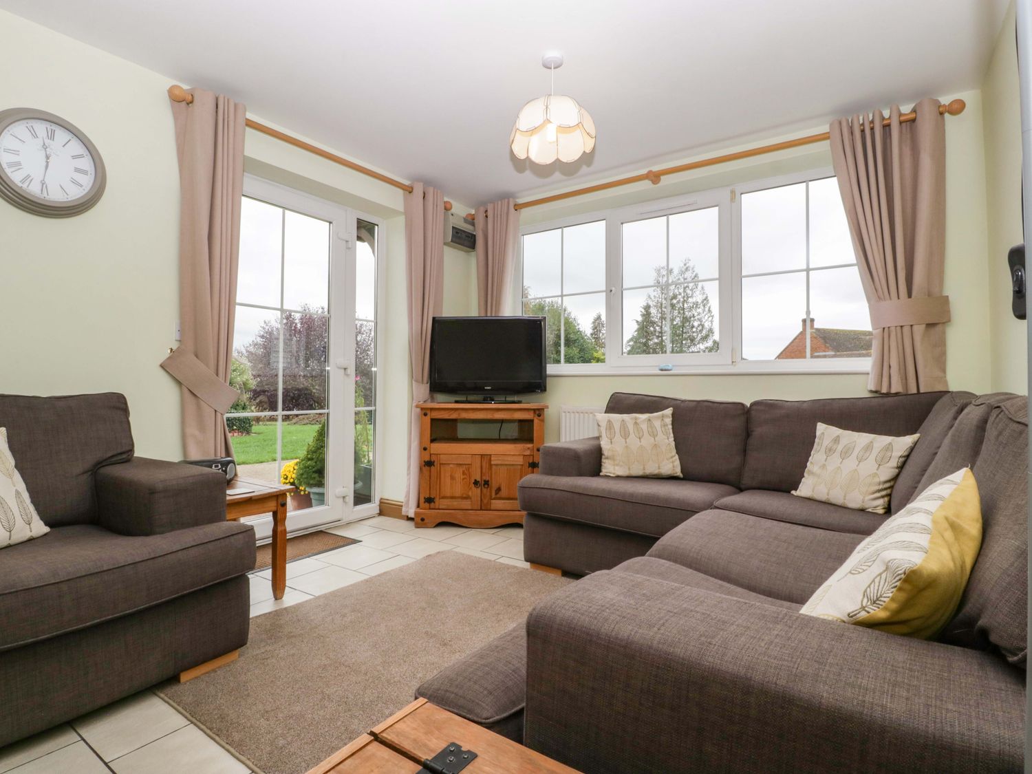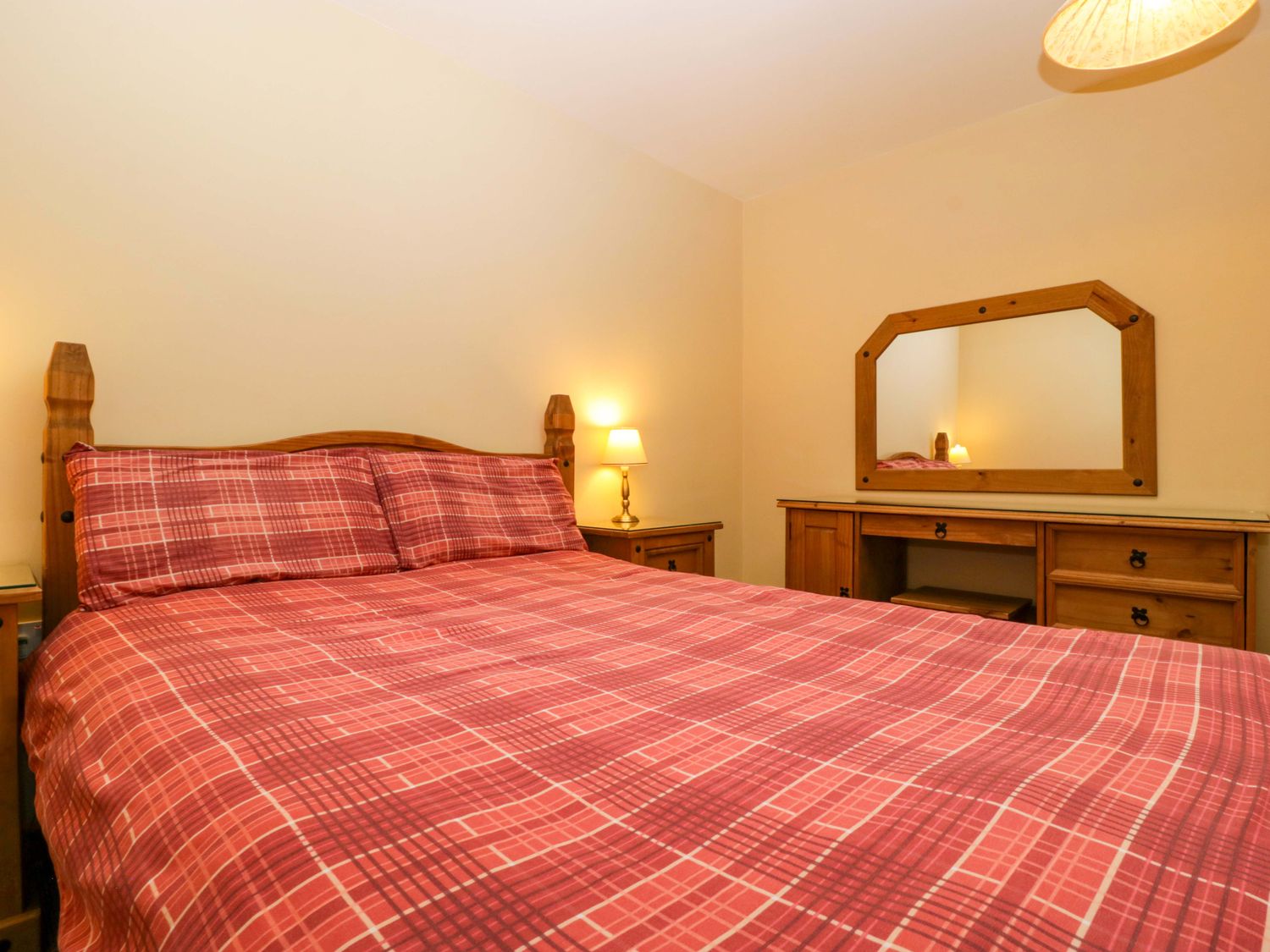 "Single-storey. Two bedrooms: 1 x double, 1 x twin. Shower room with a walk-in shower with a small step, basin and WC. Kitchen/diner. Sitting room with double sofa bed"