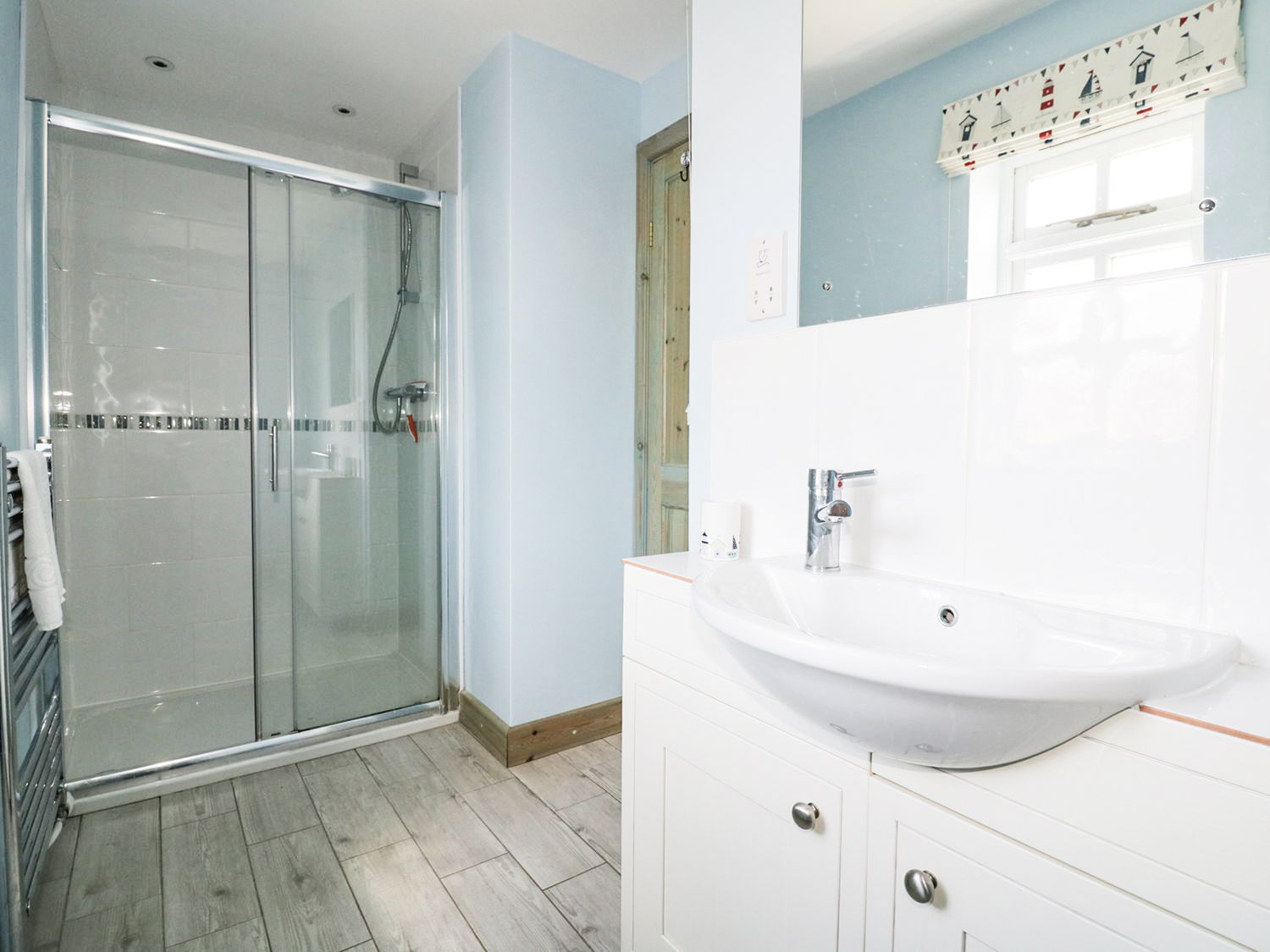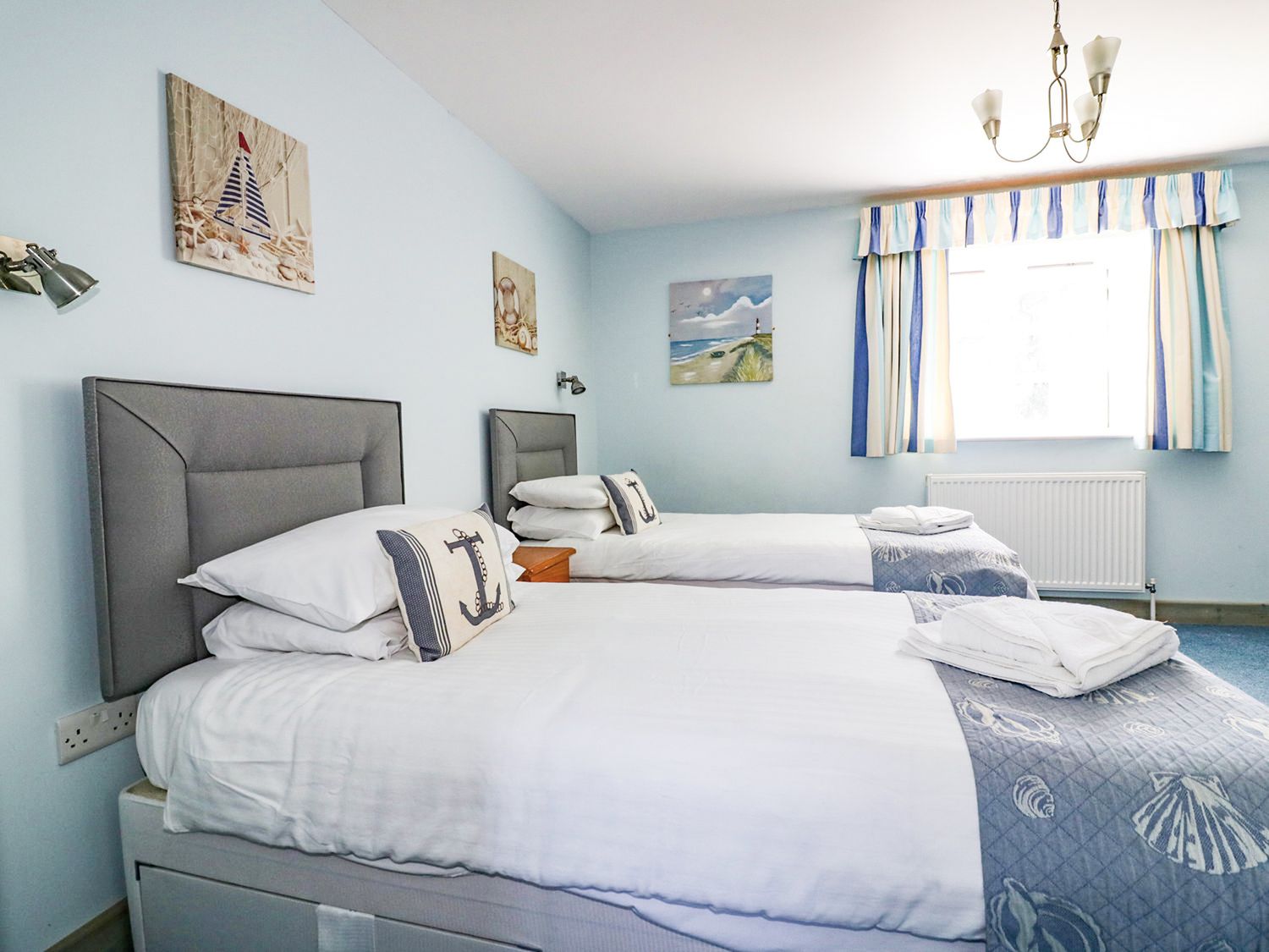 "Three bedrooms: 1 x double with en-suite walk-in shower, basin and WC, 1 x ground-floor double with en-suite walk-in shower, basin and WC. 1 x twin with en-suite bath, shower over, basin and WC. Open-plan living area with kitchen, dining area and sitting area with electric fire"