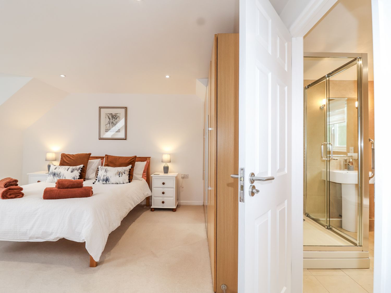 "Please note: this property can only accommodate bookings starting on a Friday with a minimum stay requirement of 3 nights. Please note: over the Christmas periods only weekly bookings accepted for the weeks starting 22nd December & 29th December 2025. One king-sized bedroom with en-suite walk-in shower, basin, heated towel rail, and WC. Cloakroom with basin and WC. Open-plan living space with dining area and sitting area with electric fire. Front garden with patio and furniture, rear garden with patio and furniture"