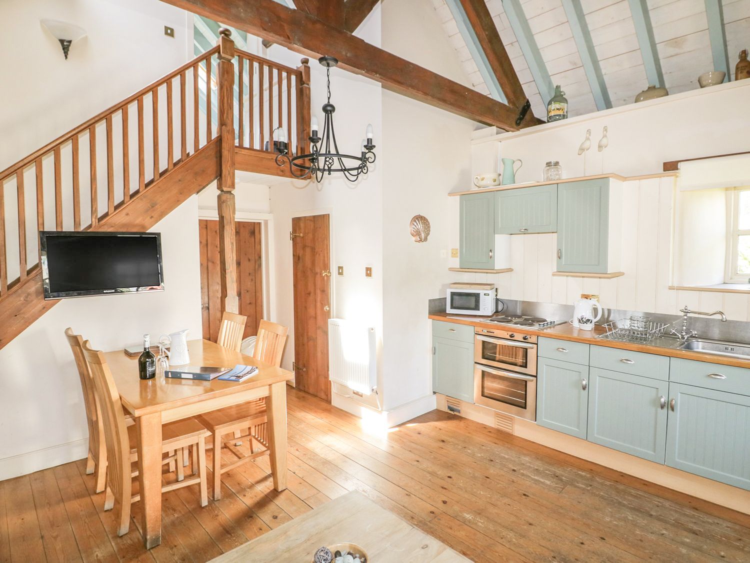 "The living areas in the property consist of an open-plan living area with a kitchen with Electric oven and hob, microwave, fridge/freezer, dining seating for four people, a sitting room with TV with Freeview, DVD, WiFi, selection of games and DVDs, and a sunroom. The bedrooms consist of a ground-floor double and a twin, along with a ground-floor shower room. Outside, there is a shared courtyard with furniture as well as off-road parking for two cars. Within 1 mile, you will find a shop and a pub, and please note that this is a non-smoking property. WiFi, fuel, power, bed linen and towels are all included in the price. Two well-behaved dogs welcome. Note: Sloping ceiling in twin room. Note: This property has a galleried landing, children to be supervised at all times. Note: Check-in from 5pm, check-out by 10am. Escape to Cornwall with a stay at Dovecote."