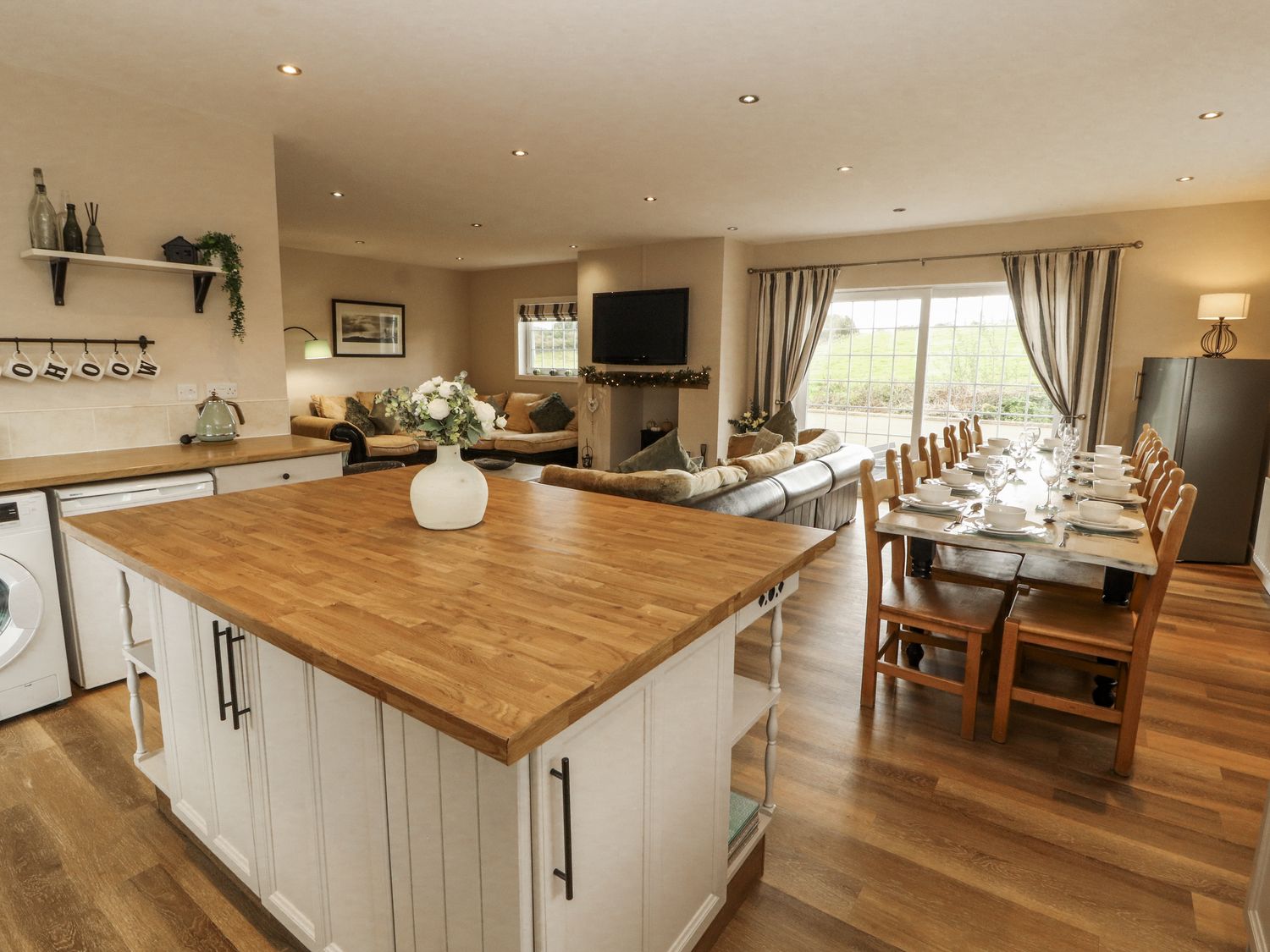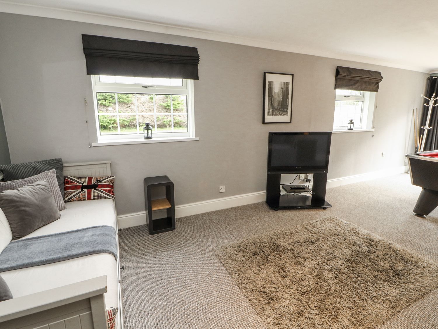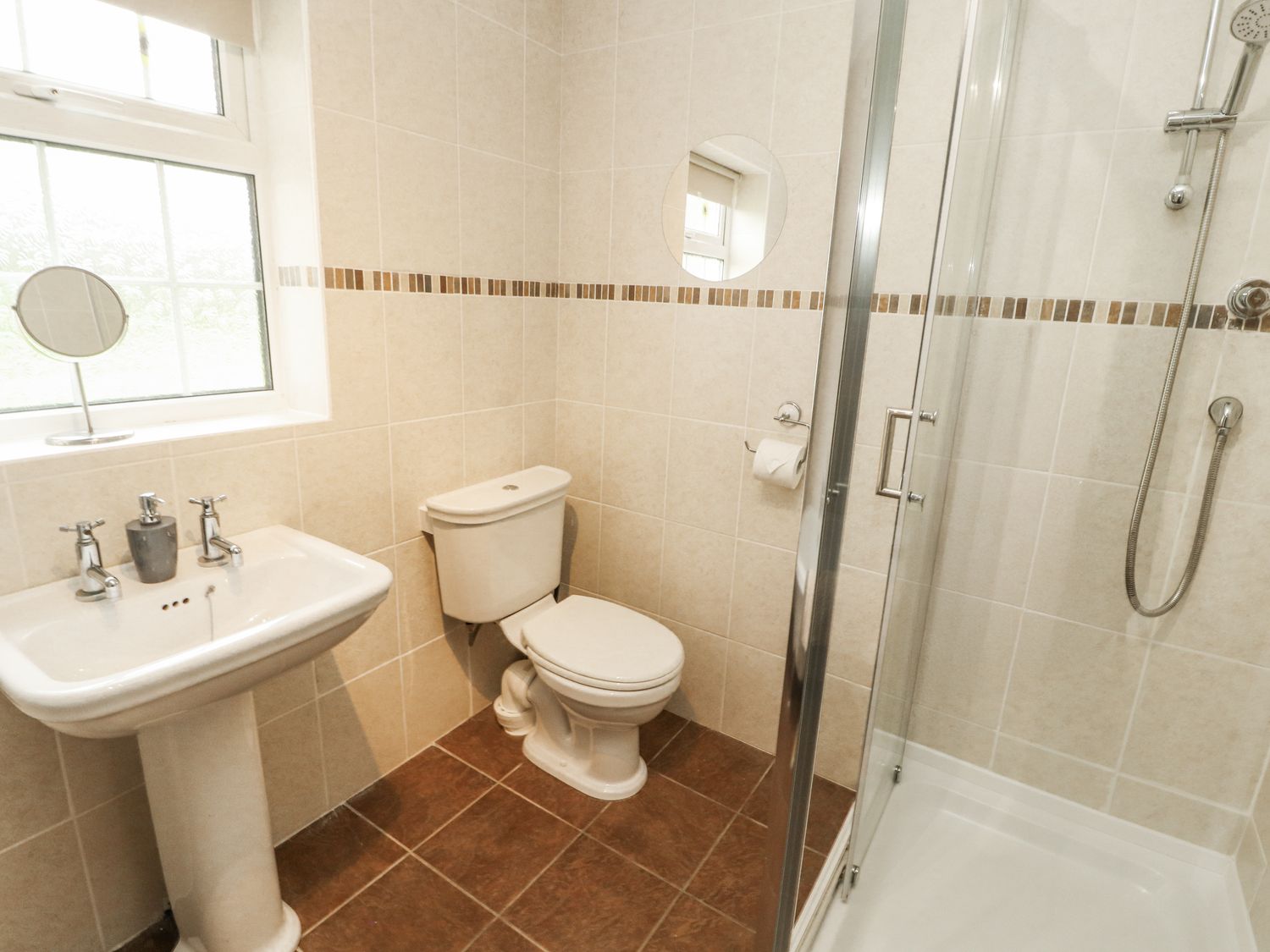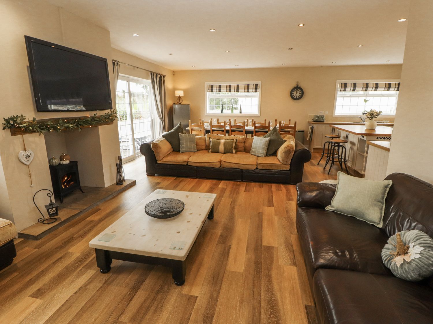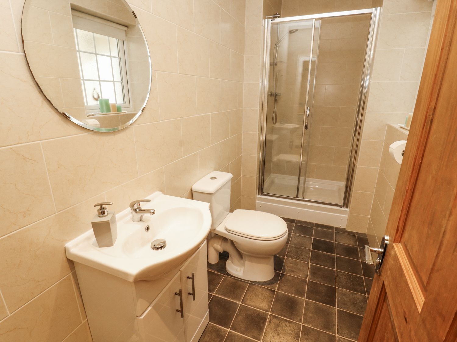 "Six bedrooms: Upper ground floor: 2 x twin, 1 x king-size double, 1 x double with en-suite (shower, basin & WC). Lower ground floor: 2 x twin, TV with Freeview & pool table. Upper ground floor: 2 x shower rooms with shower, basin & WC. Lower ground floor: Bathroom with roll-top bath, separate shower cubicle, basin & WC. Upper ground floor: Open plan living area with sitting area with electric fire (woodburner effect), fitted kitchen area & dining area. "