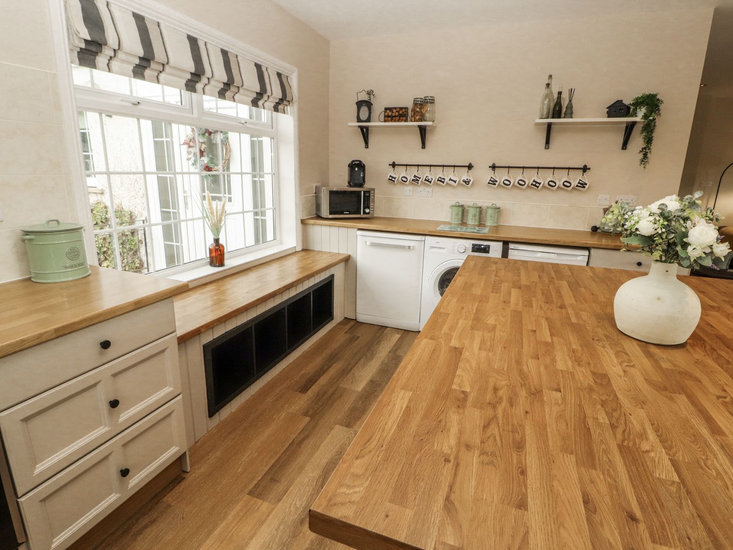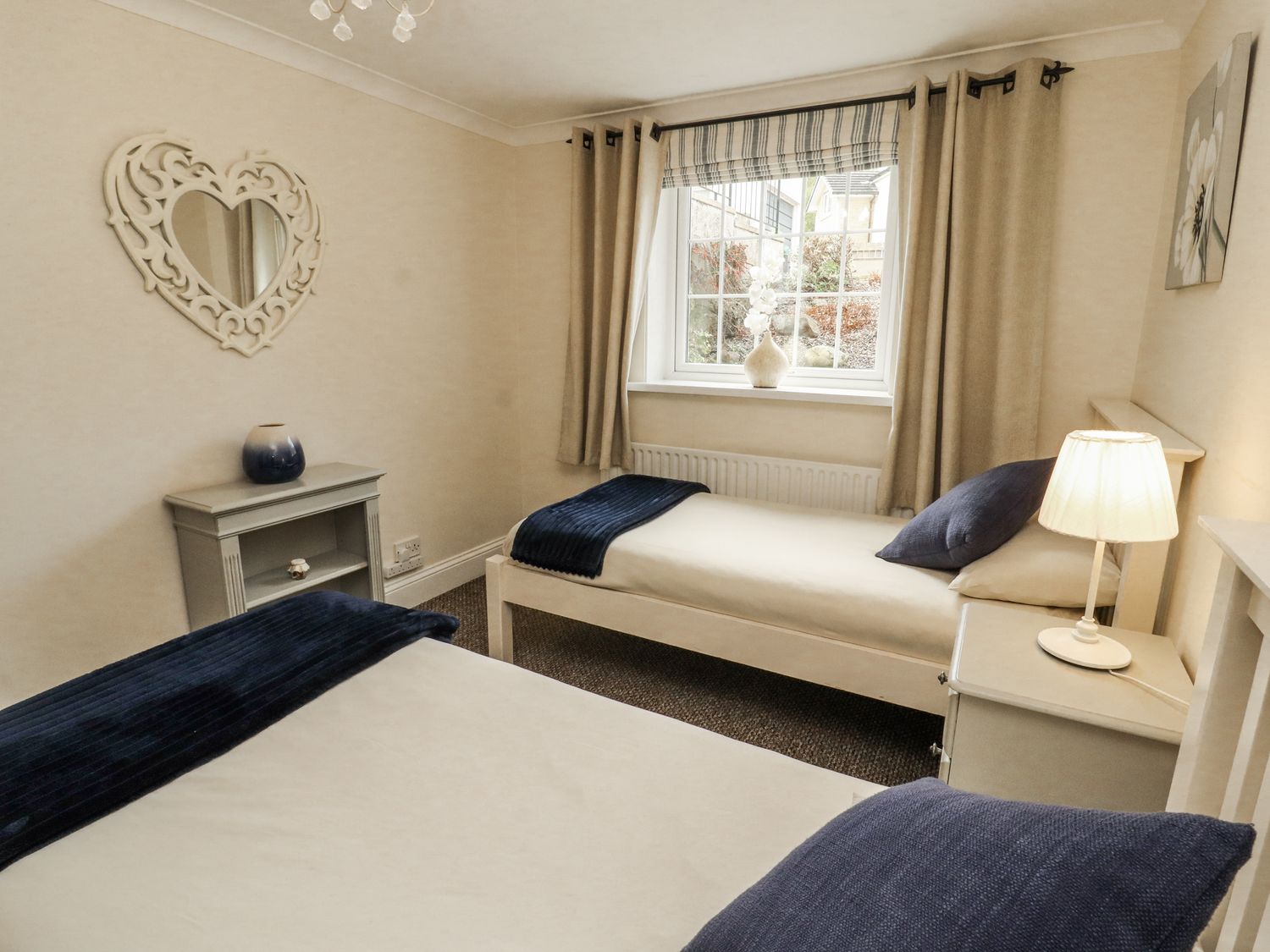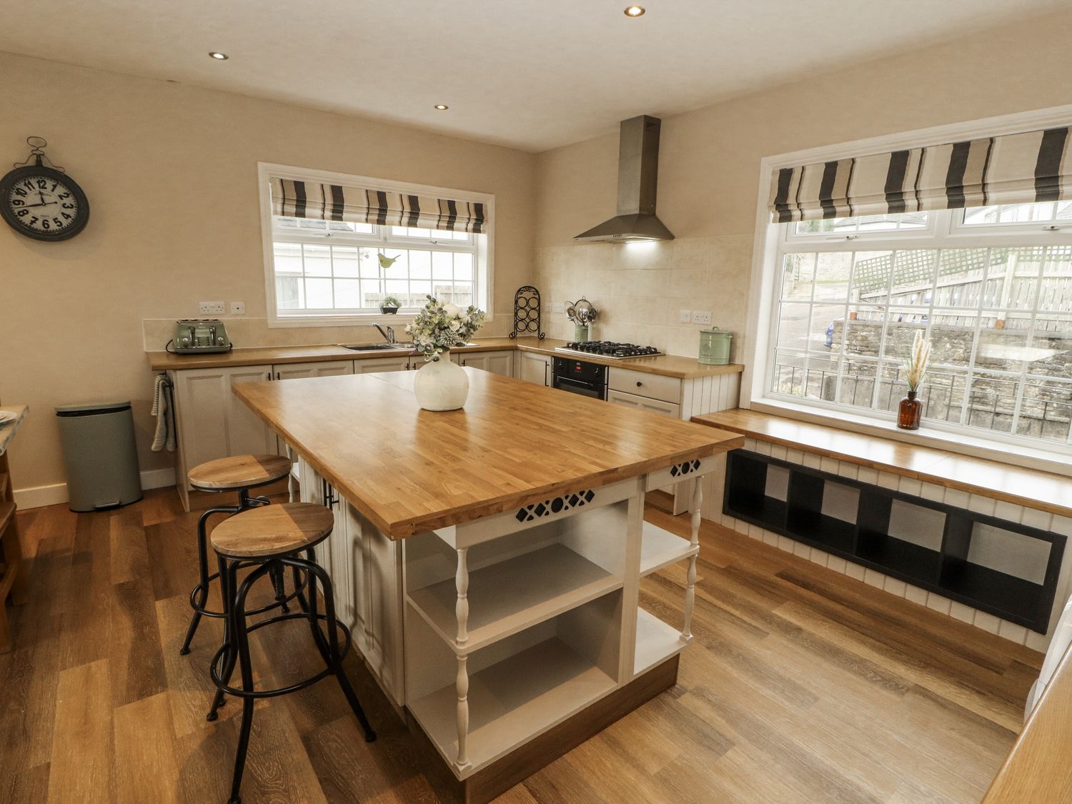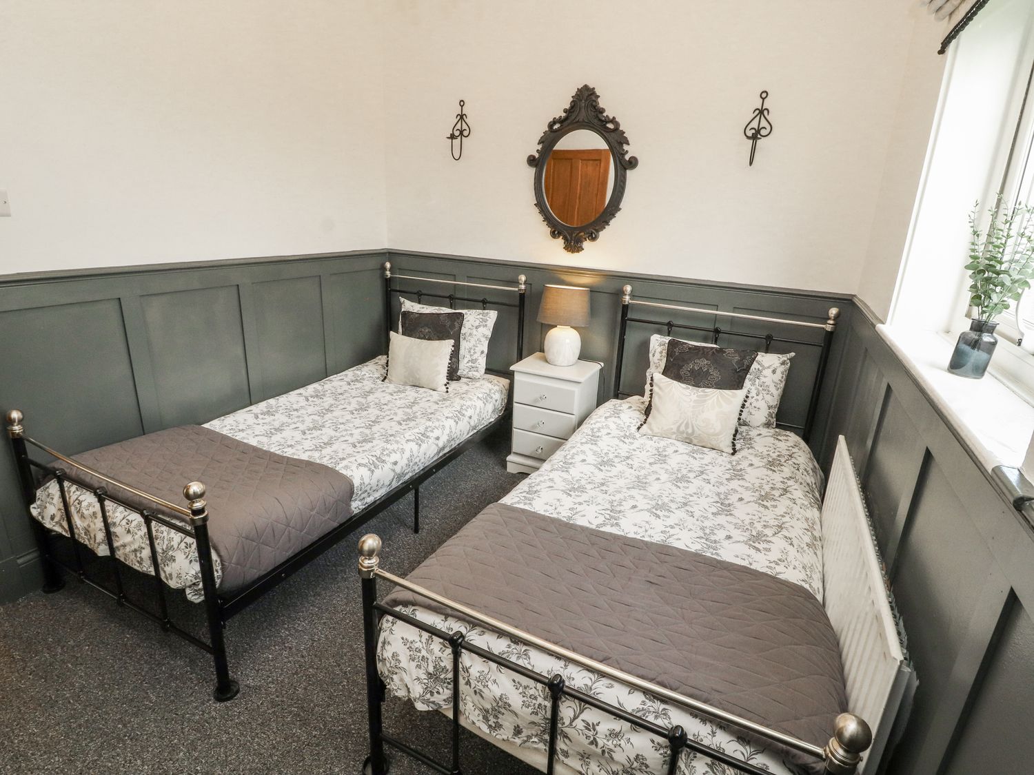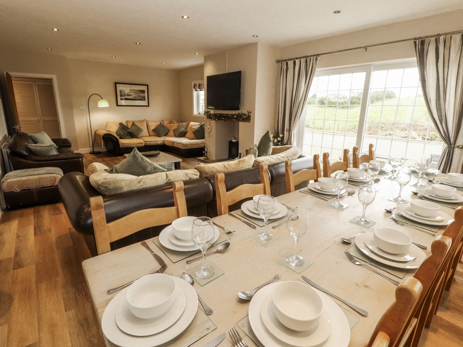 "Six bedrooms: Upper ground floor: 2 x twin, 1 x king-size double, 1 x double with en-suite (shower, basin & WC). Lower ground floor: 2 x twin, TV with Freeview & pool table. Upper ground floor: 2 x shower rooms with shower, basin & WC. Lower ground floor: Bathroom with roll-top bath, separate shower cubicle, basin & WC. Upper ground floor: Open plan living area with sitting area with electric fire (woodburner effect), fitted kitchen area & dining area. "