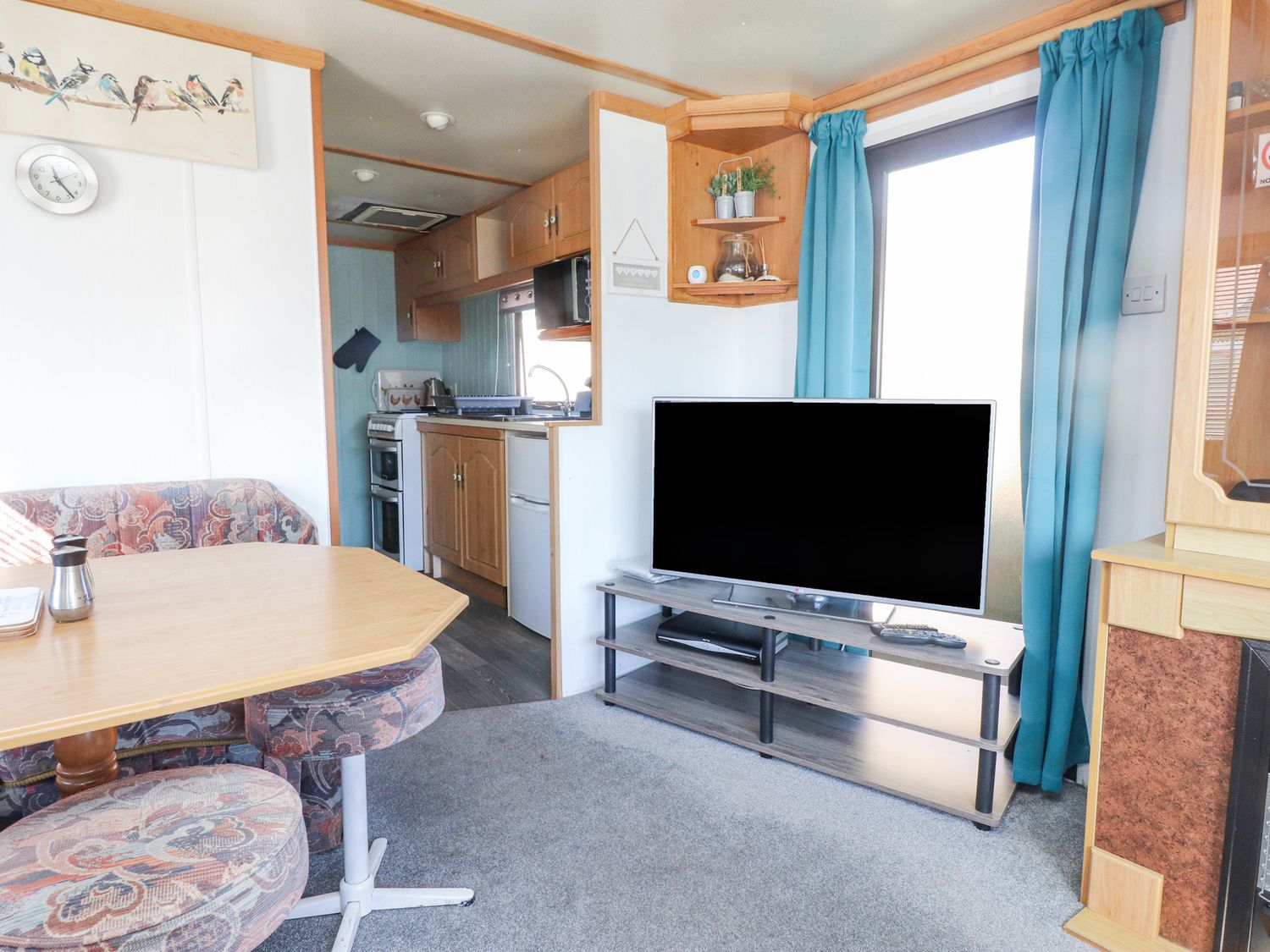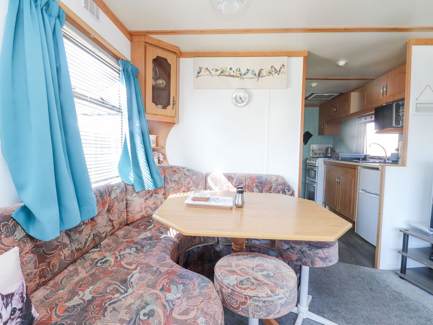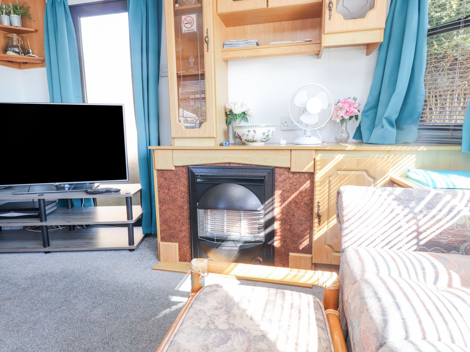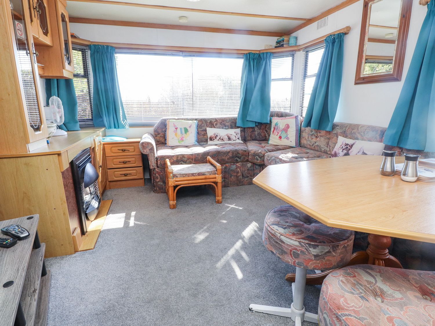 "Tanyfron Holiday Caravan is a single-storey caravan featuring features three bedroomsÔÇöa double, a 2'6"" twin, and a singleÔÇöoffering accommodation for up to three adults and two toddlers. The bathroom includes a bath with a shower over, and there is a cloakroom with a basin and WC. The open-plan living space provides a kitchen, dining area, and sitting area featuring a gas fire for extra warmth. Amenities include electric panel heaters, a gas oven and hob, a fridge with ice box, microwave, and a Smart TV with Netflix. WiFi and a selection of books are also available for entertainment. A shared washing machine and tumble dryer are accessible for guests (charges apply). Outside, the shared enclosed courtyard with seating offers a pleasant space to enjoy the fresh air. Off-road parking is available for one car. Please note the property is accessed via steps. Sorry, this is a pet-free, smoke-free property. Tanyfron Holiday Caravan is an excellent choice for a peaceful getaway."