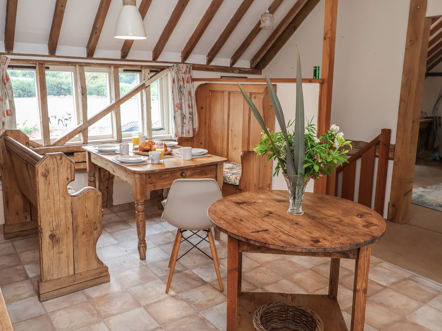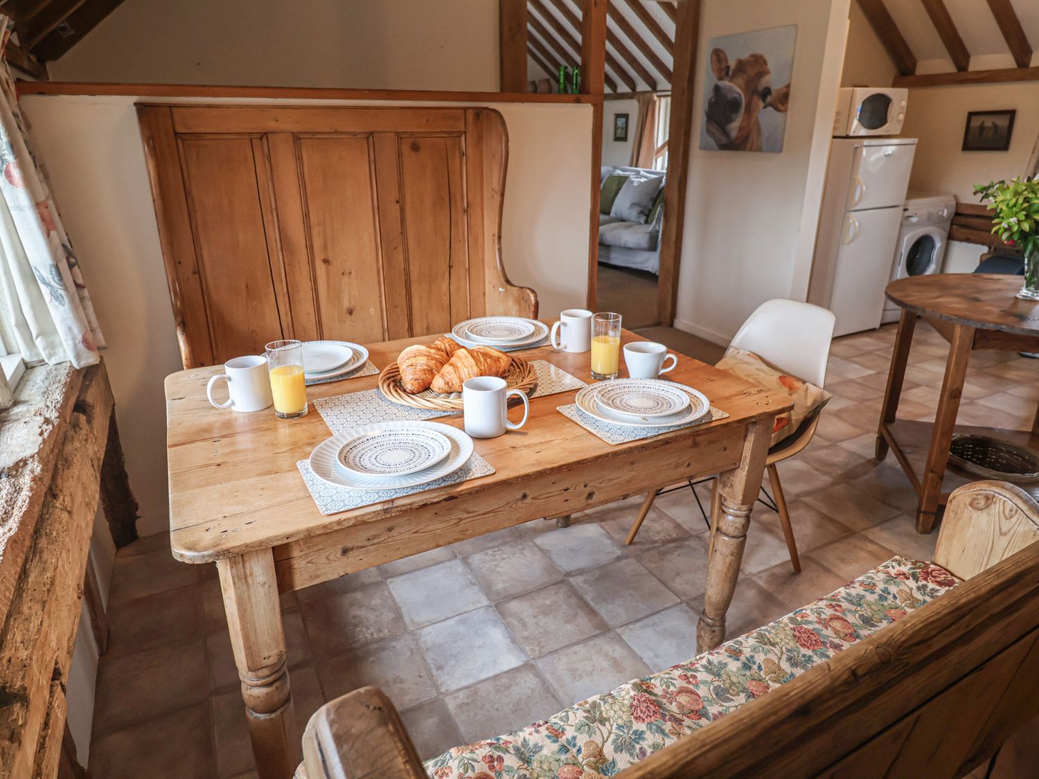 "The Cow Shed, a reverse-level charming holiday home, consists of a kitchen with oven, hob, fridge/freezer, microwave, and washing machine, a dining room with dining seating, and a sitting room with TV. The bedrooms consist of a king-size and twin. There is a bathroom with bath, shower over, and basin and WC. WiFi, fuel, power, bed linen, and towels are included in the rent. Outside, there is off-road parking. Two well-behaved pets are welcome. Sorry, no smoking. Find your perfect escape at The Cow Shed. Note: There is a pond in the garden, children and pets to be supervised at all times. Note: This property is on a working farm, please be mindful with pets. Note: This property has a good housekpeeing bond of 250GBP"
