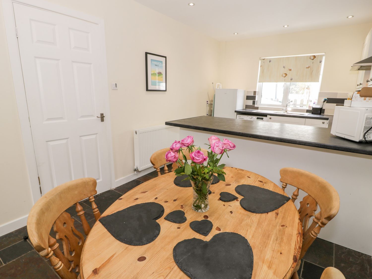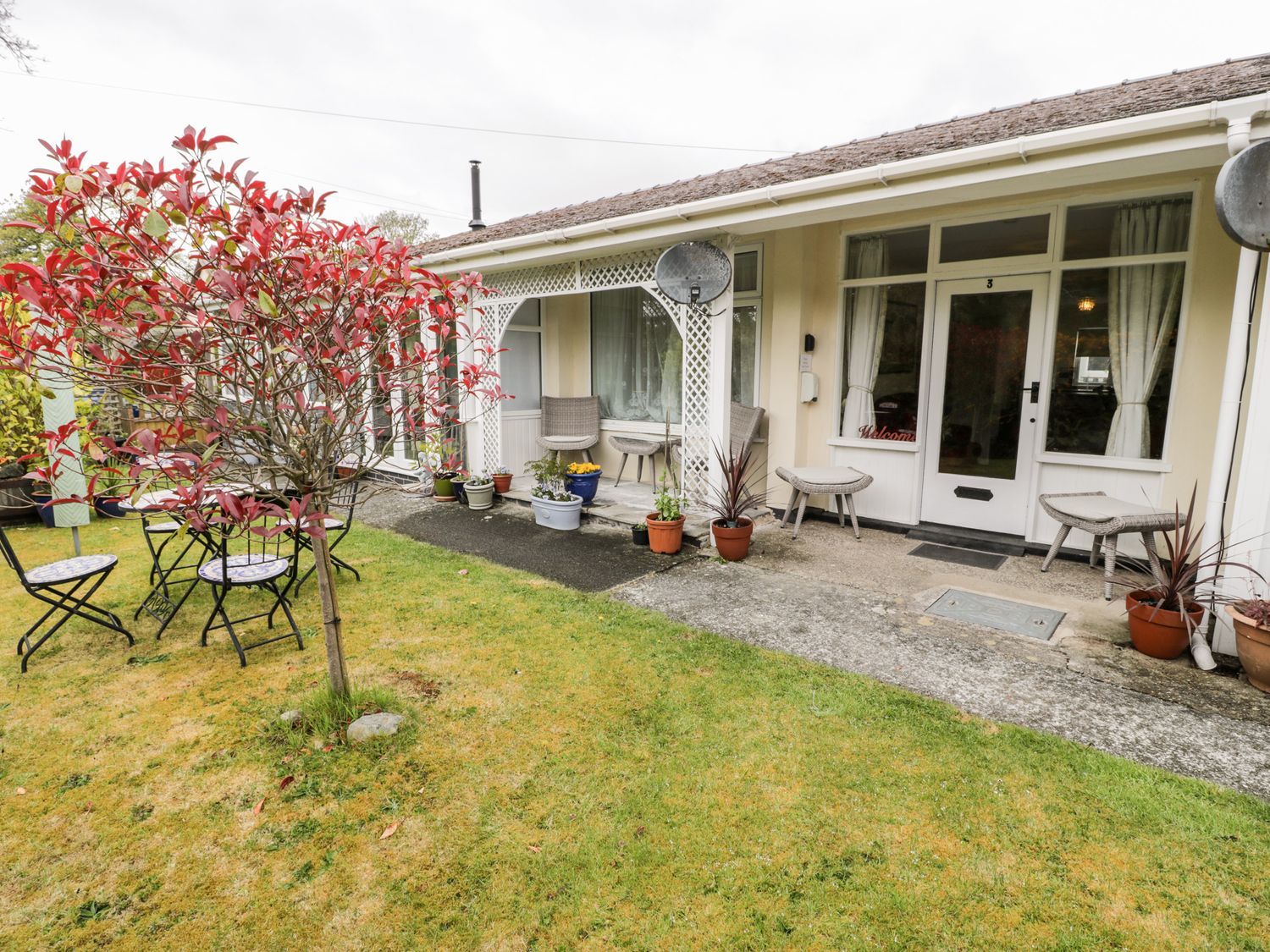 "3 Riverside Bungalows, a single-storey house, consists of an open-plan living space with electric oven and hob, microwave, fridge/freezer, washing machine, dining seating for four people, and sitting area with TV. There is a king-size and twin bedroom, serviced by a shower room. Outside, there is a garden with patio, lawn, and furniture, and off-road parking for one car with ample roadside parking available. Travel cot available. Sorry, no pets and no smoking. You'll find a shop in 0.2 miles, pub in 0.1 miles, and beach in 1.1 miles. WiFi, fuel, power, bed linen, and towels inc. in rent. 3 Riverside Bungalows is a fine base for a retreat to the Eyri National Park."