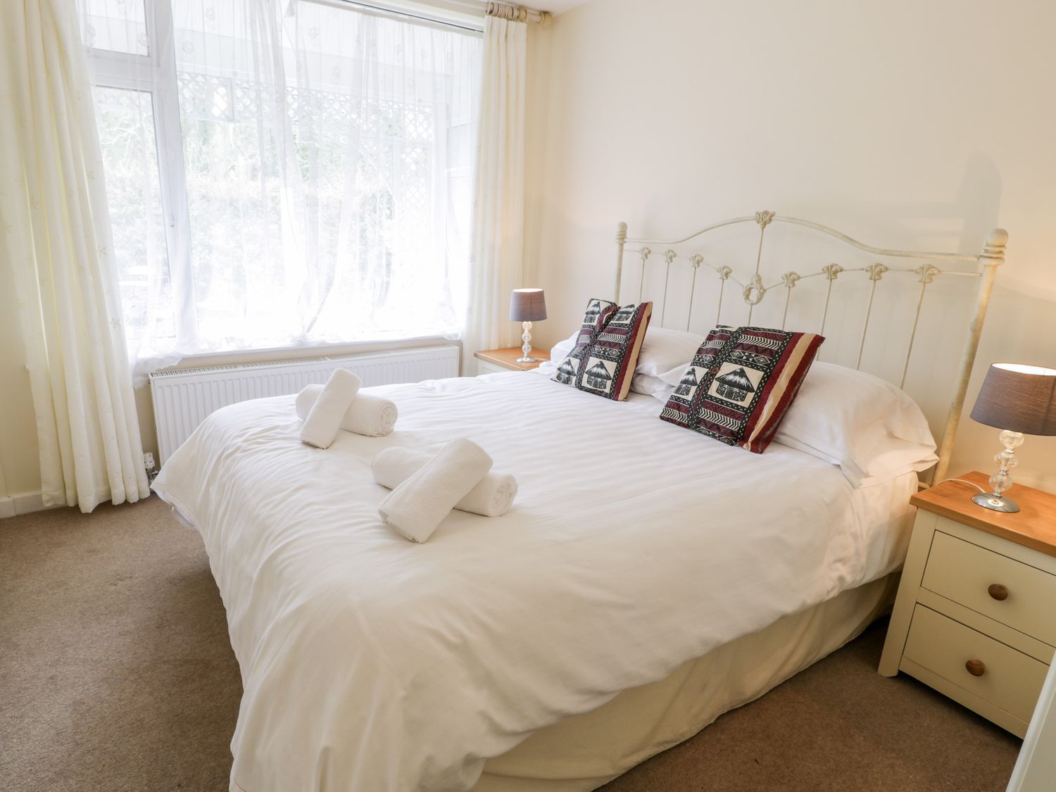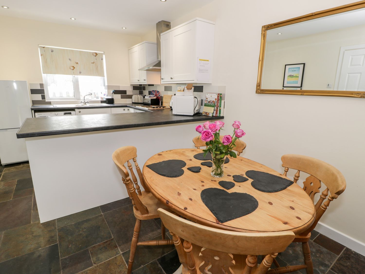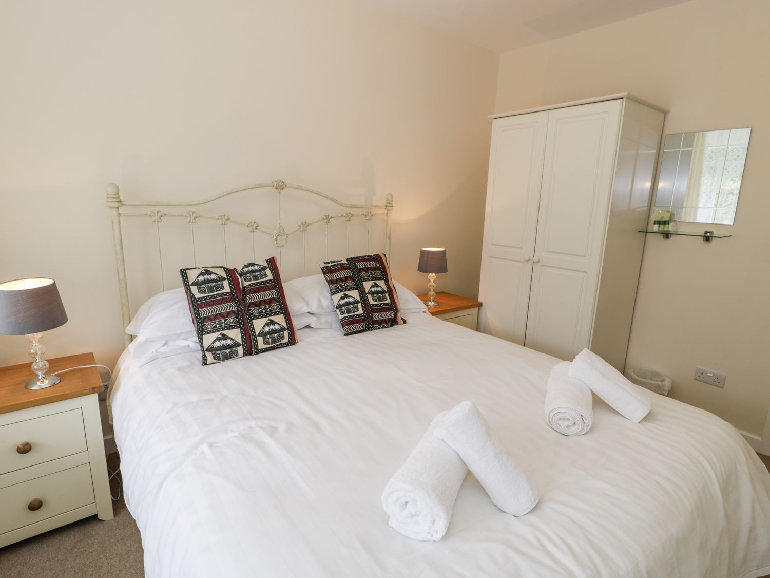 "Single-storey. Two bedrooms: 1 x king-size, 1 x twin. Shower room with walk-in shower, heated towel rail, basin and WC. Open-plan living space with kitchen, dining area and sitting area"