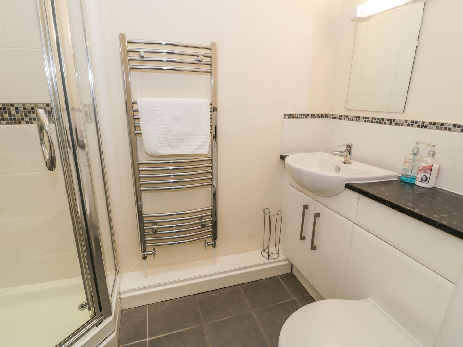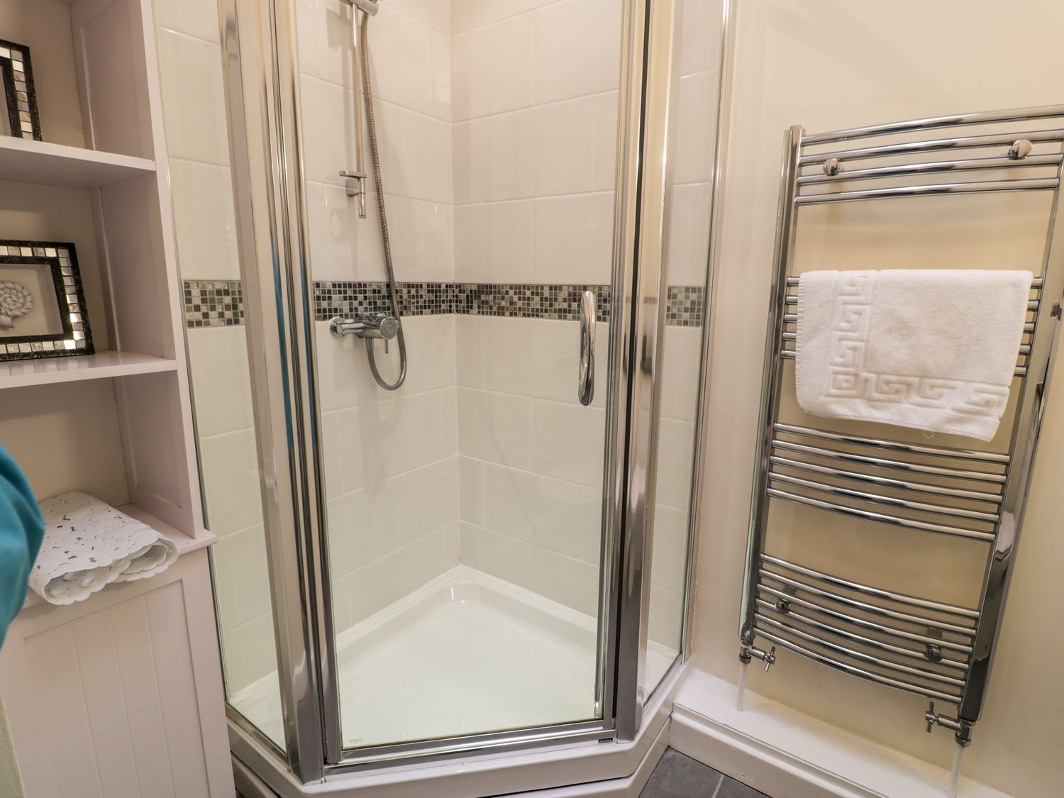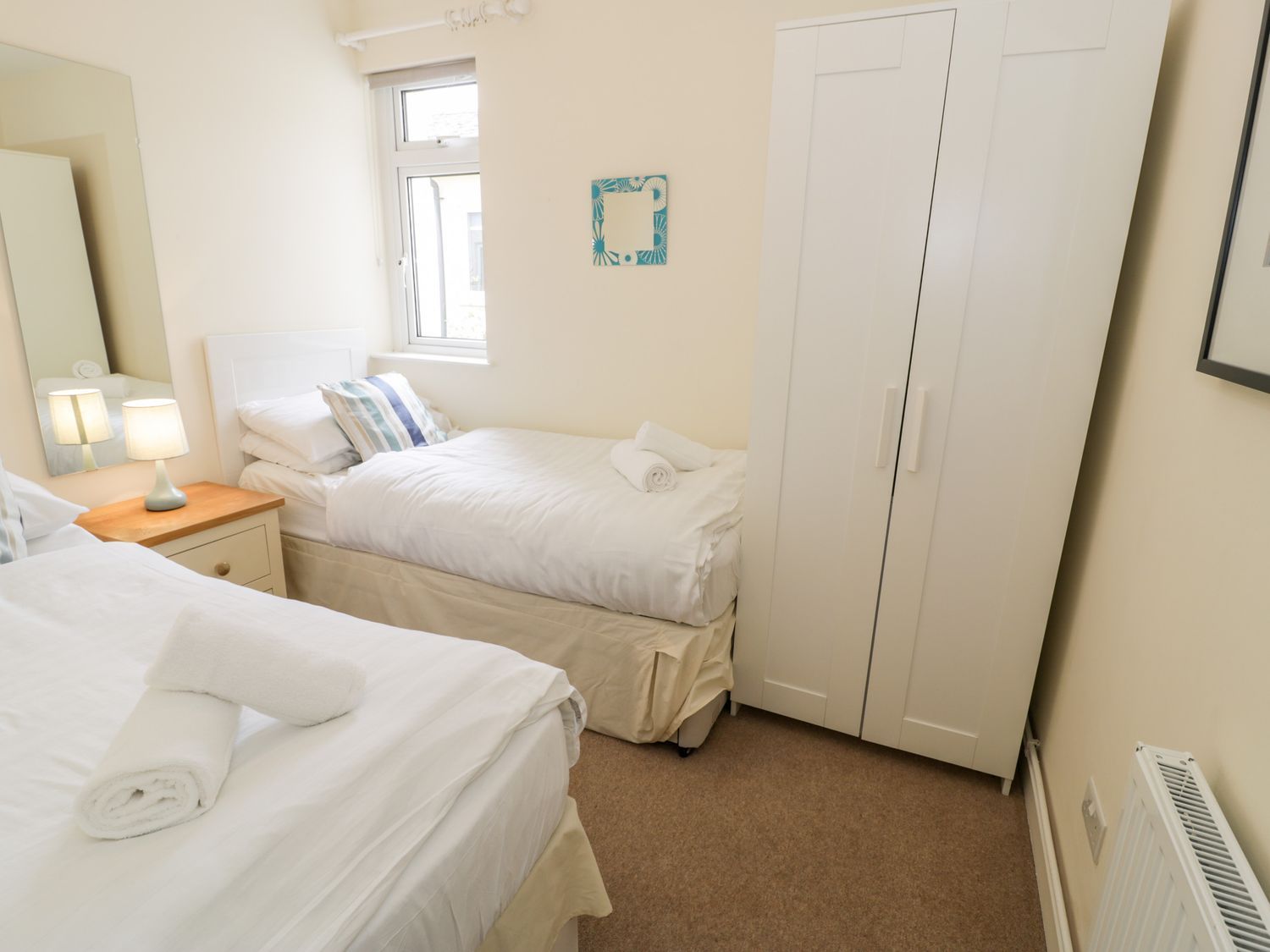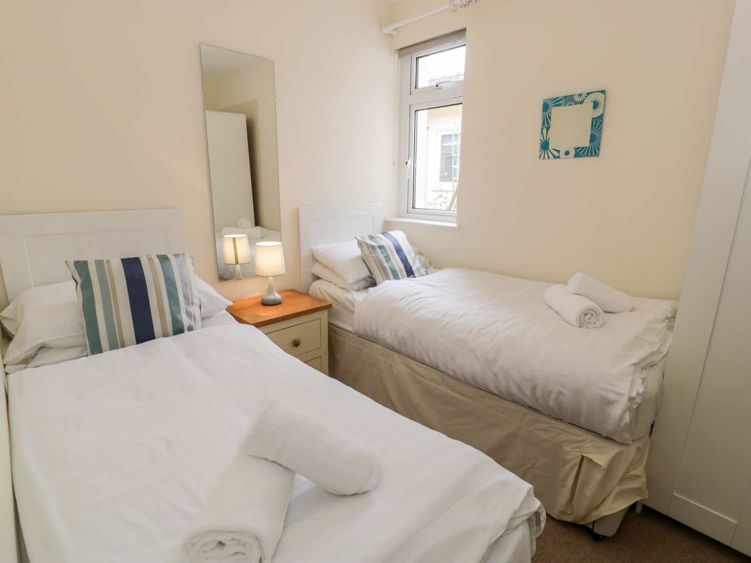 "Single-storey. Two bedrooms: 1 x king-size, 1 x twin. Shower room with walk-in shower, heated towel rail, basin and WC. Open-plan living space with kitchen, dining area and sitting area"