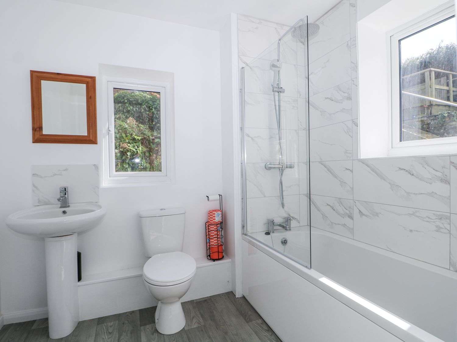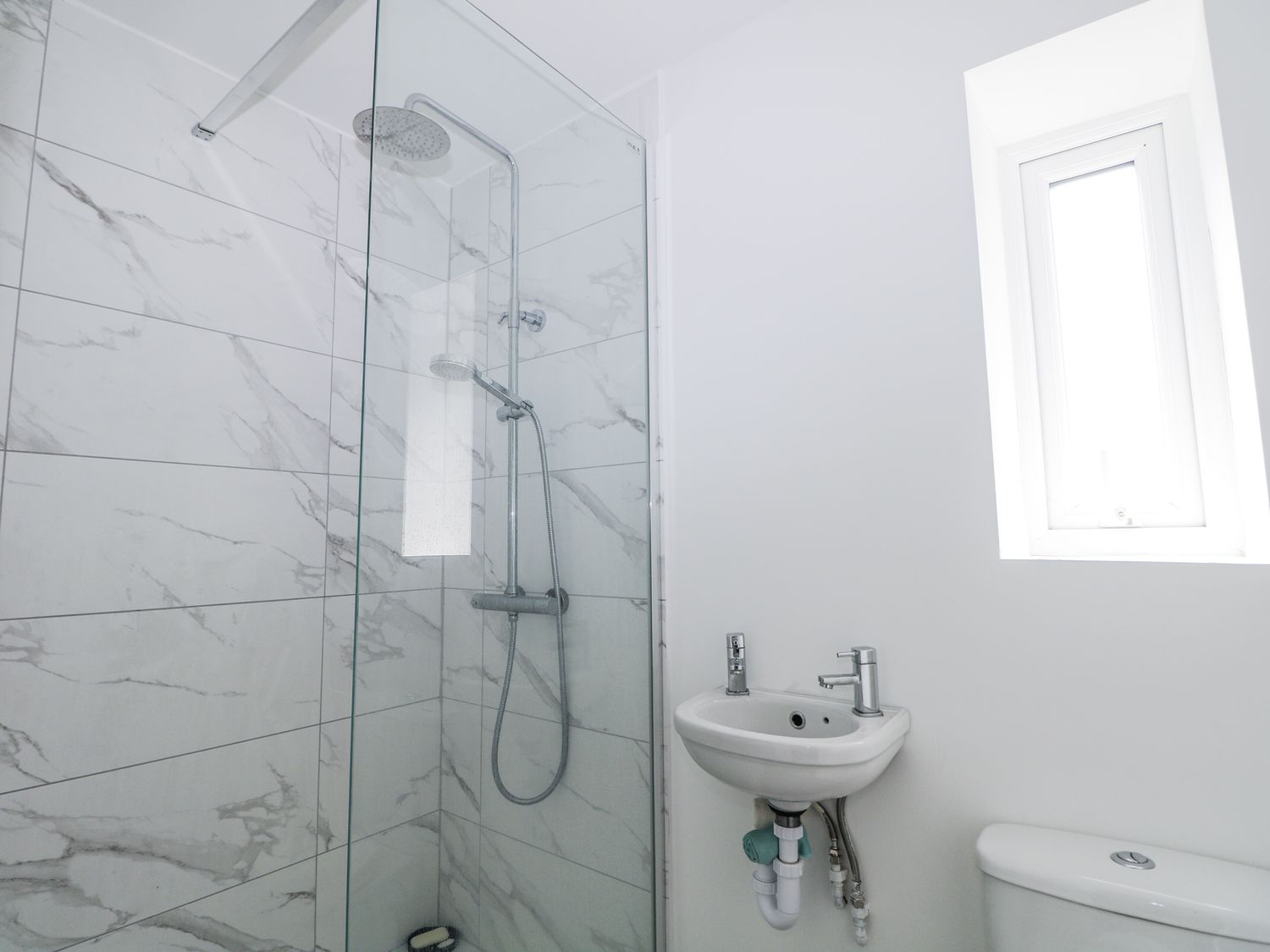 "Three bedrooms: 2 x double with TV, 1 x ground-floor. Bathroom with bath, shower over, basin, WC. Shower room with walk-in shower, basin, WC. Open-plan living space with kitchen/diner and sitting area"