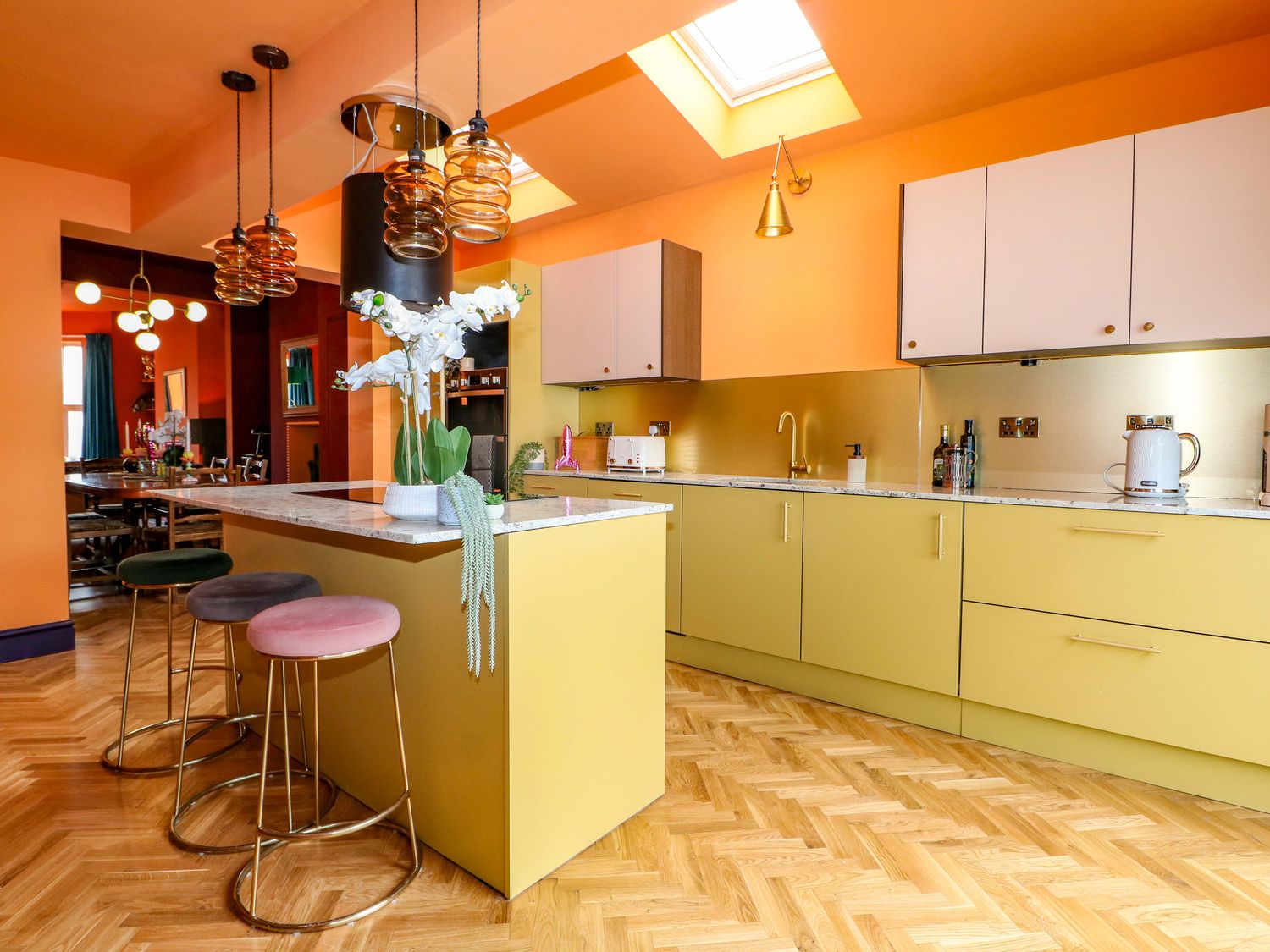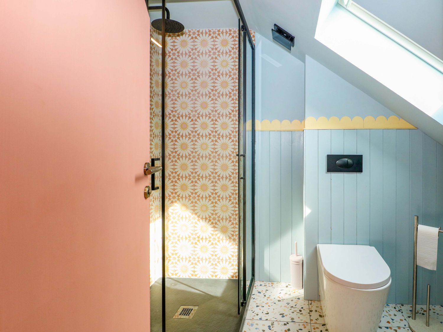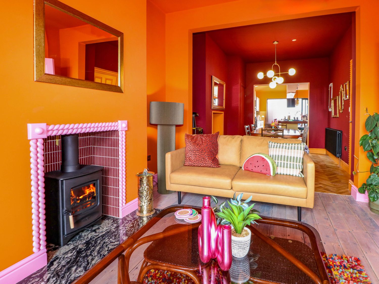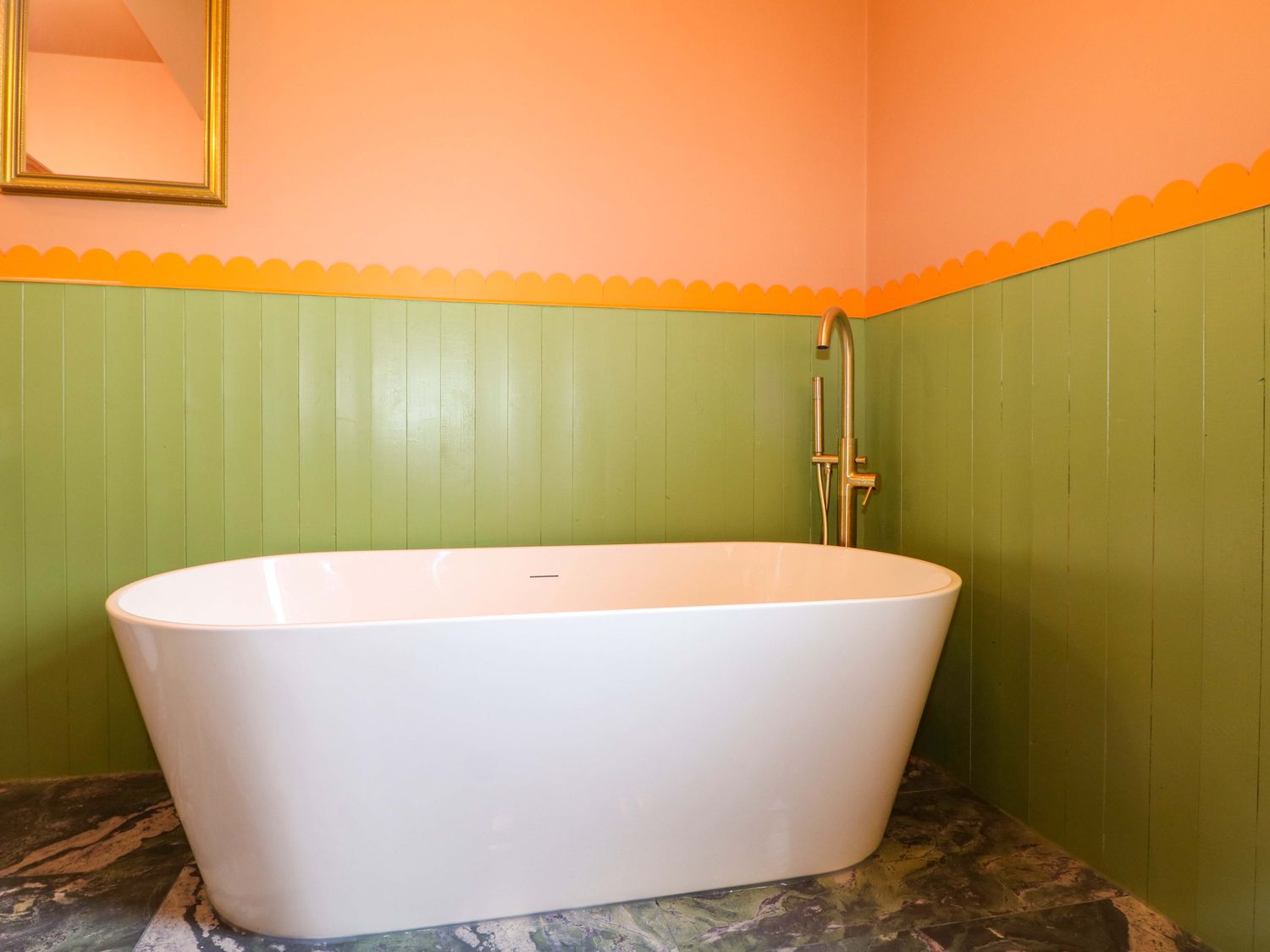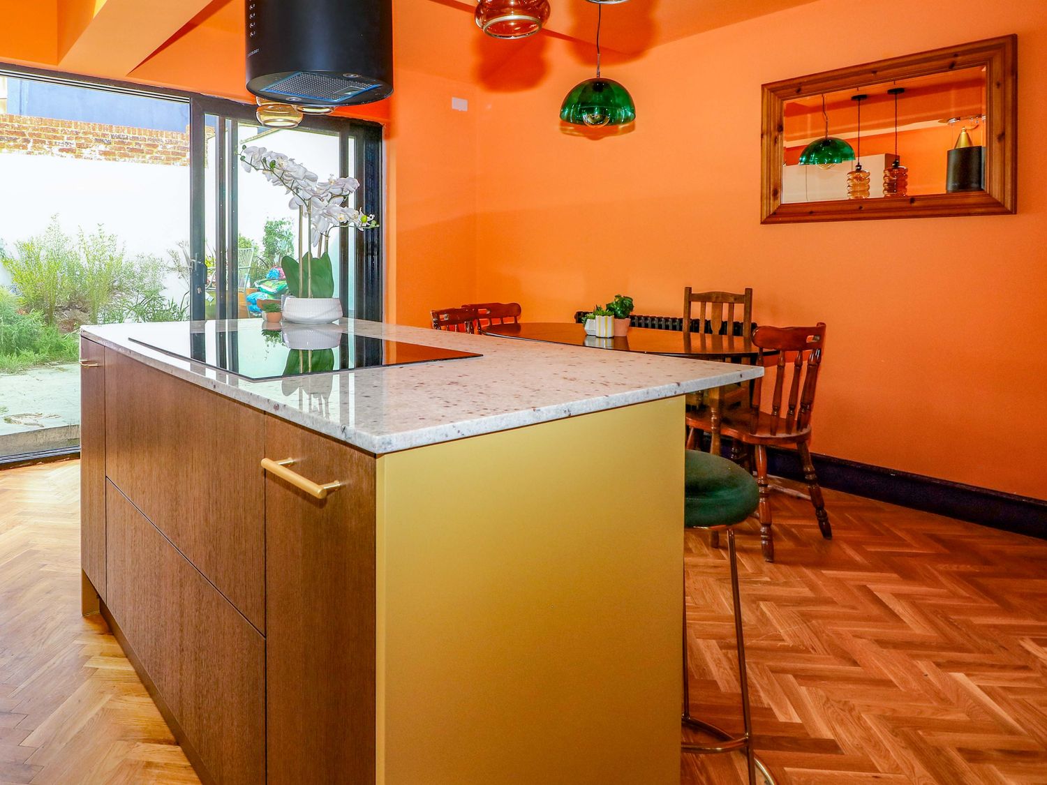 "Over four floors. Five bedrooms: 1 x third-floor king-size with en-suite with walk-in shower, basin and WC, 1 x king-size, 1 x second-floor king-size, 1 x second-floor double, 1 x twin, All beds are king size, twin is zip and link and can be a king, Only the very top attic bedroom has an en suite, with shower. Bathroom with freestanding bath, basin and WC. Second-floor shower room with walk-in shower, basin and WC. Cloakroom with basin and WC. Open-plan living space with kitchen, dining area and sitting area with woodburning stove"