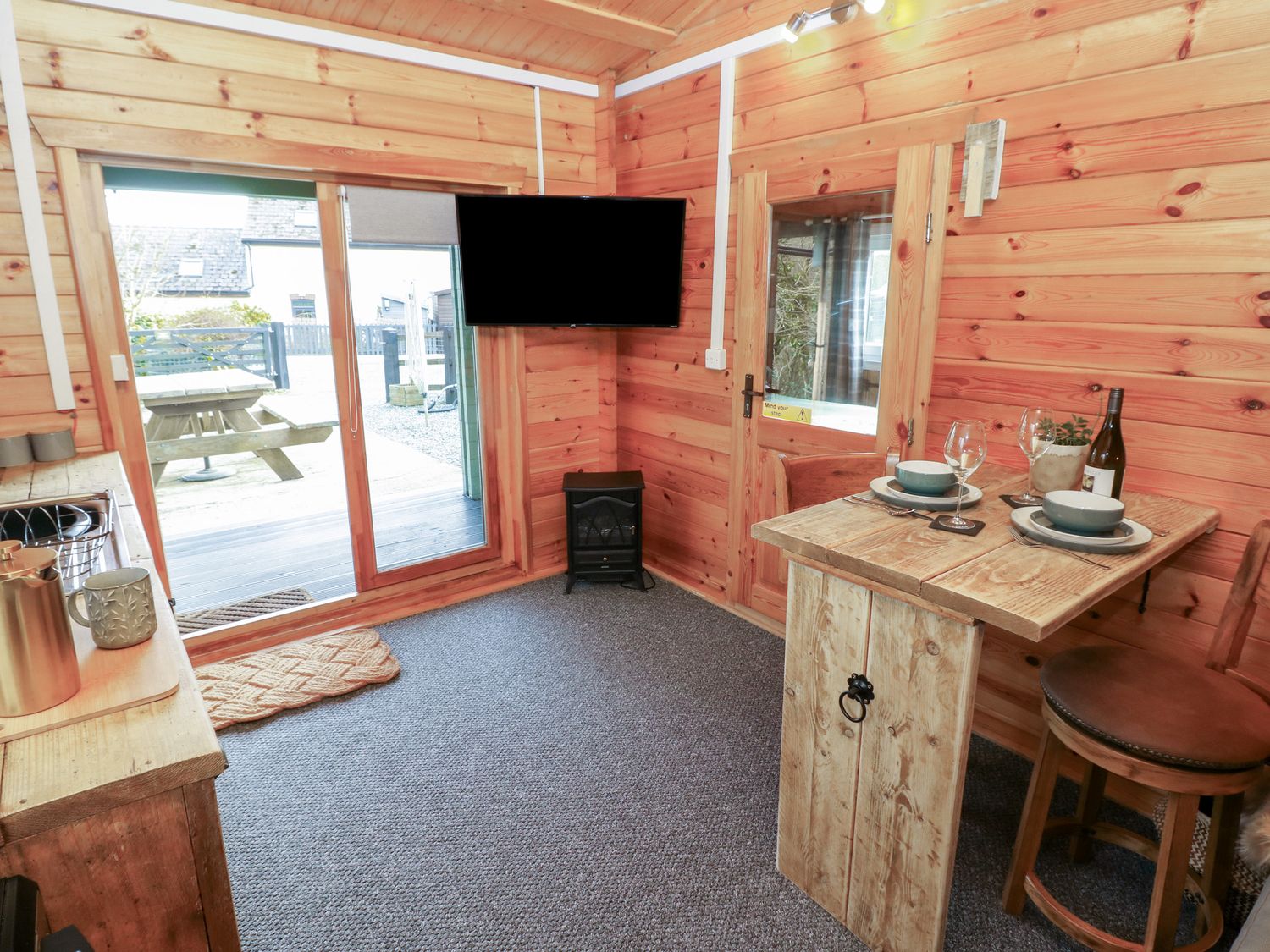 "Mill Cabin Denant, a single-storey cottage, consists of a kingsize bedroom with en-suite walk-in shower, as well as an open-plan living space including a kitchenette with a baby belling cooker, an electric oven, and a fridge, a dining area, and a sitting area with TV. Outside, there is a covered front veranda with furniture, a large garden area to side and rear of cabin, and off-road parking for two cars. Fuel, power, bed linen and towels are all included in the price. Two well-behaved dogs welcome (additional charge applies), but sorry, no smoking. Within 2.3 miles, you will find a shop, within 2.4 miles, a pub, and within 4.9 miles, a beach. Discover the beauty of Pembrokeshire from your base at Mill Cabin Denant. Note: Compact open-plan living space. Note: No baby equipment available. Note: Please bring your own beach towels."