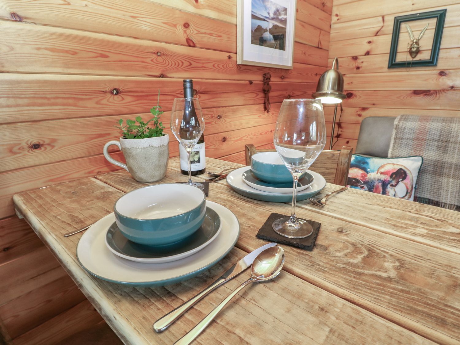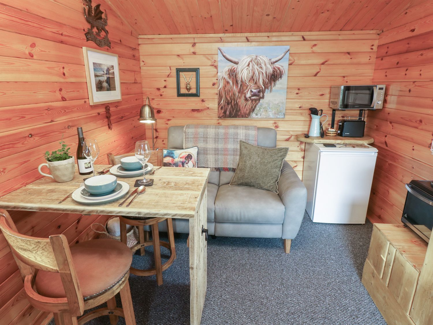 "Single-storey. One kingsize bedroom with en-suite walk-in shower, basin, and WC. Open-plan living area with kitchenette, dining area, and sitting area"