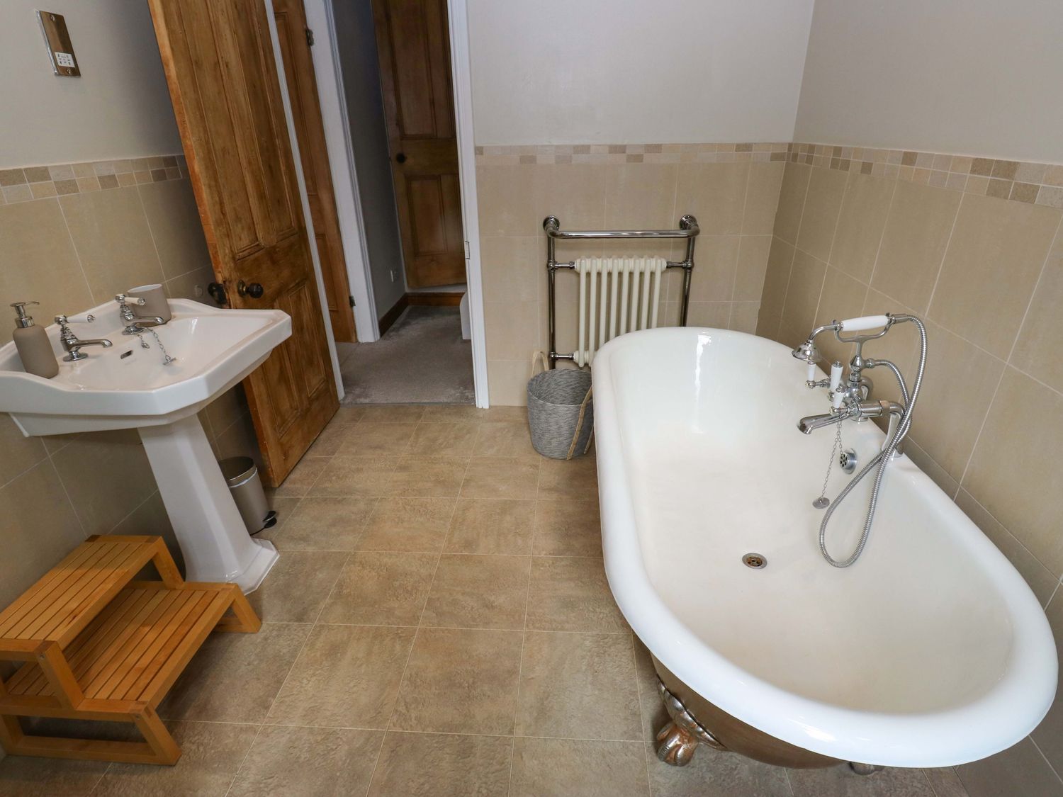 "Three bedrooms: 2 x king-size, 1 x single. Bathroom with deep cast iron roll top bath, walk-in shower, basin, WC. Kitchen. Living space with living/dining area with gas fire"