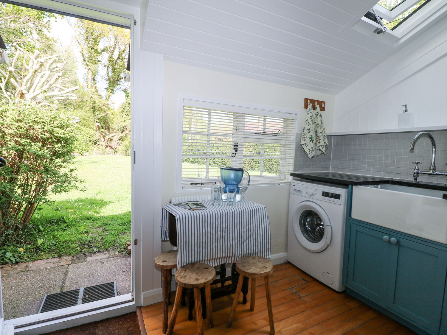 Utility room at back of house with tumble dryer.