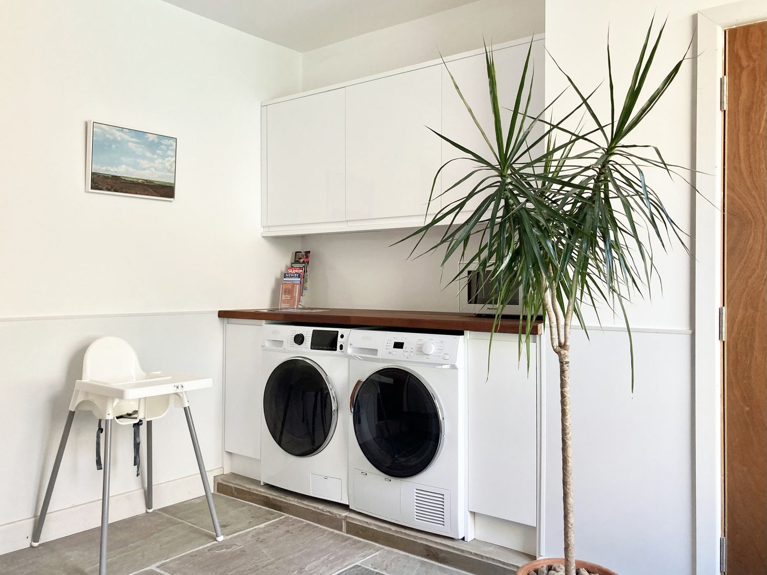 "Duplex apartment. One second-floor double bedroom. Shower room with walk-in shower, basin and WC. First-floor open-plan living space with kitchen, dining area and sitting area. Ground-floor shared utility/boot room"