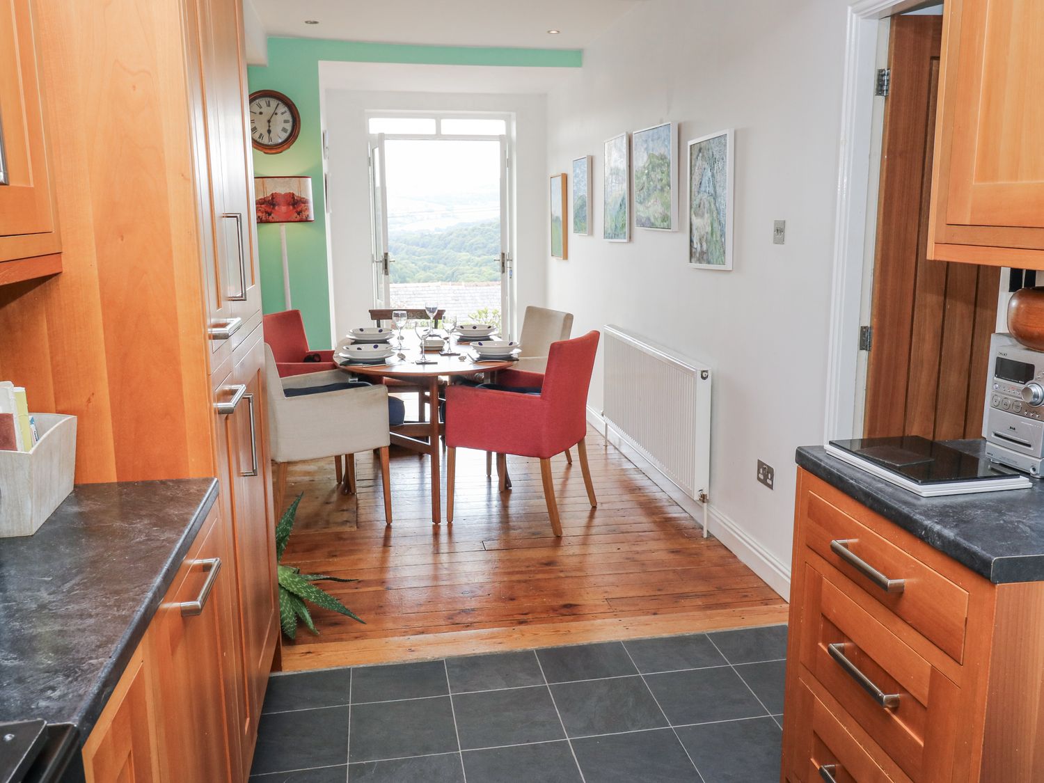 "The Vista, a house, consists of a kitchen/diner with gas range oven and hob, microwave, fridge/freezer, washing machine, dishwasher, and dining seating for six people, and a sitting room with Smart TV. The bedrooms consist of two doubles and a single. There is a bathroom with bath, shower over, basin, and WC. You'll find a shop in 0.9 miles, pub in 0.3 miles, and a river and canal in 1 mile. WiFi, fuel, power, bed linen, and towels are included in the rent. Travel cot and highchair available. Outside, there is a front patio with furniture. Multi-level garden with patio, terrace, lawn, and furniture and off-road parking for two cars. Sorry, no pets and no smoking on site. Return year after year to The Vista. Note: Garage not available to guests. Note: Woodburning stove not for guest use. Note: Steep stairs in the garden - not suitable for those with mobility issues. Note: This property has a good housekeeping bond of GBP 250"