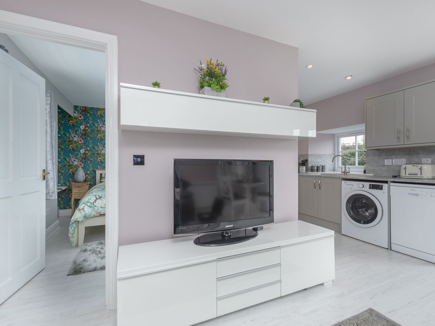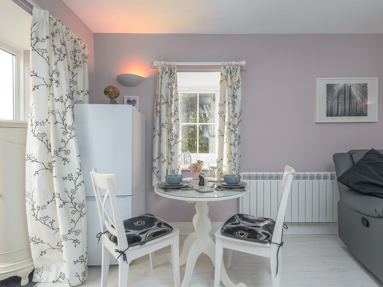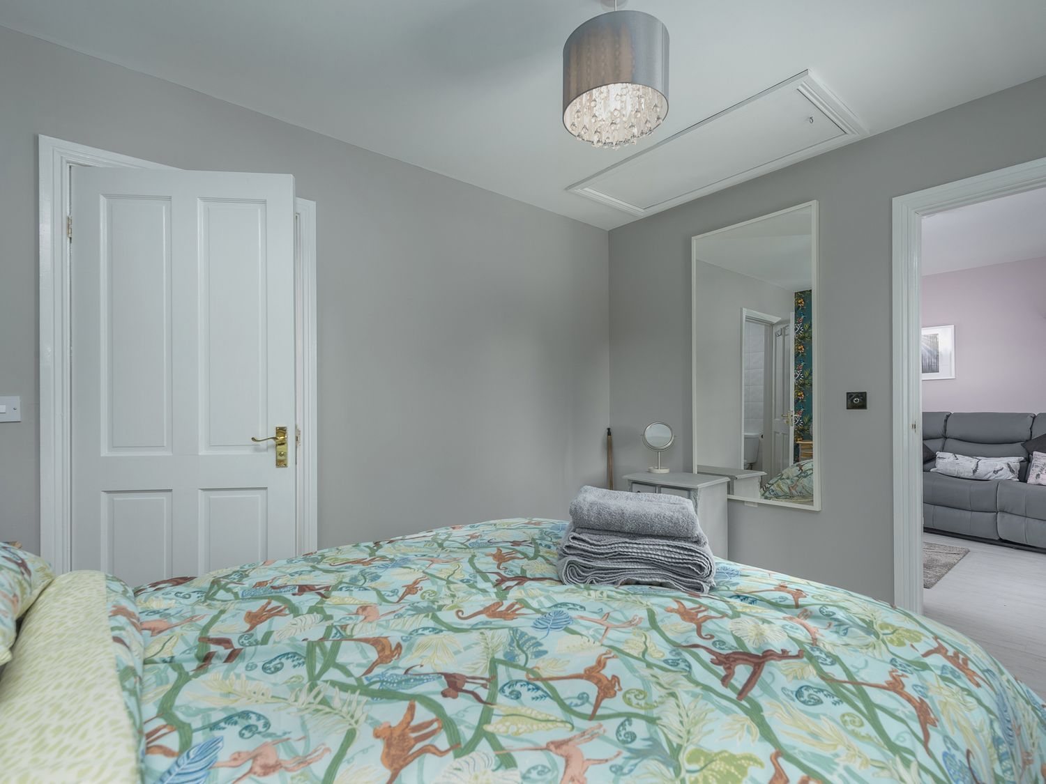 "All-ground-floor. One king-size bedroom with a newly refurbished en-suite shower, basin, heated towel rail and WC. Open-plan living space with kitchen, dining area and sitting area "