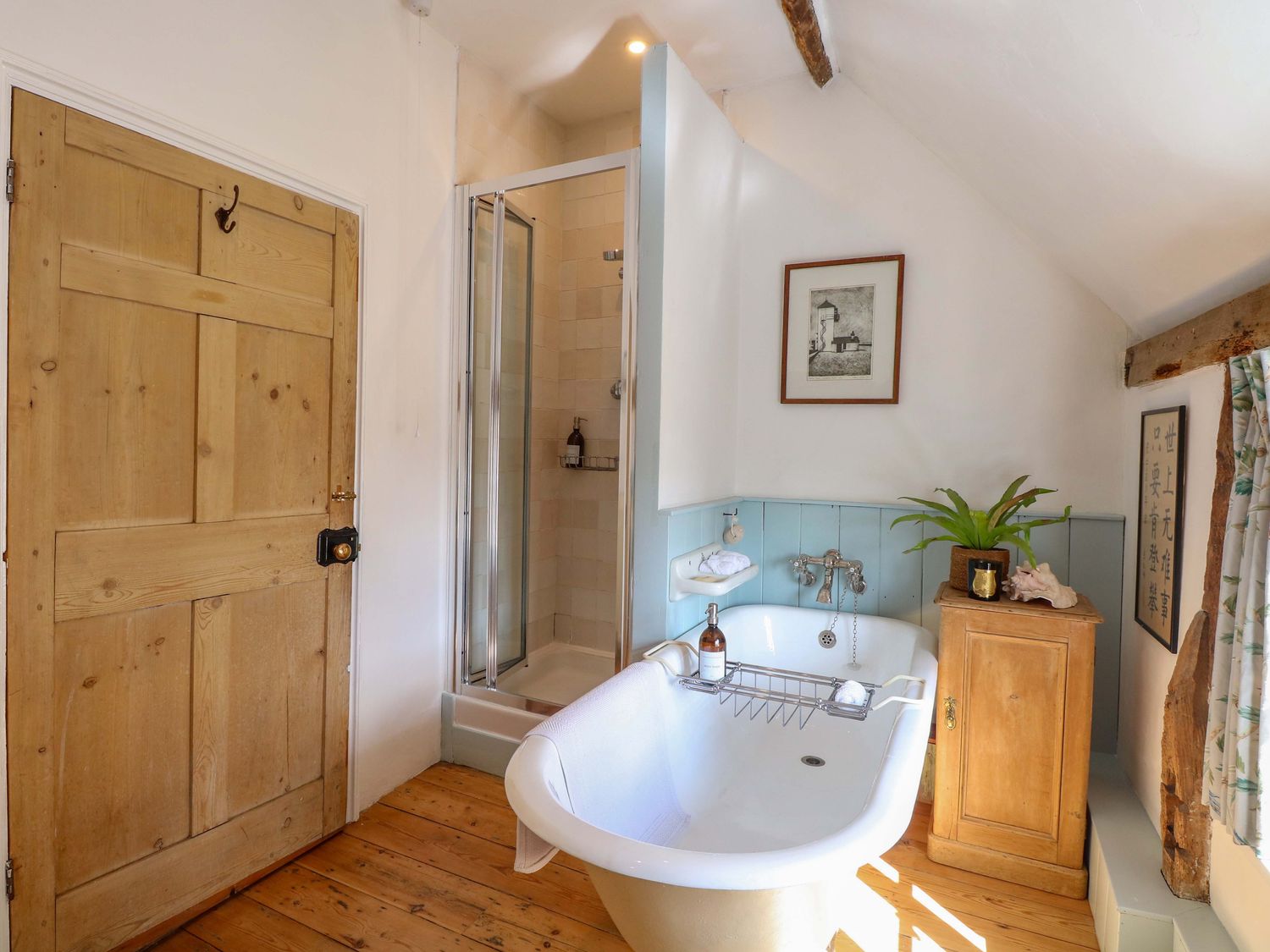 "Two bedrooms: 1 x double, 1 x twin. Bathroom with roll top bath, walk-in shower, basin and WC. Kitchen/diner. Sitting room with woodburning stove. Bootroom"
