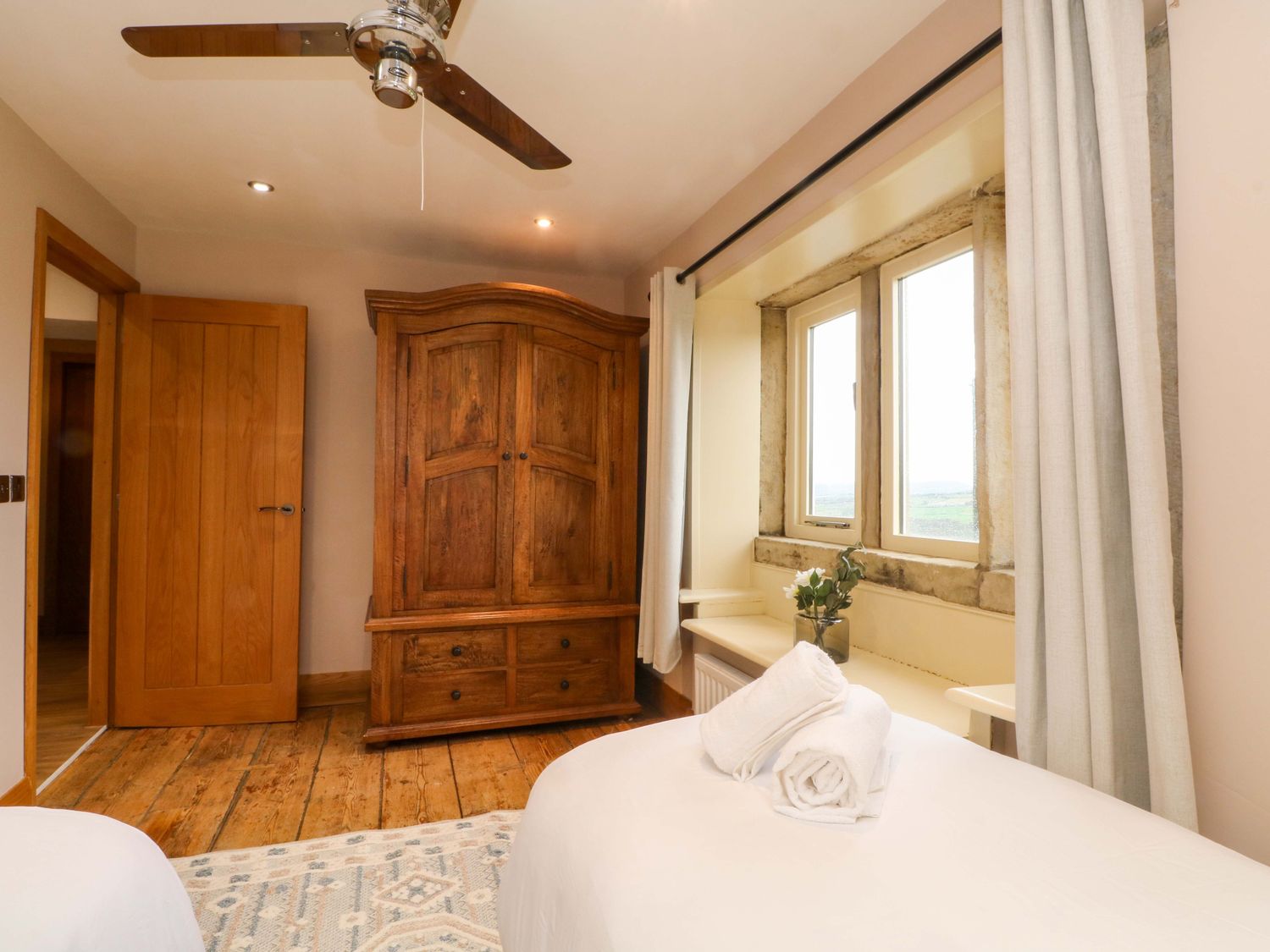"Stone & Fleece Cottage, consists of a kitchen/diner with AGA, fridge/freezer, dishwasher, kettle, toaster, and seating for seven guests, a sitting room with woodburning stove and TV and a sitting room with electric fire. The bedrooms consist of a double with en-suite wet room, two doubles, and a single serviced by a bathroom with jacuzzi bath, shower over, basin and WC. Outside, there is an enclosed rear garden with patio, furniture,and off-road parking for 2 cars. Within 0.8 miles, you will find a shop, and within 0.7, a pub, and please note that this is a non-smoking property. Two well-behaved pets welcome. WiFi, fuel, power, bed linen and towels are all included in the price. Soak in the stunning countryside views from Stone & Fleece Cottage Note: There is a Good Housekeeping Bond of 400 GBP. Please note: If the zip and link bed is required in the middle room, please get in touch within a weeks notice.. Please note: The garden overlooks a working sheep farm, please ensure all pets do not attempt to go into the neighboring field."